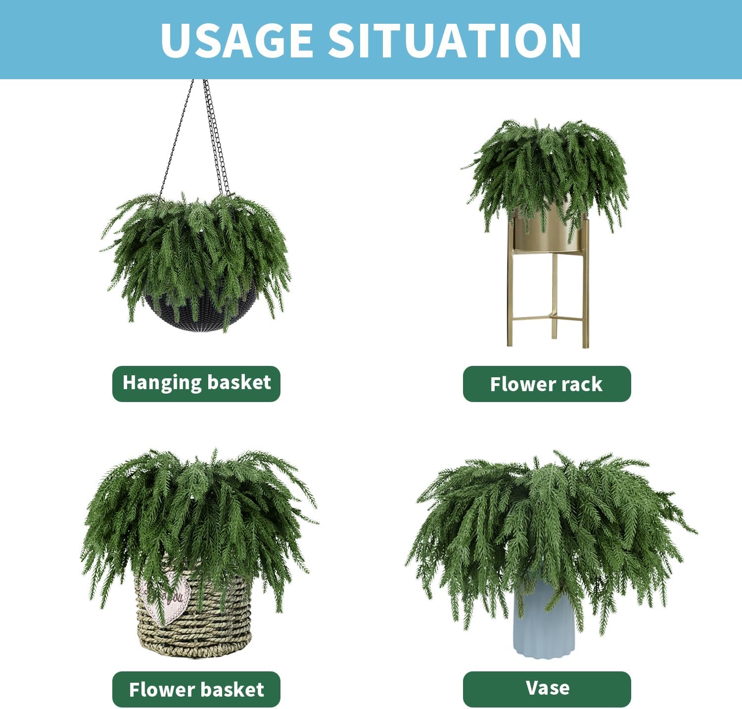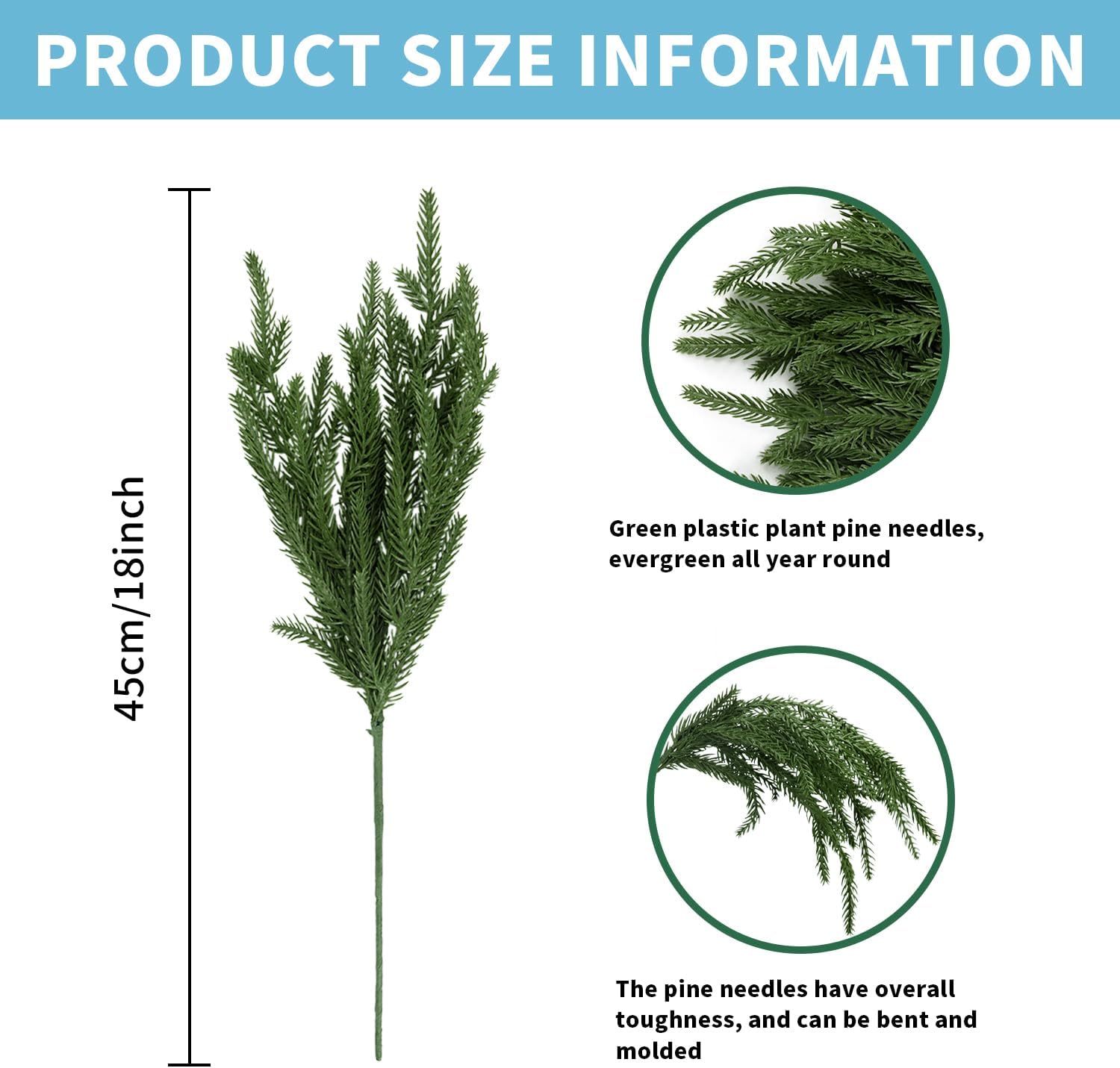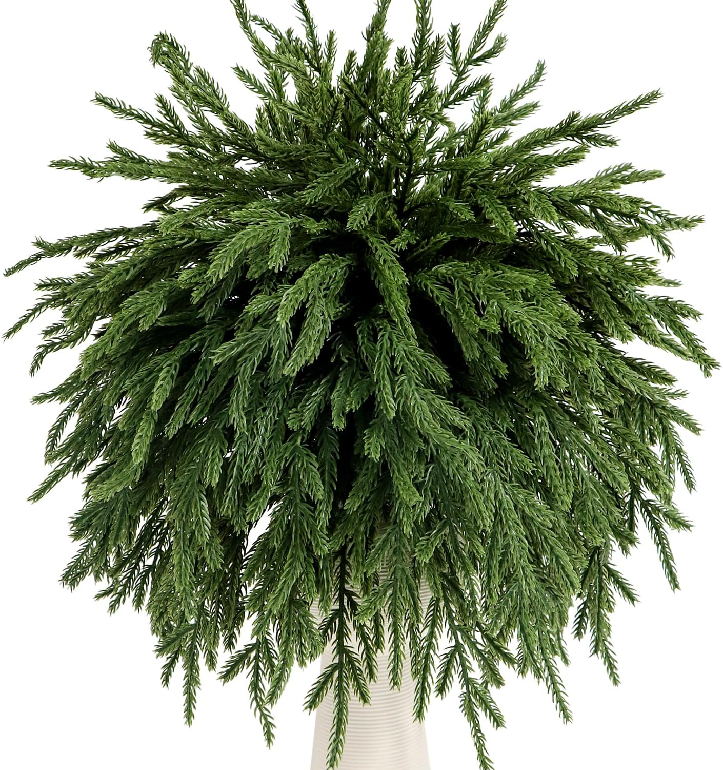 12 Pcs Norfolk Pine Branches 17" Artificial Pine Needles Branches Fake Greenery Picks Norfolk Pine Stems for Christmas Tree Vase Fillers DIY Crafts Garland Wreath Home Winter Decorations (12, Green)