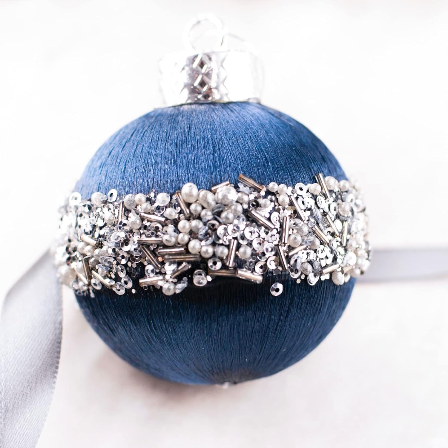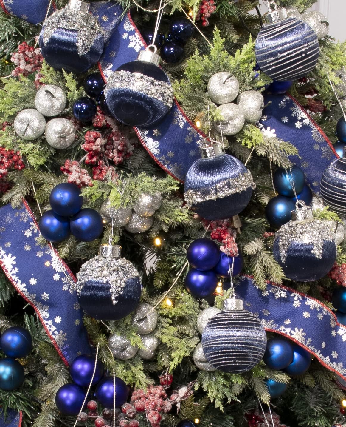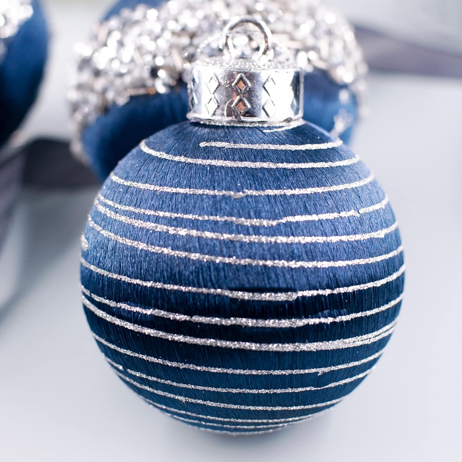 12 Pcs Satin Christmas Ball Ornaments, Luxury Silk Tree Hanging Decorations for Xmas Wreath Garland Wedding Party (Blue)