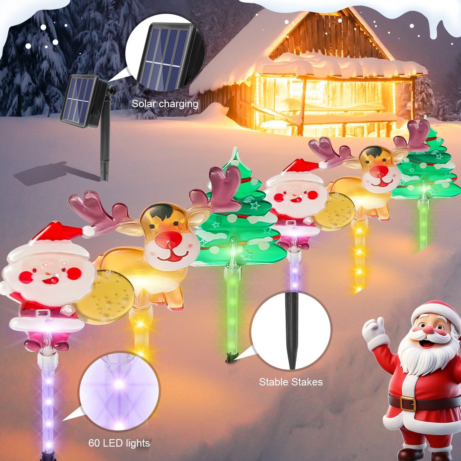 12 Pcs Solar Christmas Pathway Lights, Xmas Garden Stake Lights Outdoor Decorations, Lighted Figurine Lights of Snowman, Santa, Reindeer, 8 Modes, Walkway Entrance Lawn Yard Decor