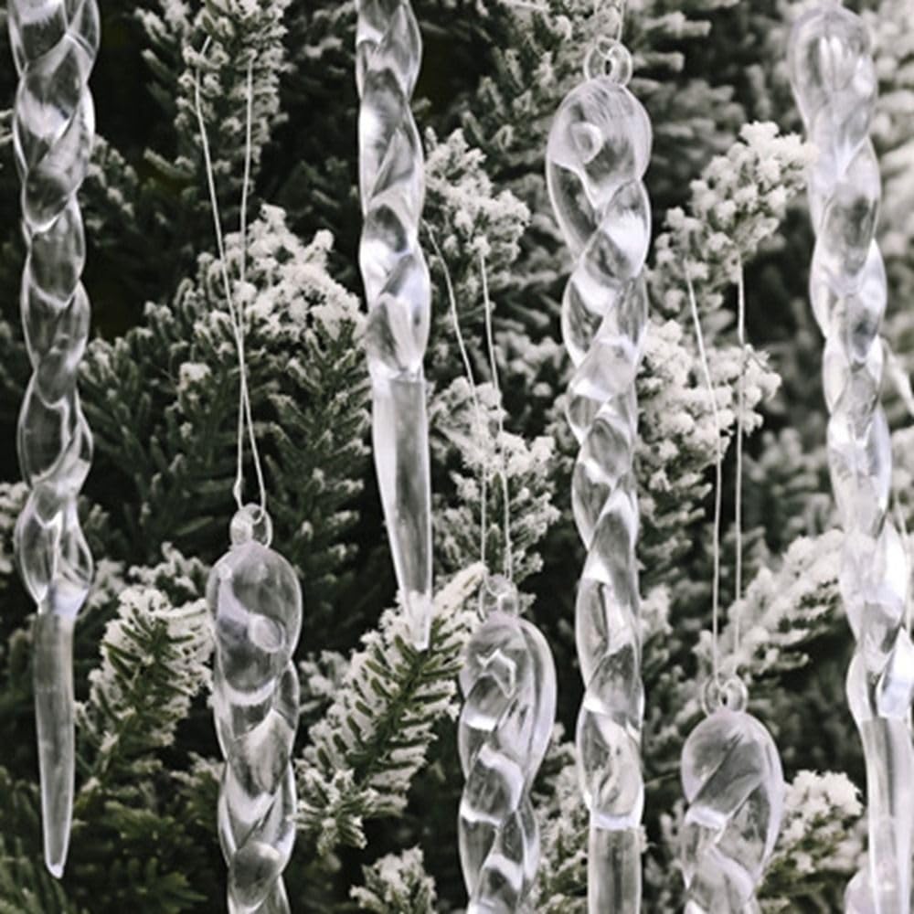 12 PCS Transparent Ice Strip Pendant Crystal Christmas Tree Drop Ornament Christmas Tree Pendants Party Holiday Decoration