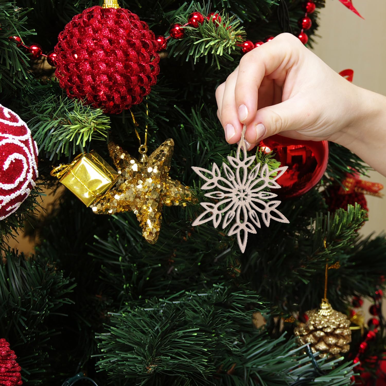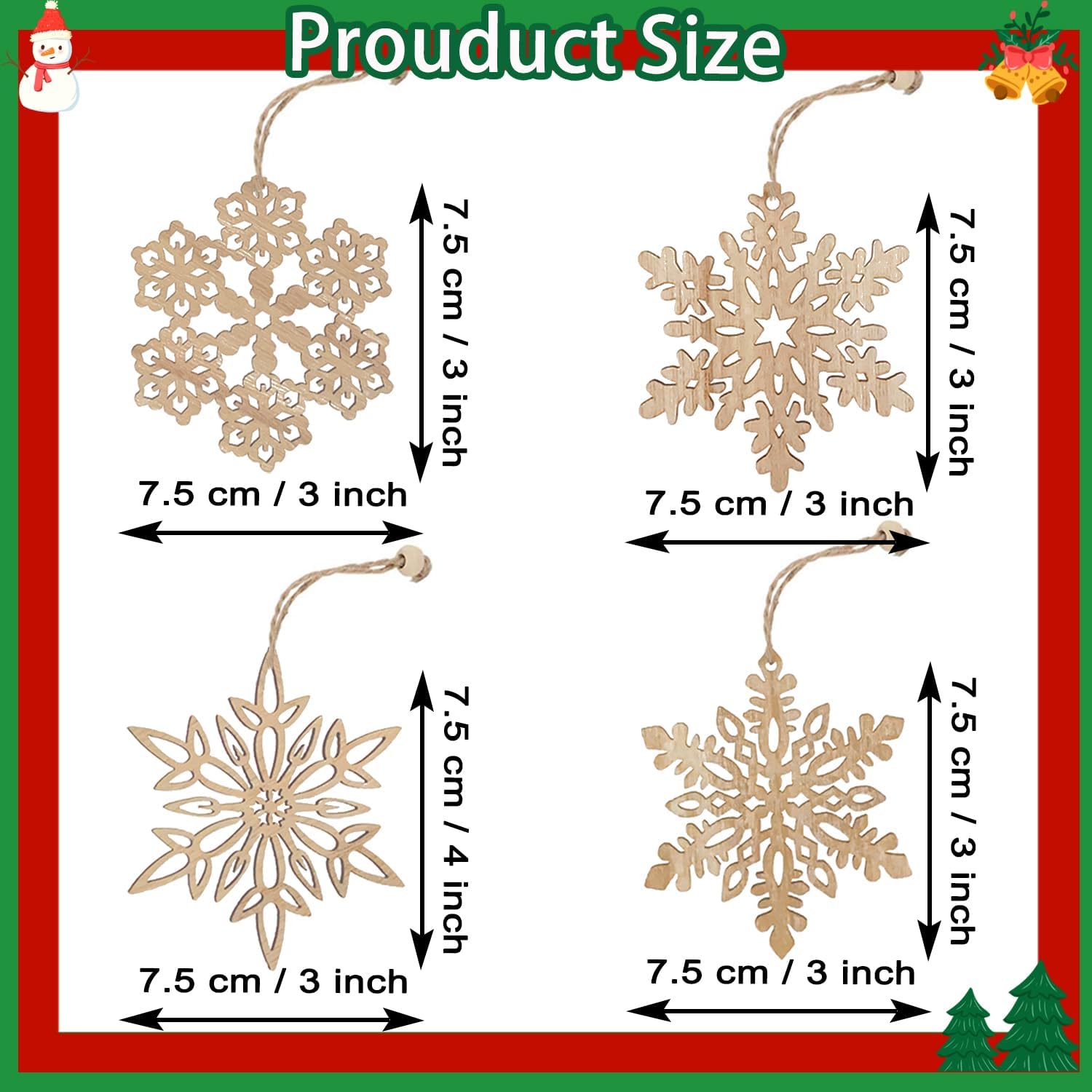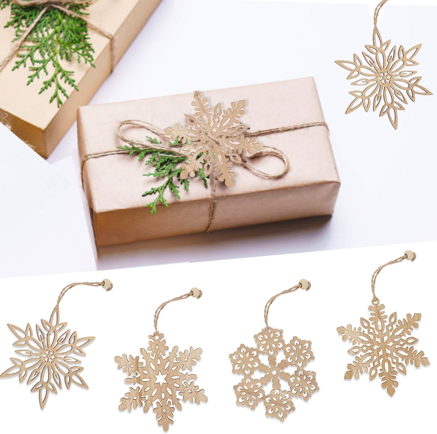 12 Pcs Wooden Snowflakes Ornaments 3 inch Christmas Wood Snowflake Hanging Decorations with Twine, Unfinished Rustic Farmhouse Bulk Cutouts for DIY Painting Xmas Tree Crafts Decor