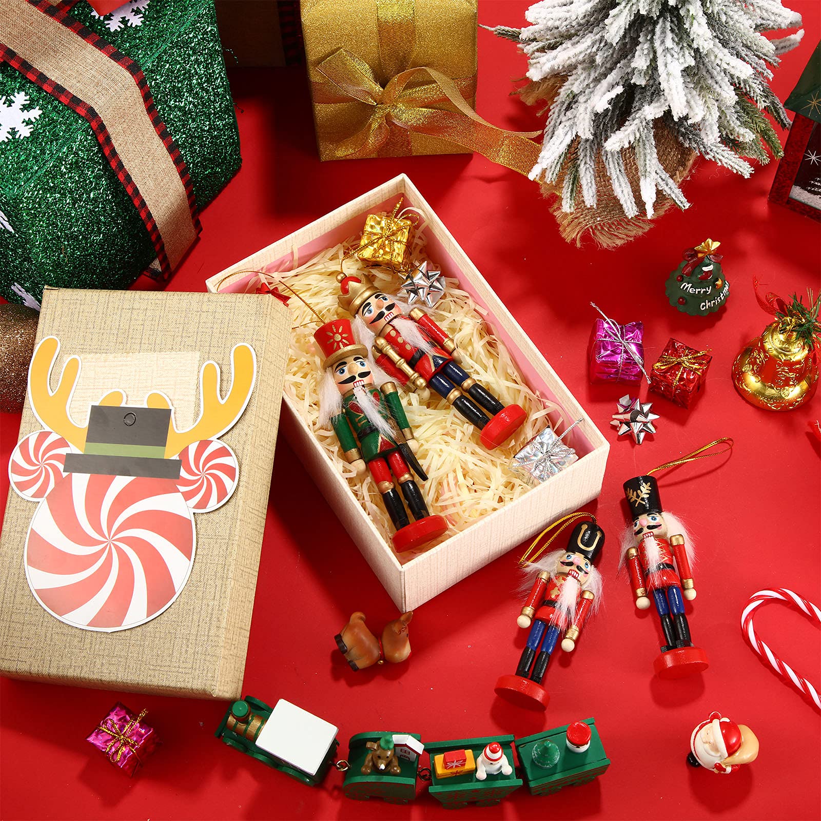 12 Pcs Wooden Soldier Nutcracker Ornaments - Small Hanging Xmas Decor for Tree - Classic Figures