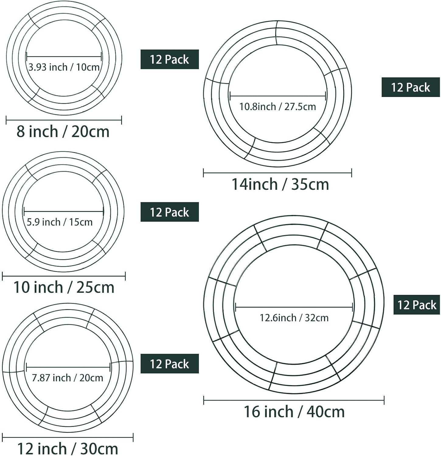 12 Pieces Metal Wreath Frame Dark Green Wire Round Wreath Rings Wire Wreath Frame for Christmas Year Party Home Decor DIY Crafts Supplies (12 Inch)