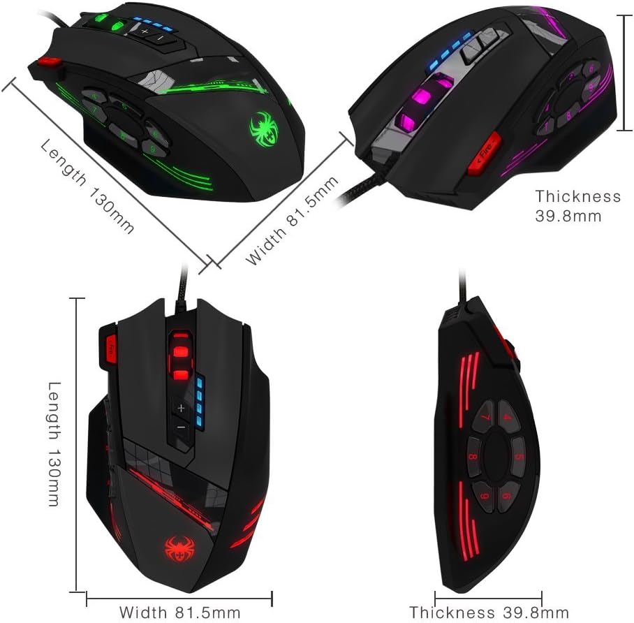 12 Programmable Buttons C12 Gaming Mouse, AFUNTA Laser Double-Speed Adjustment 8000DPI Mice Support 4 Level Switch