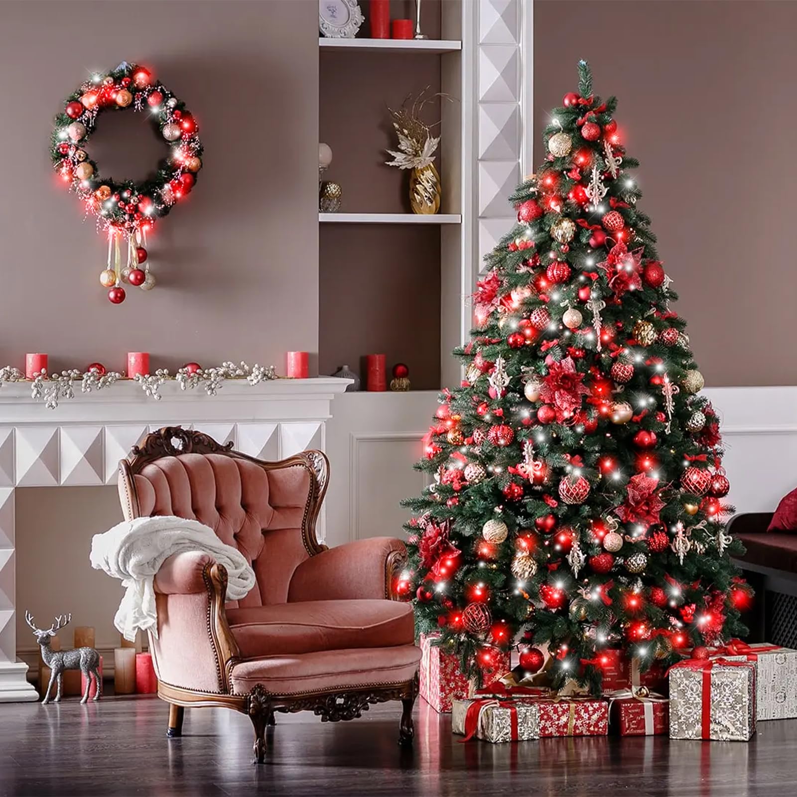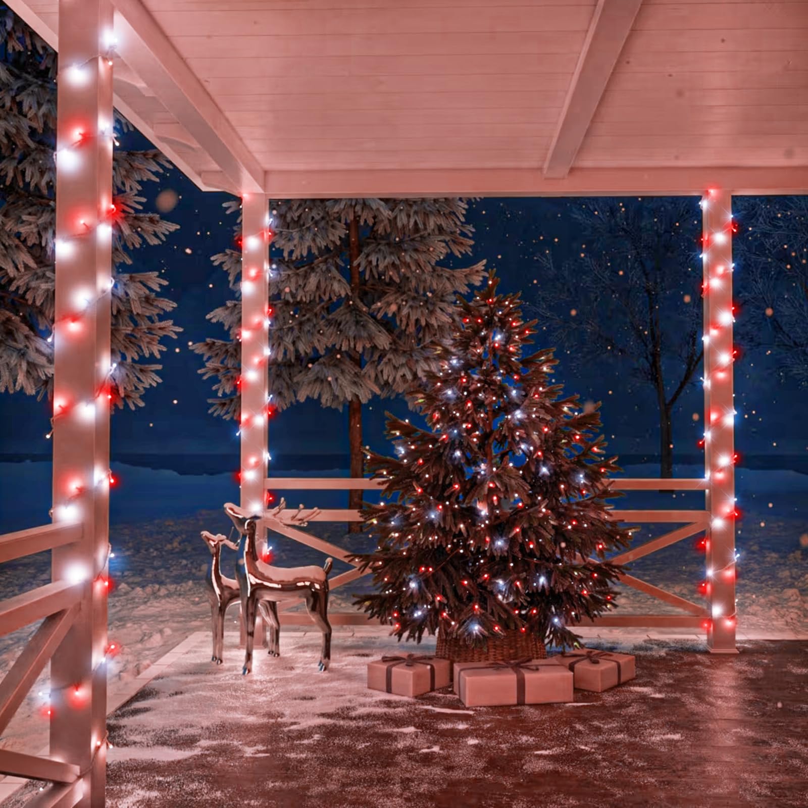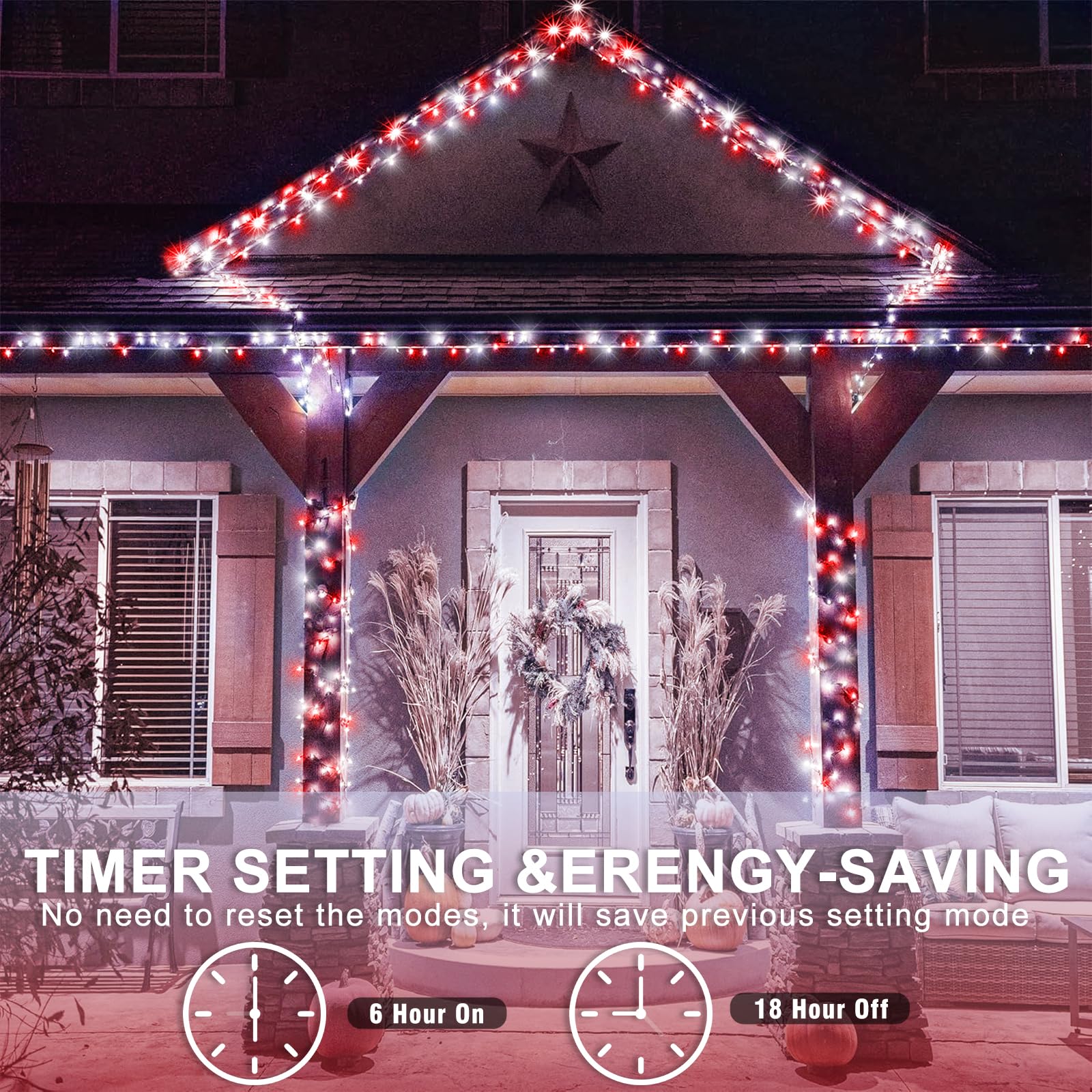 120 LED Red and White Christmas Lights Outdoor, 40ft Christmas String Lights 8 Modes Red White Led Lights Clear Wire, Plug in Waterproof Twinkle Fairy Lights for Bedroom Christmas Decorations