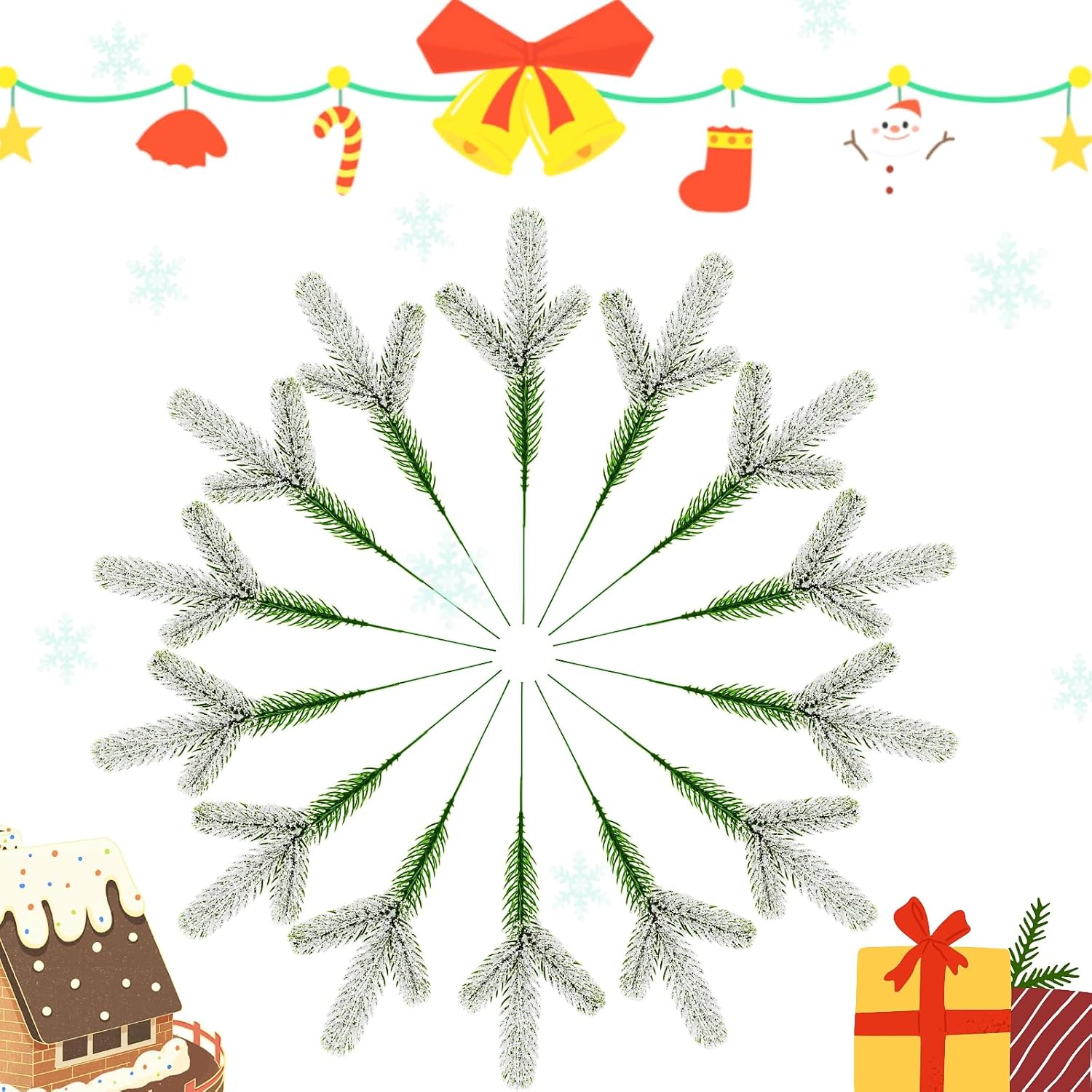 120 Pcs Artificial Pine Needles Branches Snowy Pine Branches for Christmas Tree, Vase, Wreath, Garland, DIY Crafts, Home Decor, Merry Christmas Wreath, Xmas Wreath for Home Decoration, Artifi