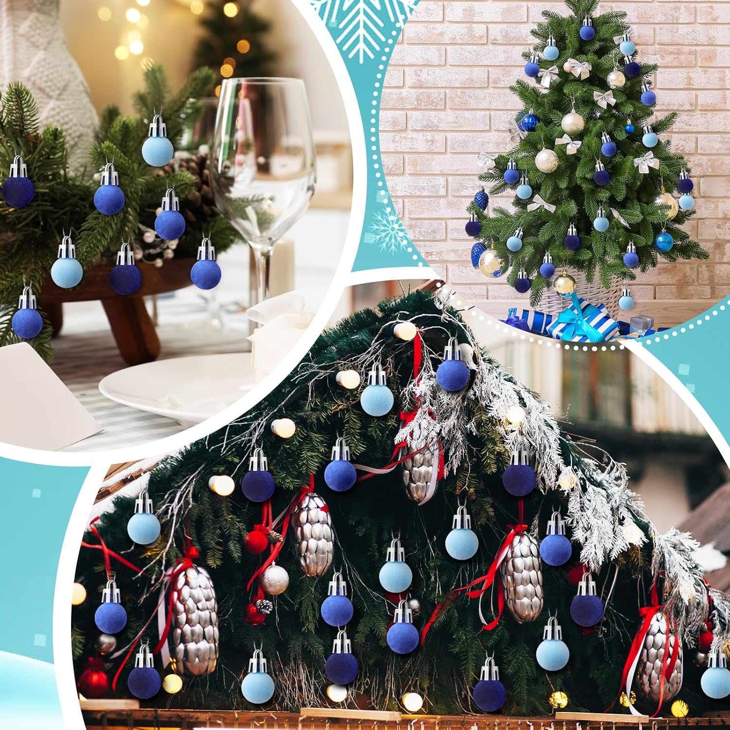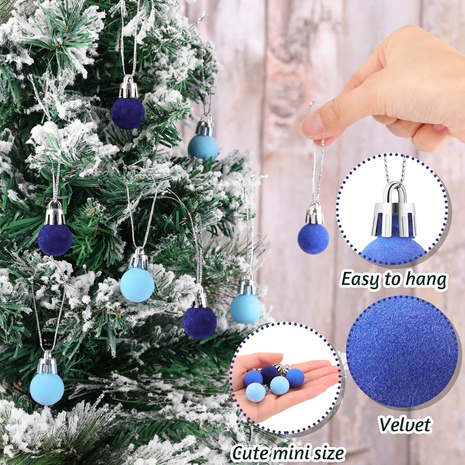 120 Pcs Mini Christmas Velvet Balls Ornaments Bulk 0.79"/20 mm Miniature Flocked Velvet Christmas Ornament Mini Christmas Tree Ball Small Bulbs for Holiday Hanging Decor(Blue)