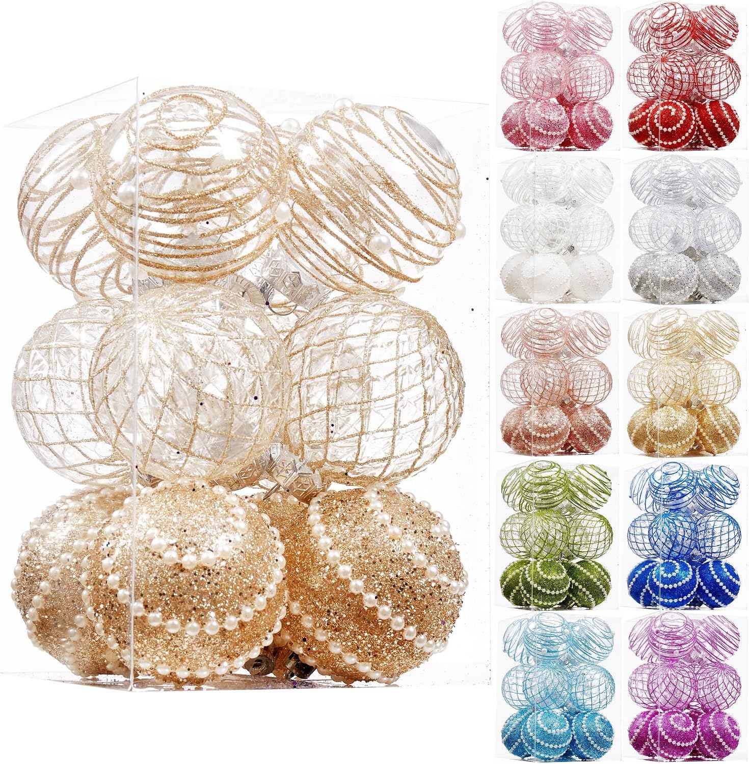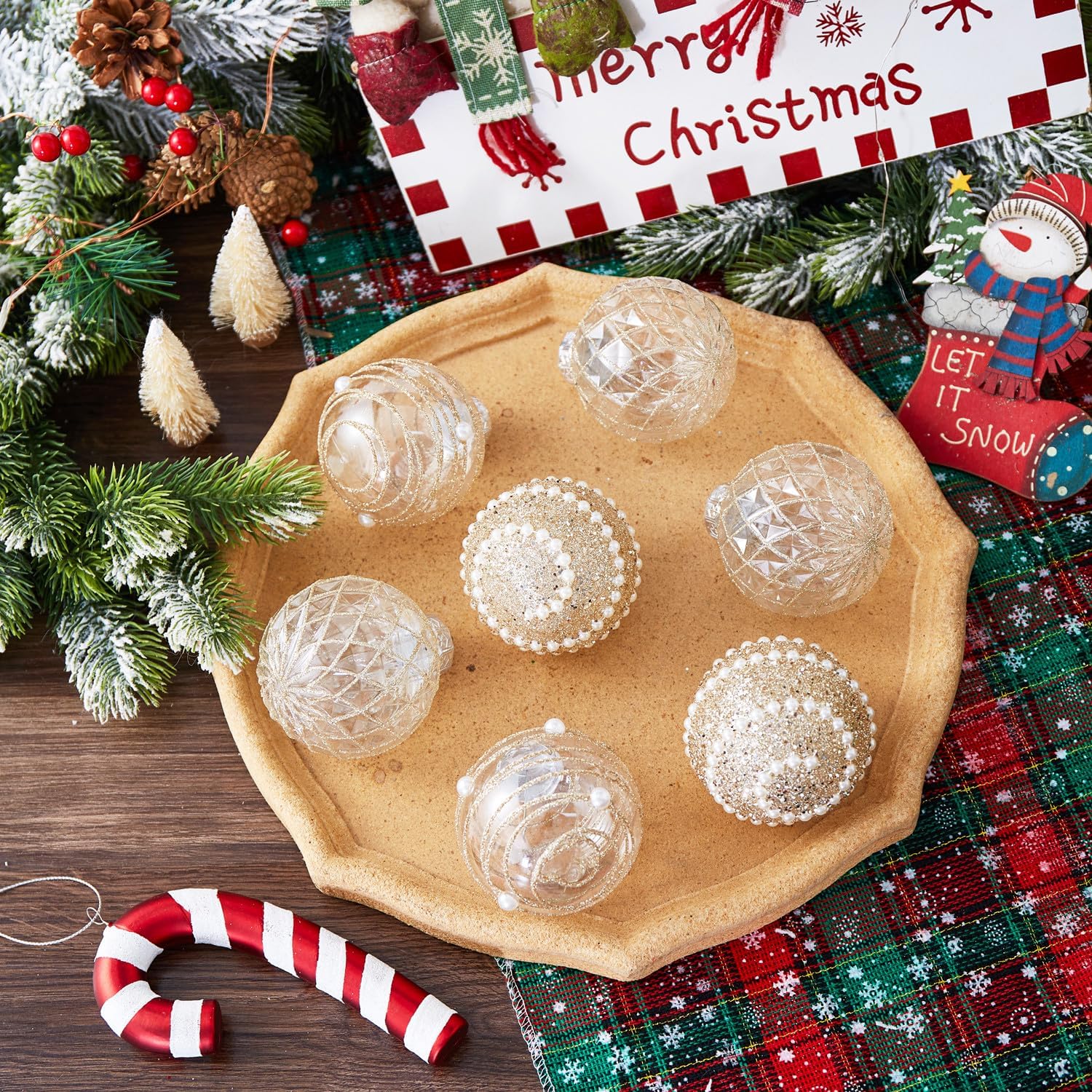12CT Christmas Ball Ornaments Champagne Shatterproof Clear Large Plastic Christmas Tree Decoration, Delicate Hanging Ornaments for Xmas Party, Wedding, Holiday and Home Décor(70mm/2.76")