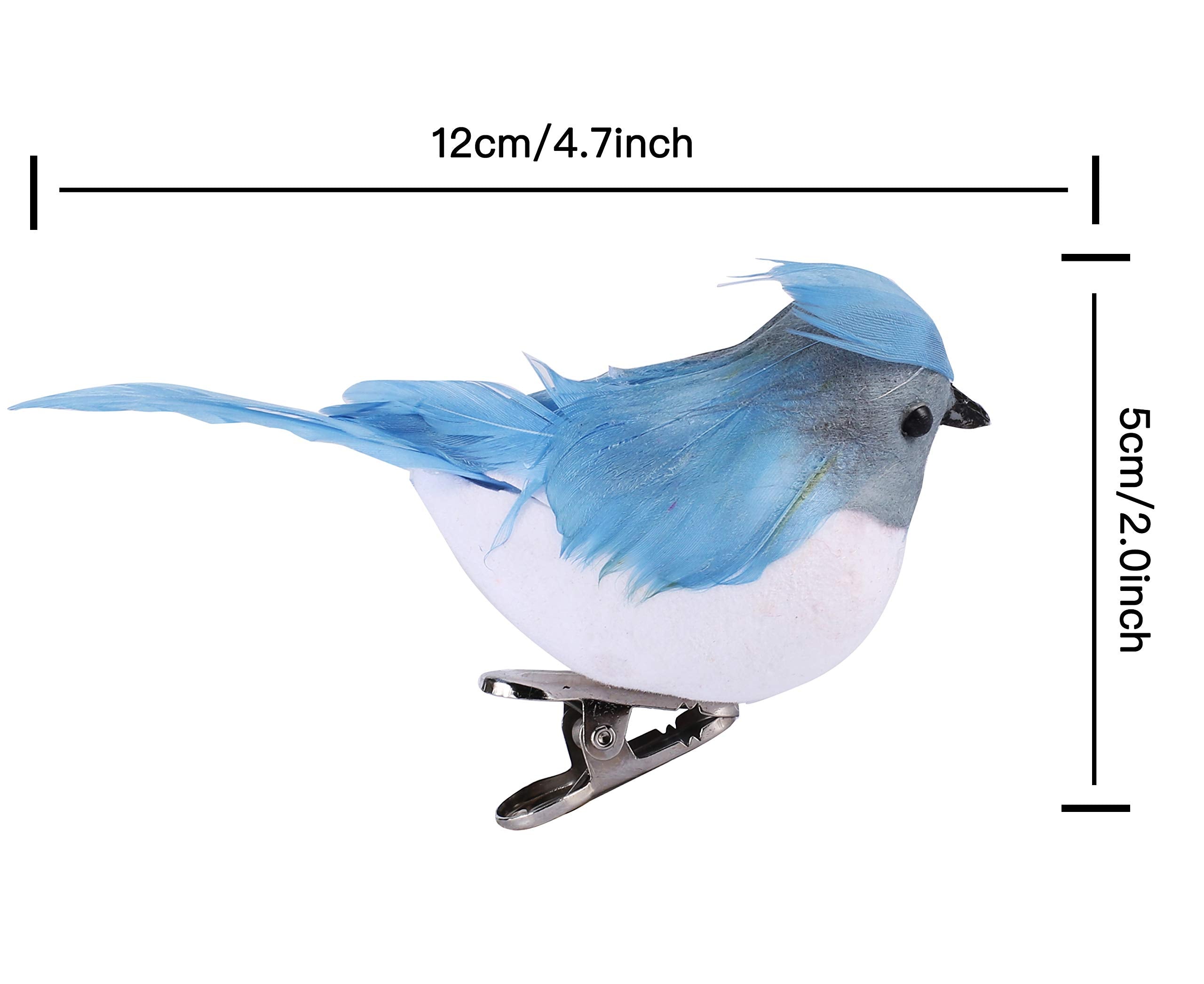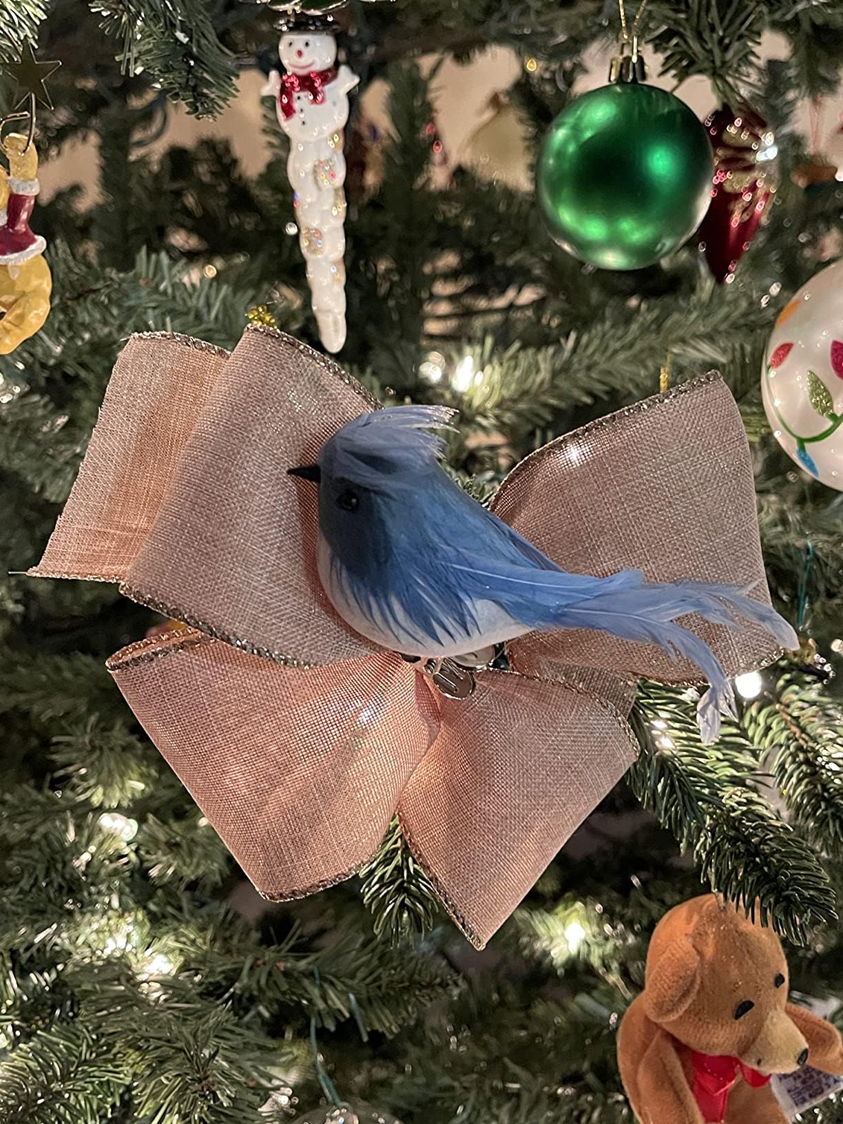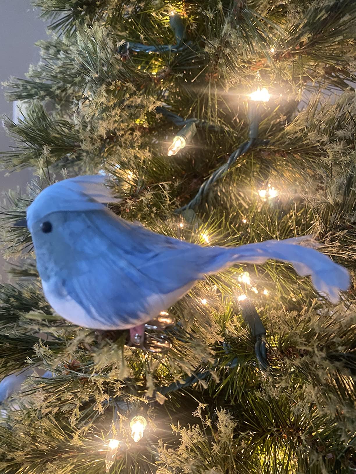 12pcs Artificial Blue Christmas Ornaments with Clip and Real Birds Tail Feathers,Light Blue Bird Feather Craft Decoration for Christmas Tree Decor