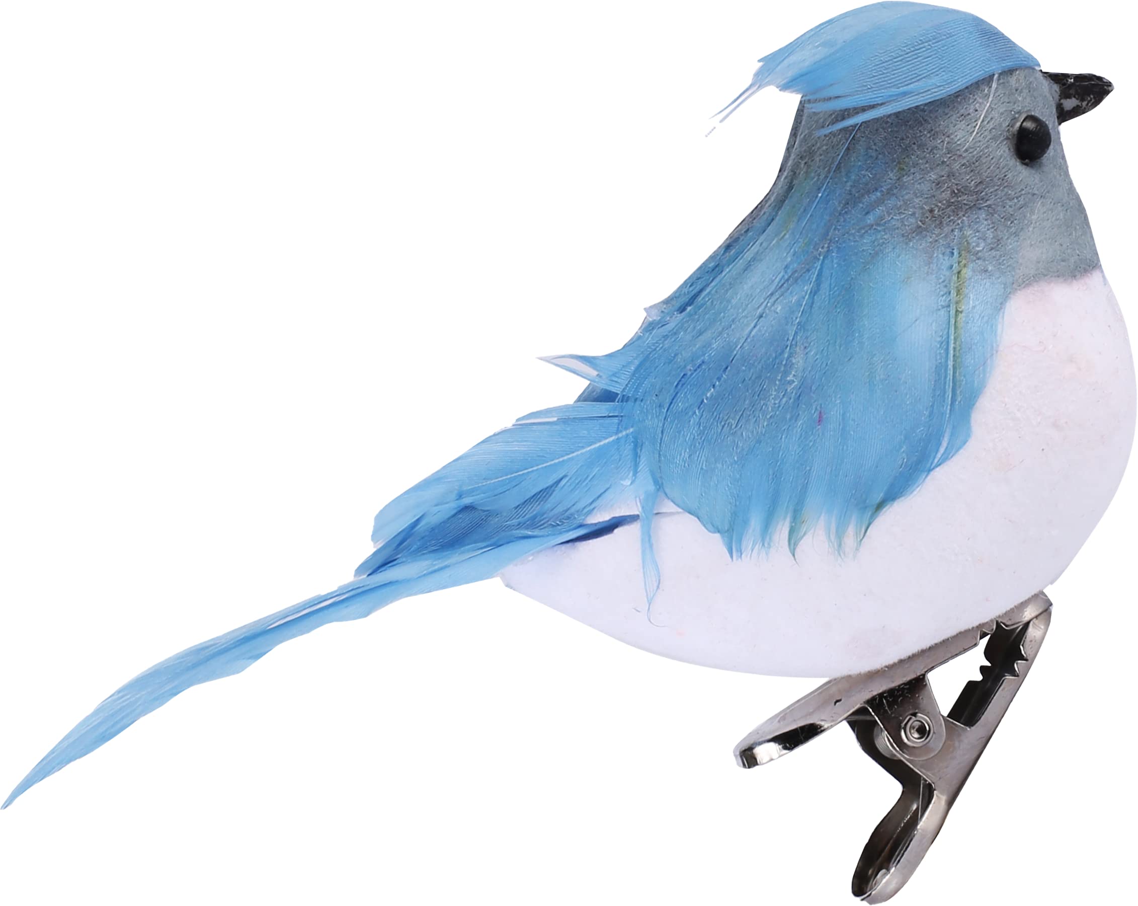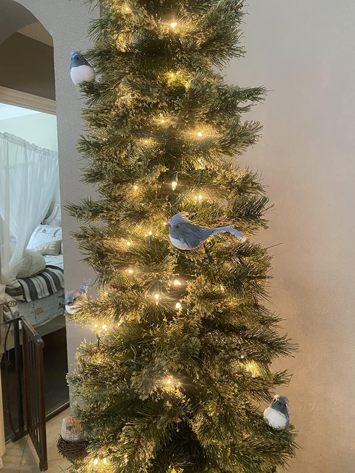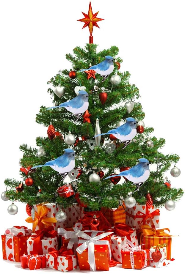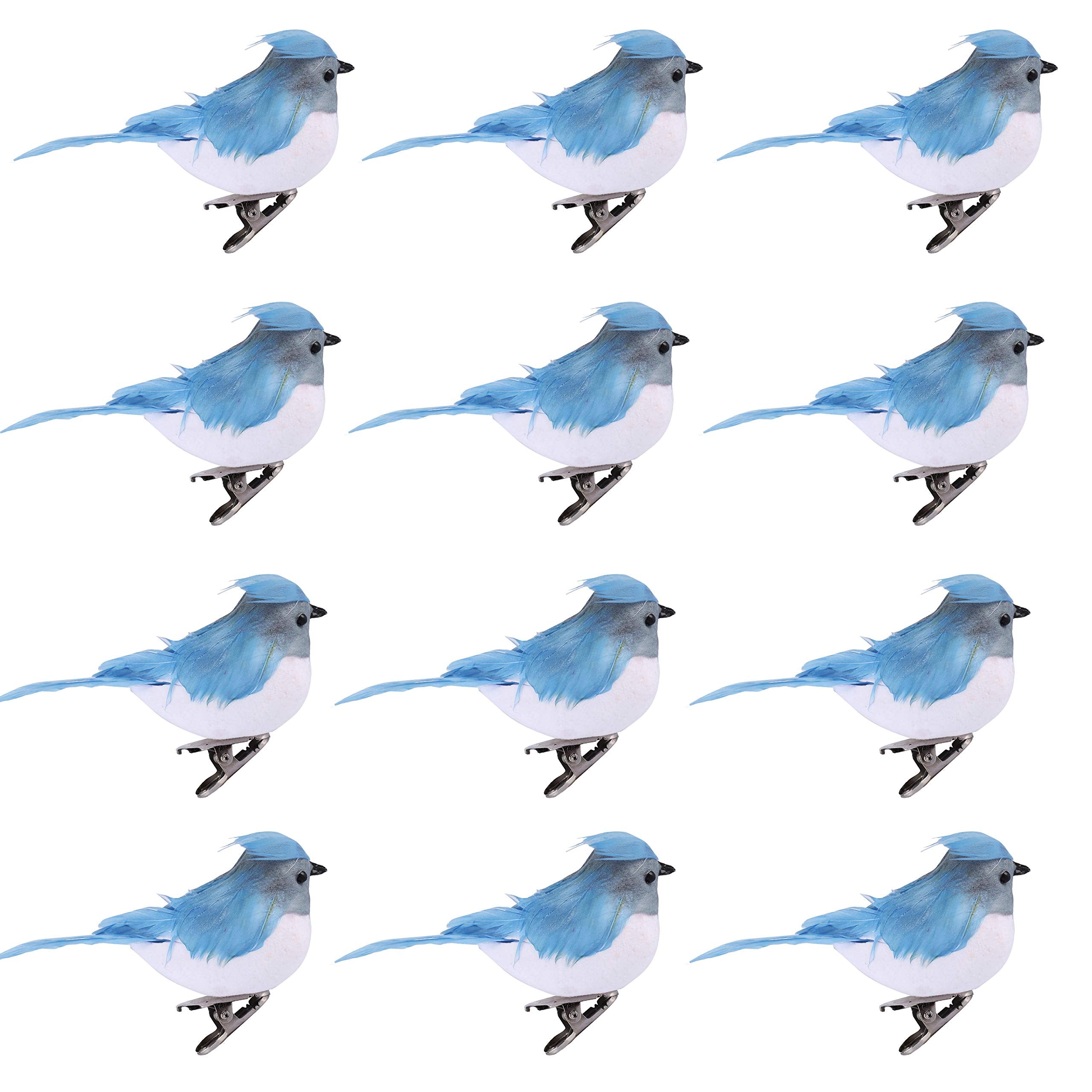 12pcs Artificial Blue Christmas Ornaments with Clip and Real Birds Tail Feathers,Light Blue Bird Feather Craft Decoration for Christmas Tree Decor
