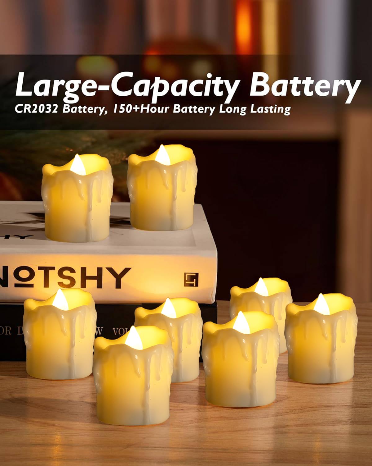 12PCS Battery Operated Tea Lights Votive Flameless Candles with Timer 6hrs On 18 Hrs Off for Christmas Thanksgiving Home Wedding Party Decor