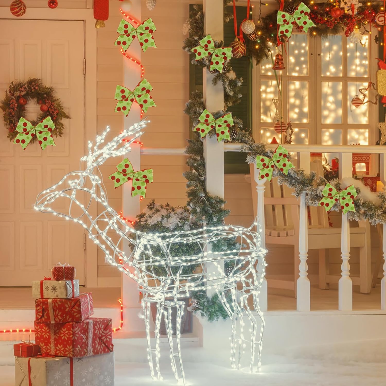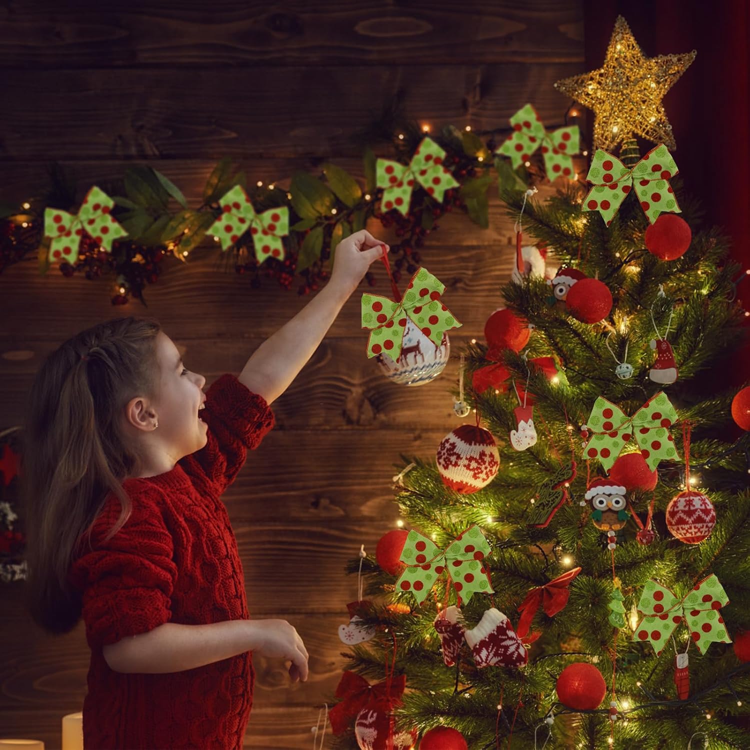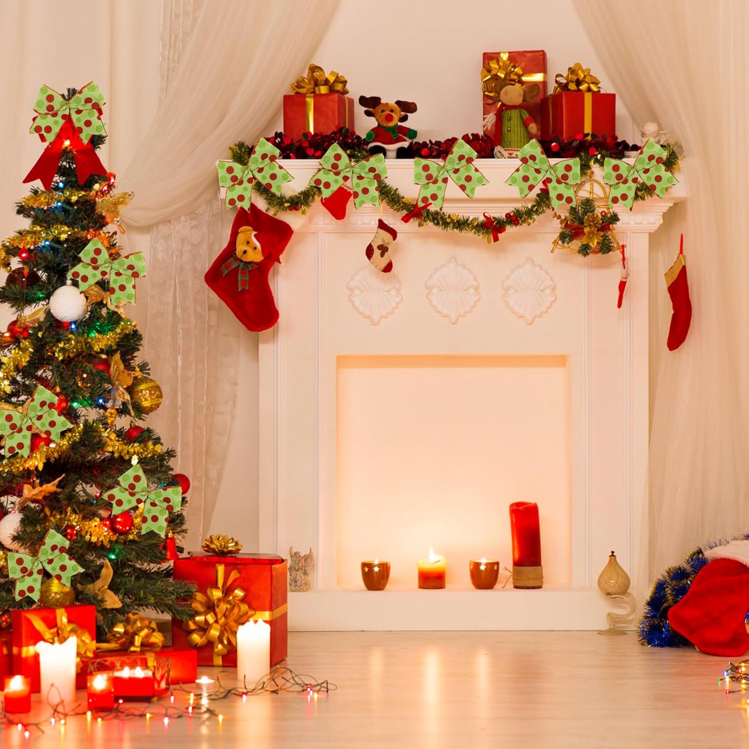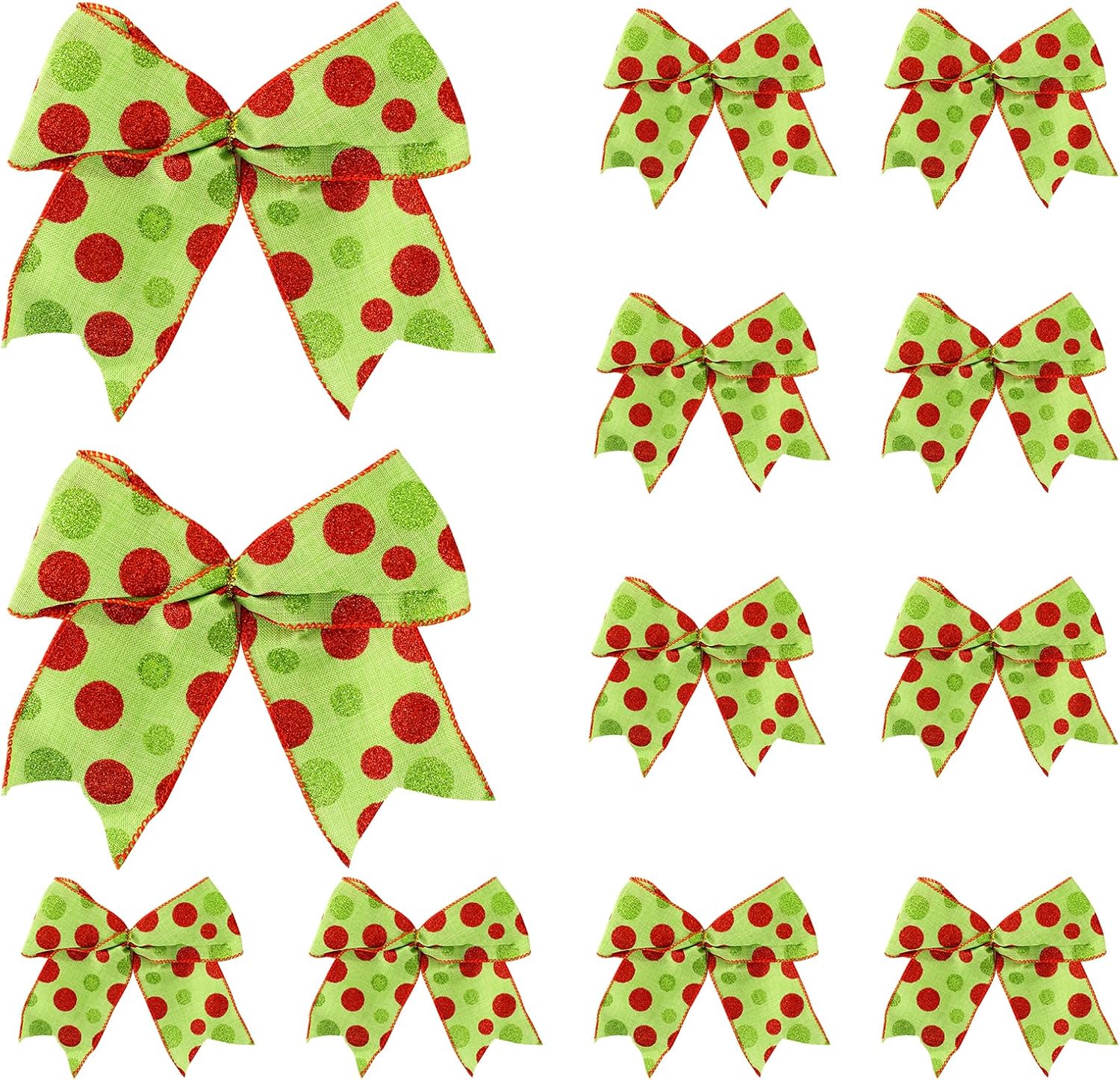12PCS Christmas Bows Decoration Red Green Dot Christmas Ribbon Bows Christmas Wreaths Bows Ornaments for Winter Xmas Holiday Wedding Party Accessories (Green)