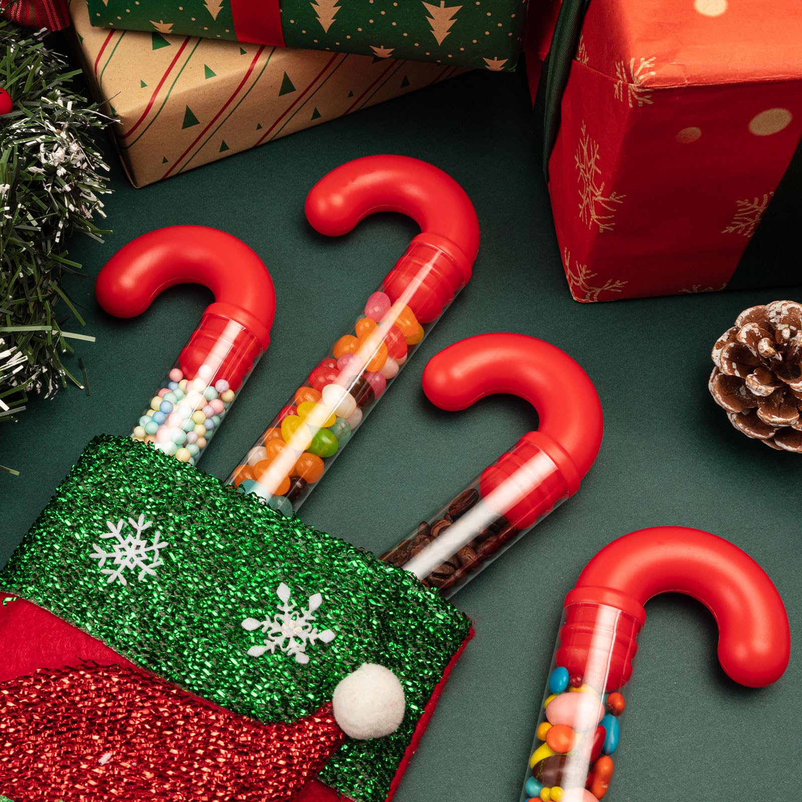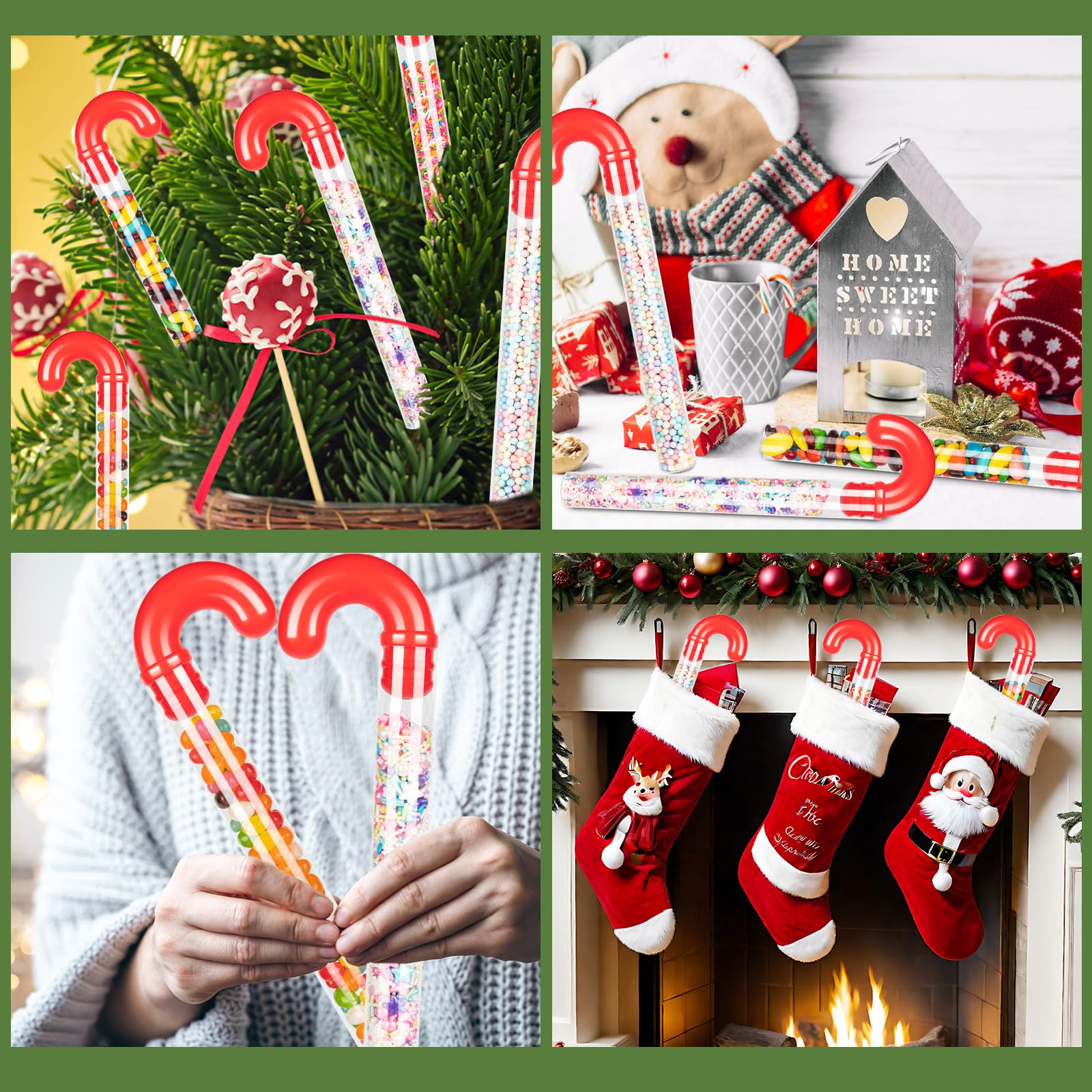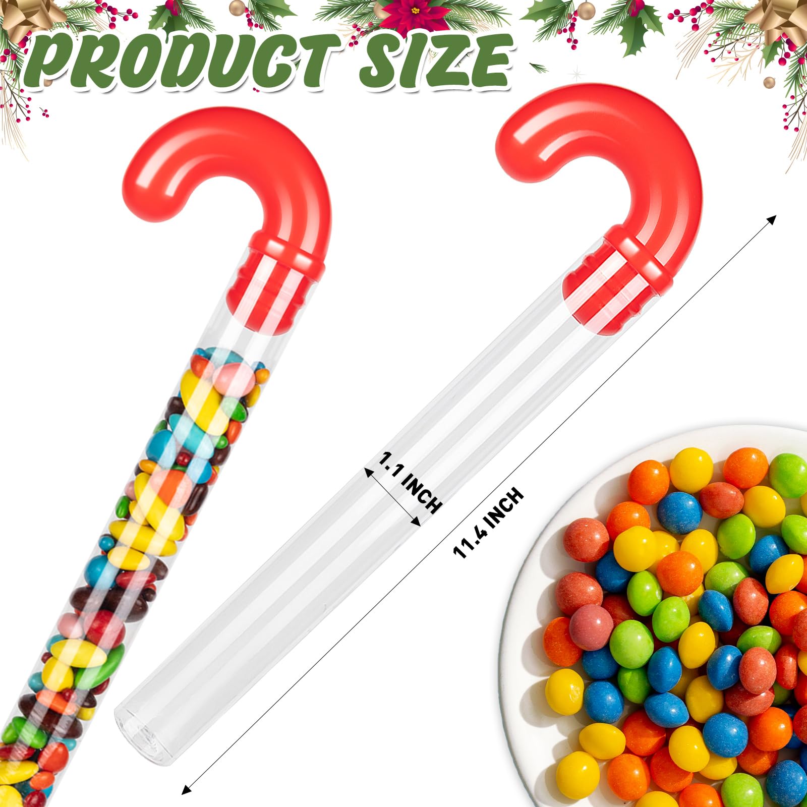 12Pcs Christmas Candy Cane Tubes, Clear Candy Containers with Red Topper, Plastic Tubes for Sweets for Christmas Party Supplies