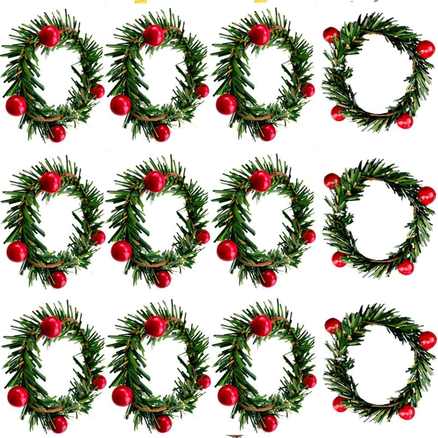 🌲PRODUCT SIZE:Each napkin ring includes 4 PCS red Christmas Berries Pine Leaves Wreaths , inner diameter of 1.96 inches/5cm,which compatible with most napkins.🌲PRODUCT MATERIAL:Christmas napkin ring is composed of iron wire and brown paper, and is matched with red berries and PVC green leaves. Each one is made by hand and mechanical cooperation,it can be used for many times