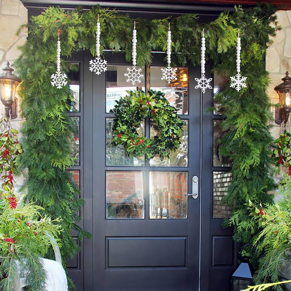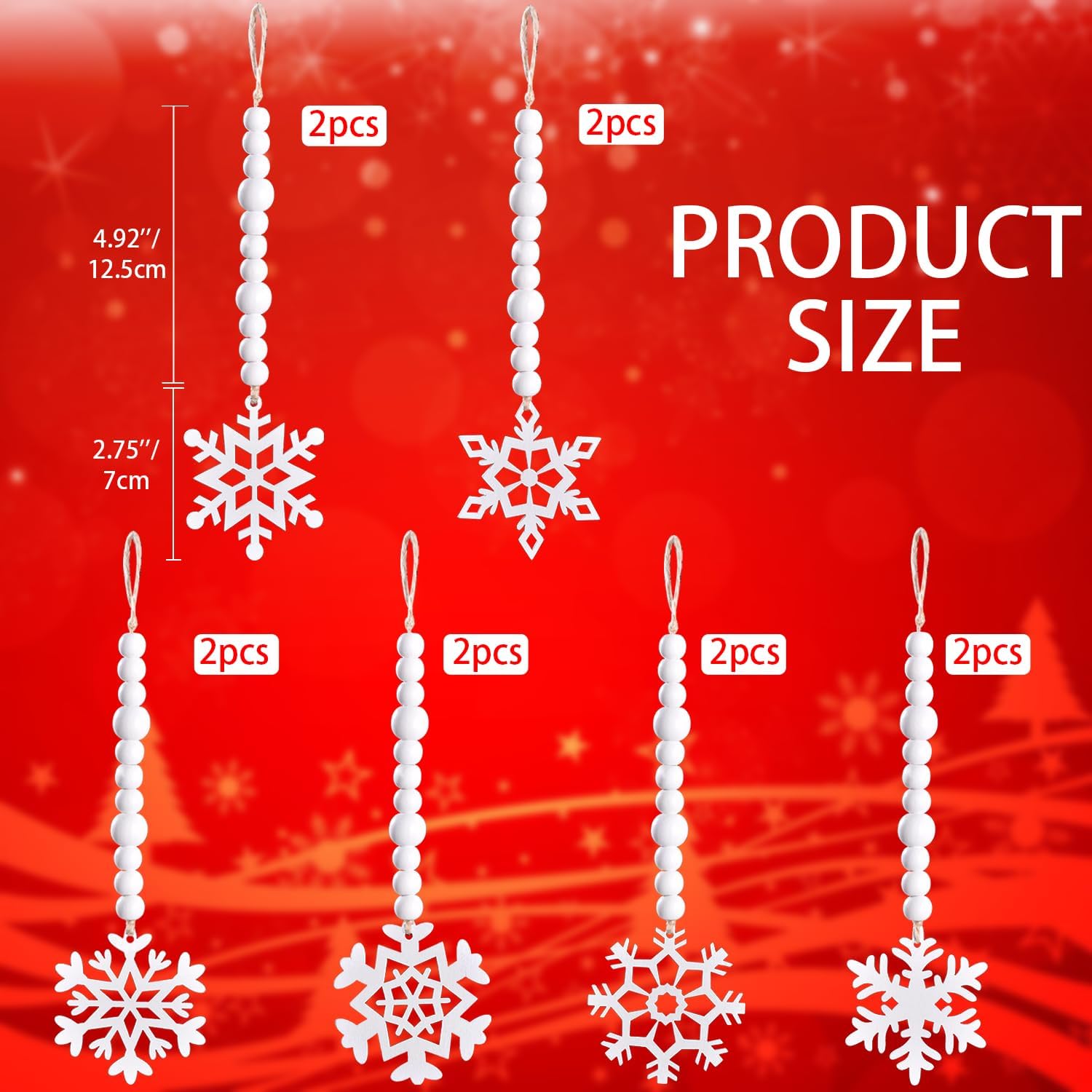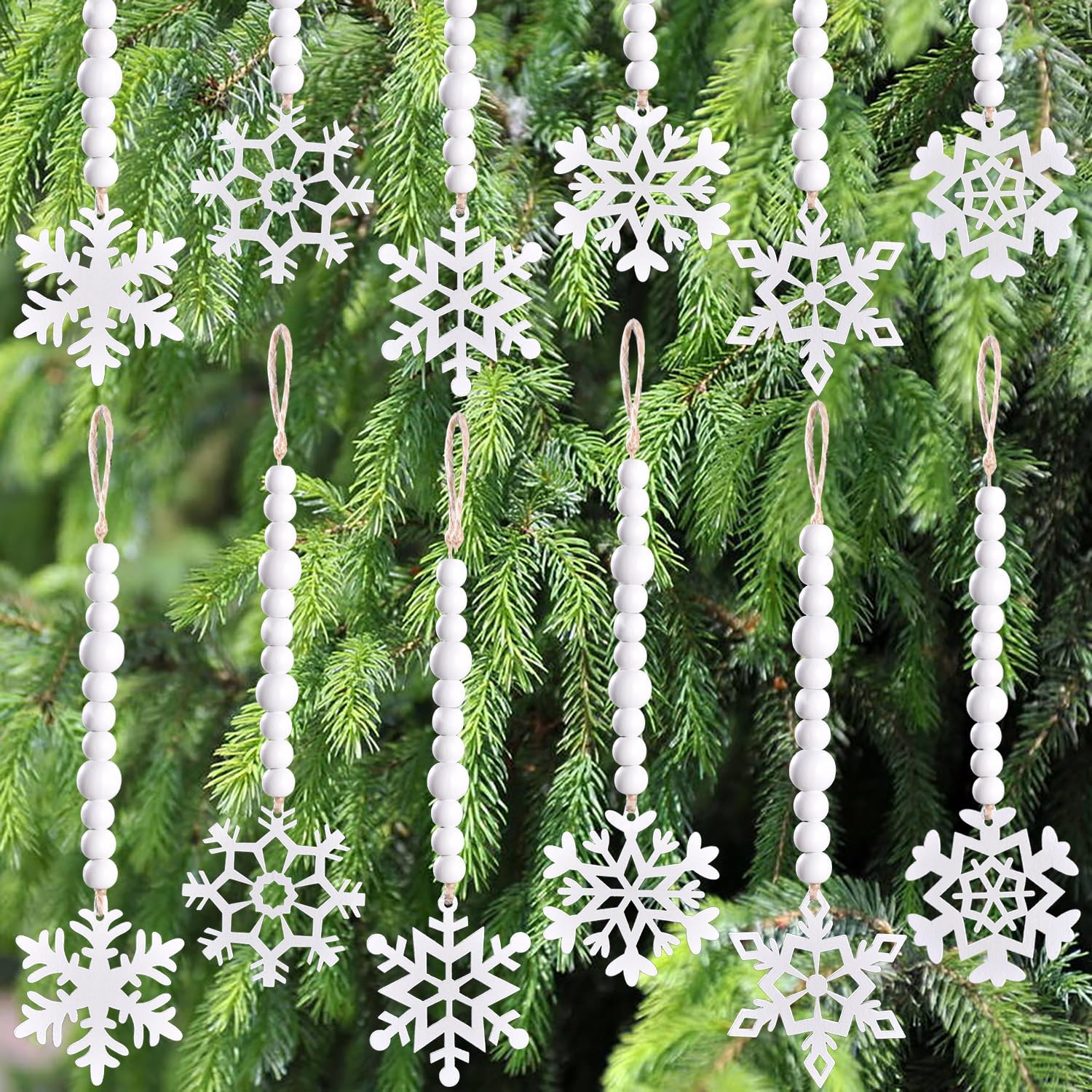 12pcs Christmas Tree Hanging Wooden Snowflakes Decorations 3D Christmas Tree Decor White Wood Snowflake Ornaments with Jute String Hanger for Home Ceiling Chandelier Party Indoor Outdoor (White)