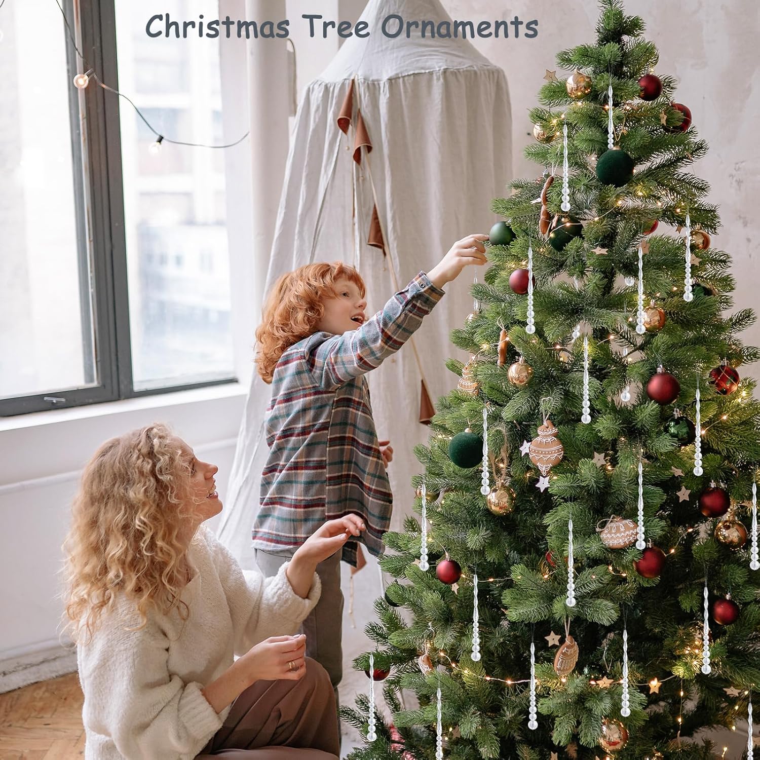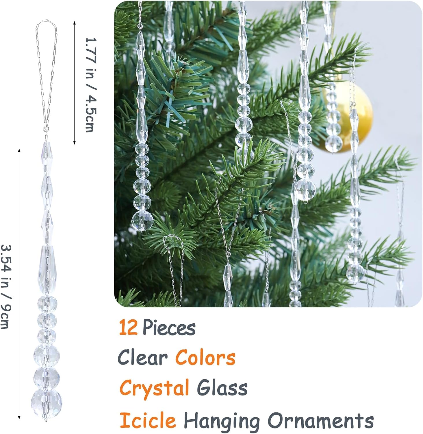 12pcs Crystal Icicle Christmas Tree Ornaments, Glass Beads Hanging Chandelier Pendants for Christmas Party Wedding Winter Decorations (White Clear)