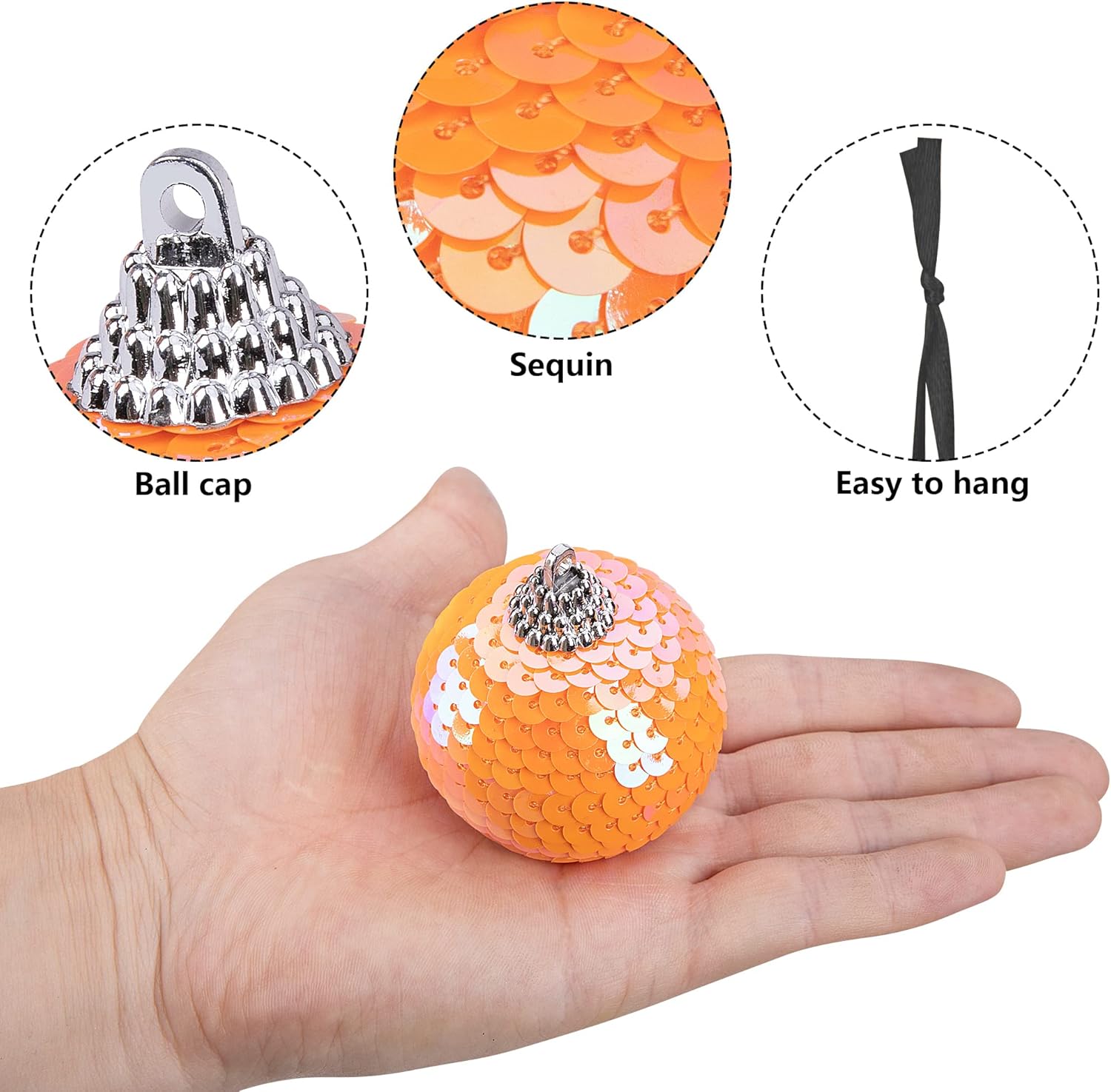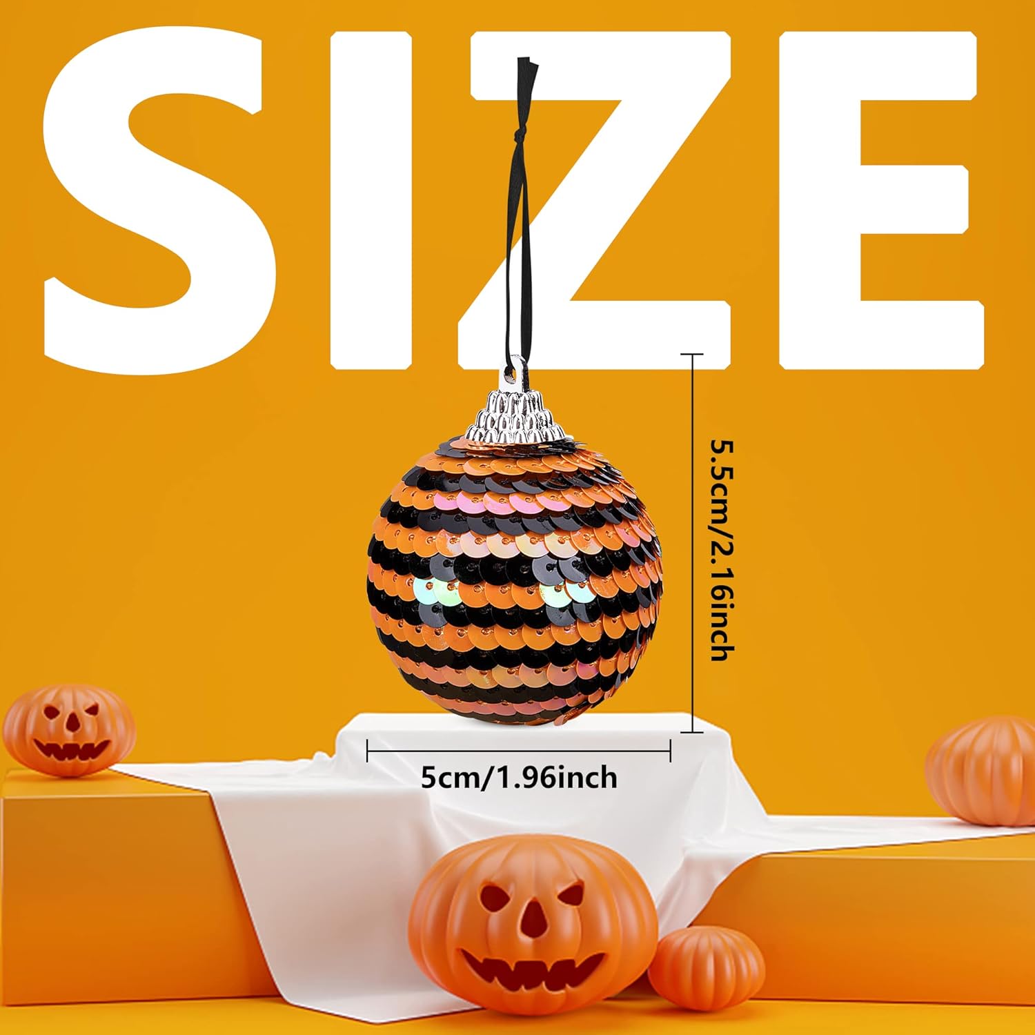 12pcs Halloween Ball Ornaments - 1.96" Halloween Sequin Hanging Ball - Scary Halloween Theme Hanging Balls for Halloween Wreath Ornaments and Party Decoration