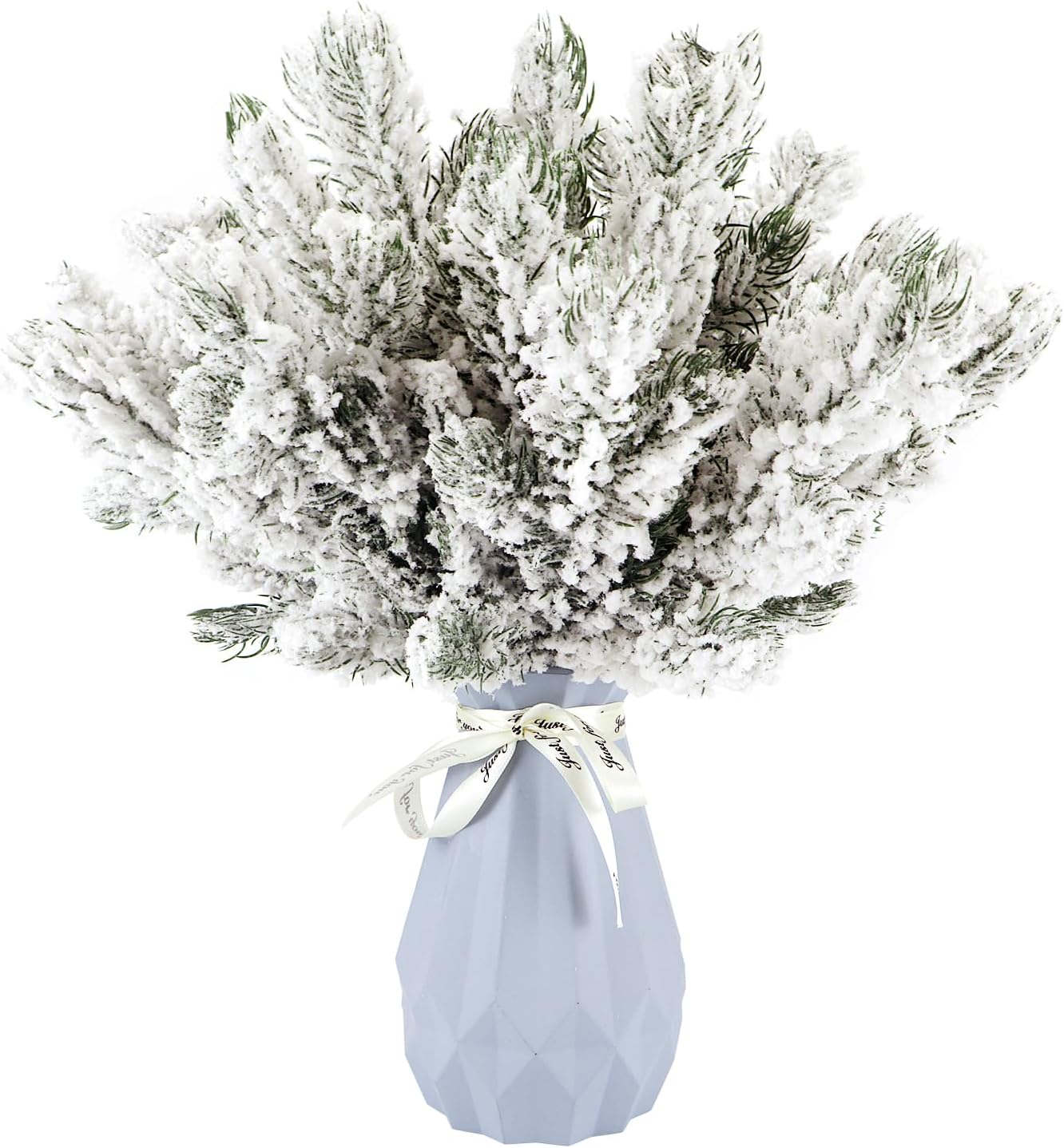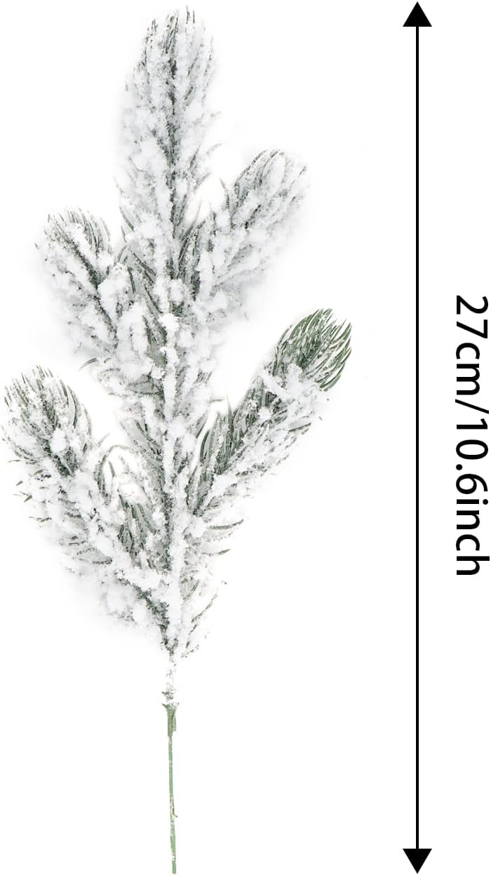 12Pcs Snowy Artificial Pine Needles Branches Twigs 10.6" Fake Frosted Pine Picks Greenery Stems Christmas Pine Tree Picks Winter Fir Pine Sprays Sprigs for Crafts Wreaths Garlands Holiday Decor
