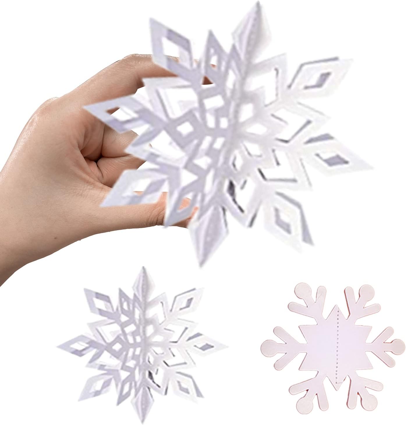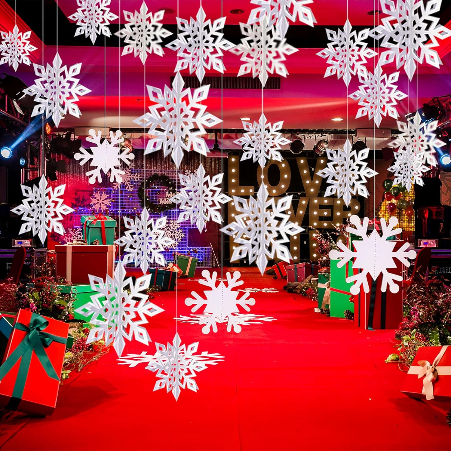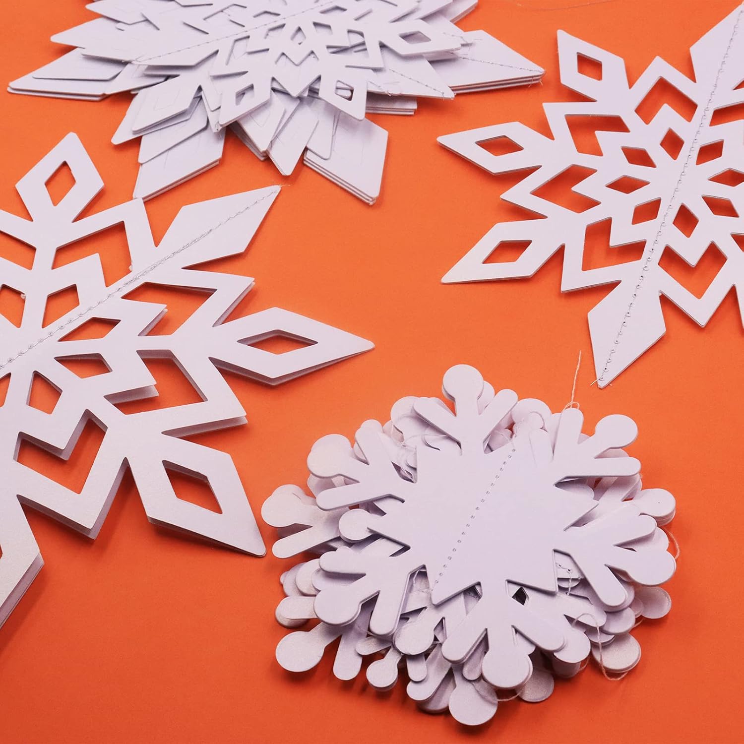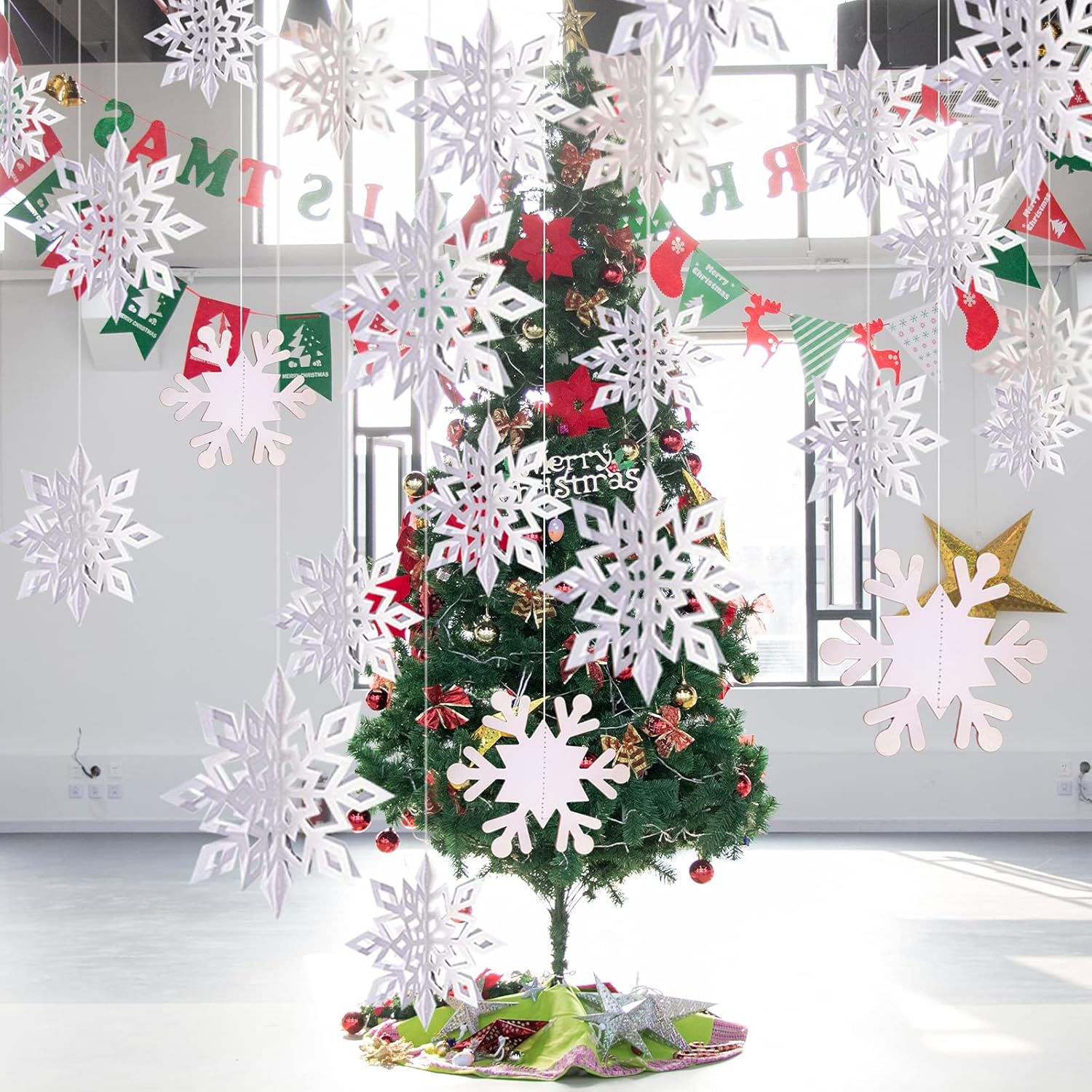 12PCS Winter Christmas Snowflakes Hanging Decorations - 3D White Paper Snowflake Garland with Snowflake Banner for Christmas Holiday Winter Wonderland Frozen Party Decorations