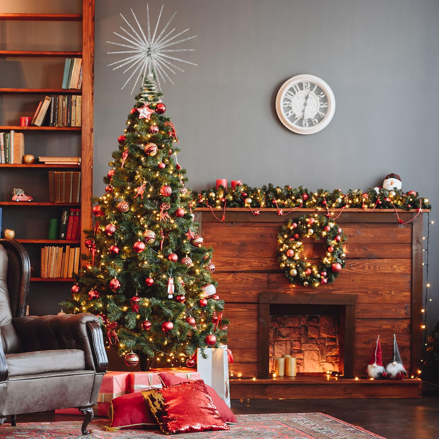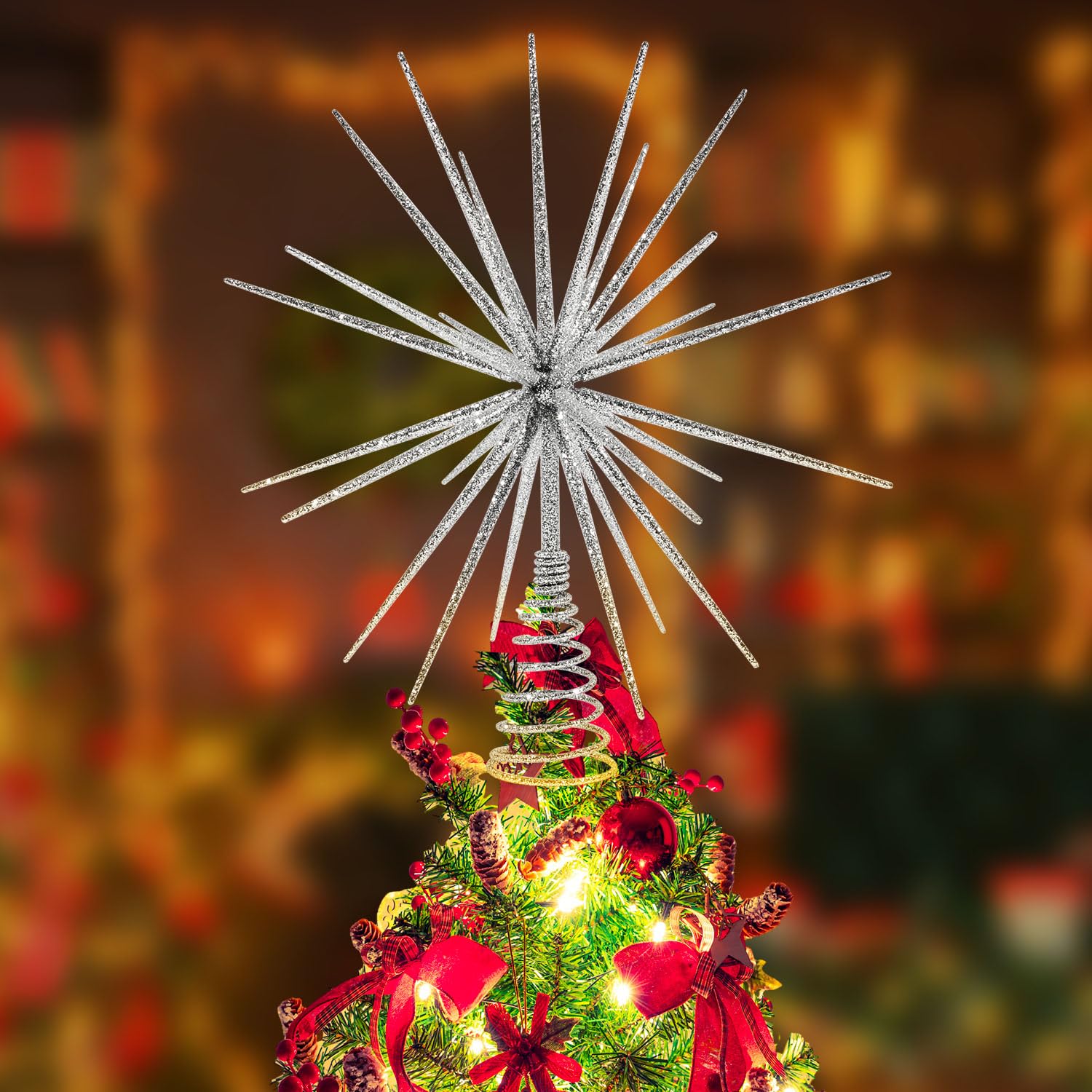 13.7 Inch Silver Christmas Tree Topper - 3D Burst Silver Tree Topper, Exploding Star Christmas Tree Decorations