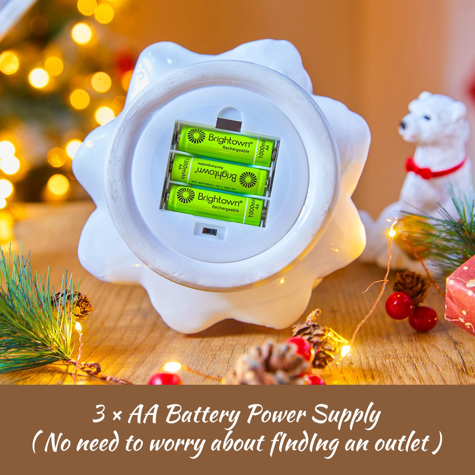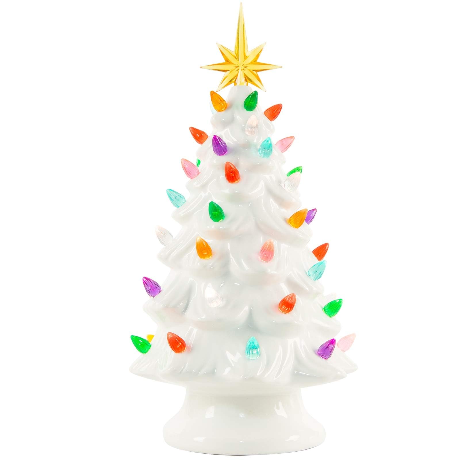 13 Inch Ceramic Christmas Tree, Pre-lit Tabletop Christmas Tree with Multicolored LED Lights and Star, Battery Operated, White