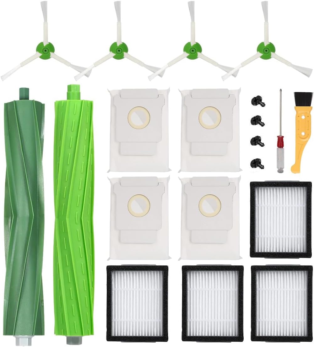13 Pack Parts For Irobot Roomba I3 I7 J7 I4 I7+ I3+ I4 I4+ I6 I6+ I8 I8+ J7+ Plus E5 E6,I & J Series1 Rubber Brush, 4 Filter,4 Brush,4 Dirt Disposal Bags