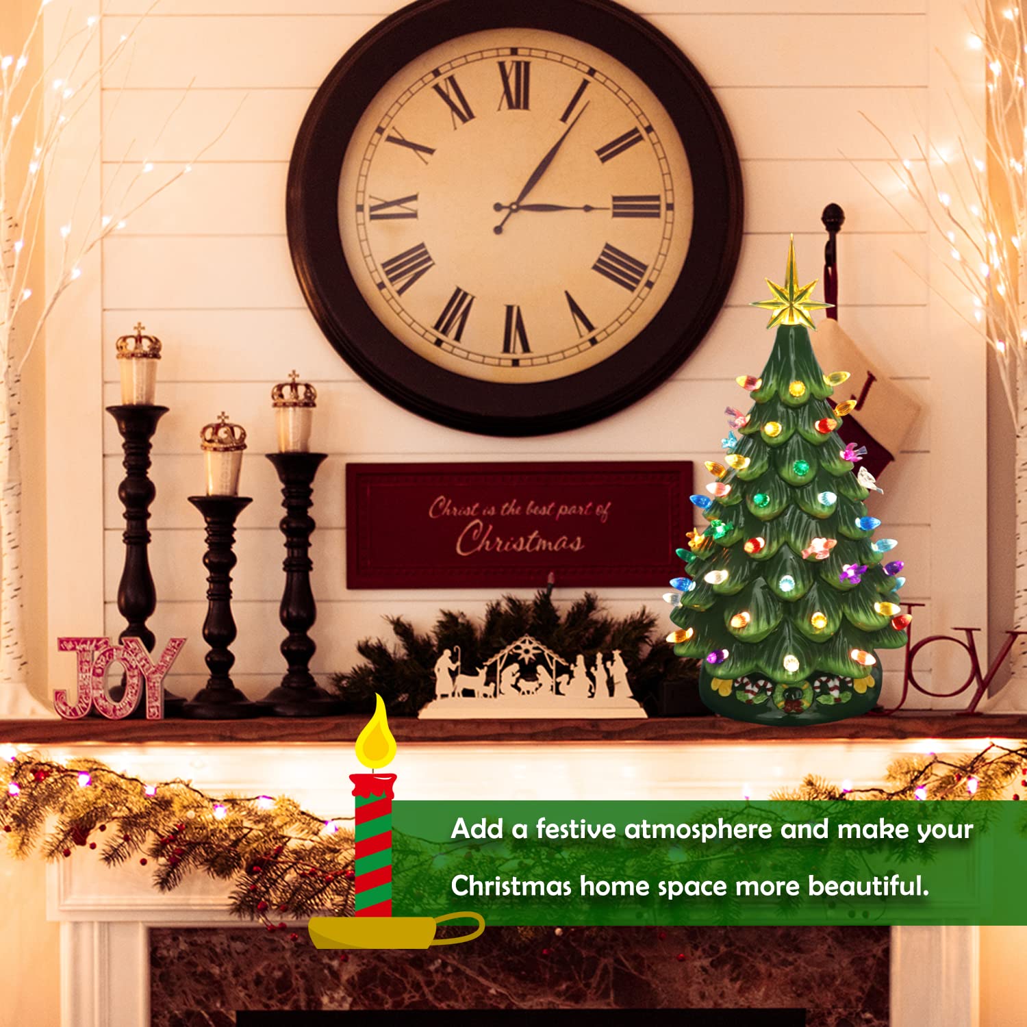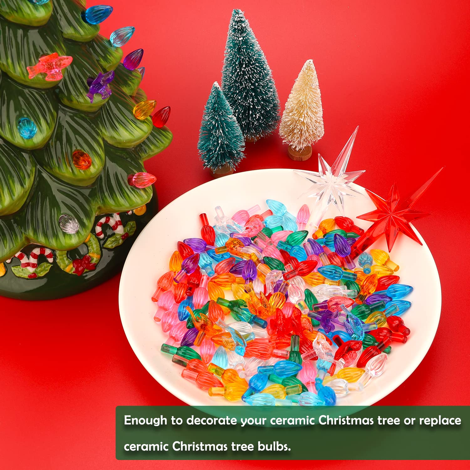 135Pcs Multicolor Ceramic Christmas Tree Replacement Light Bulbs Medium Twist Light Ornaments, 40Pcs Cardinals Birds Lights Bulbs and 3Pcs Topper Stars for Ceramic Christmas Tree