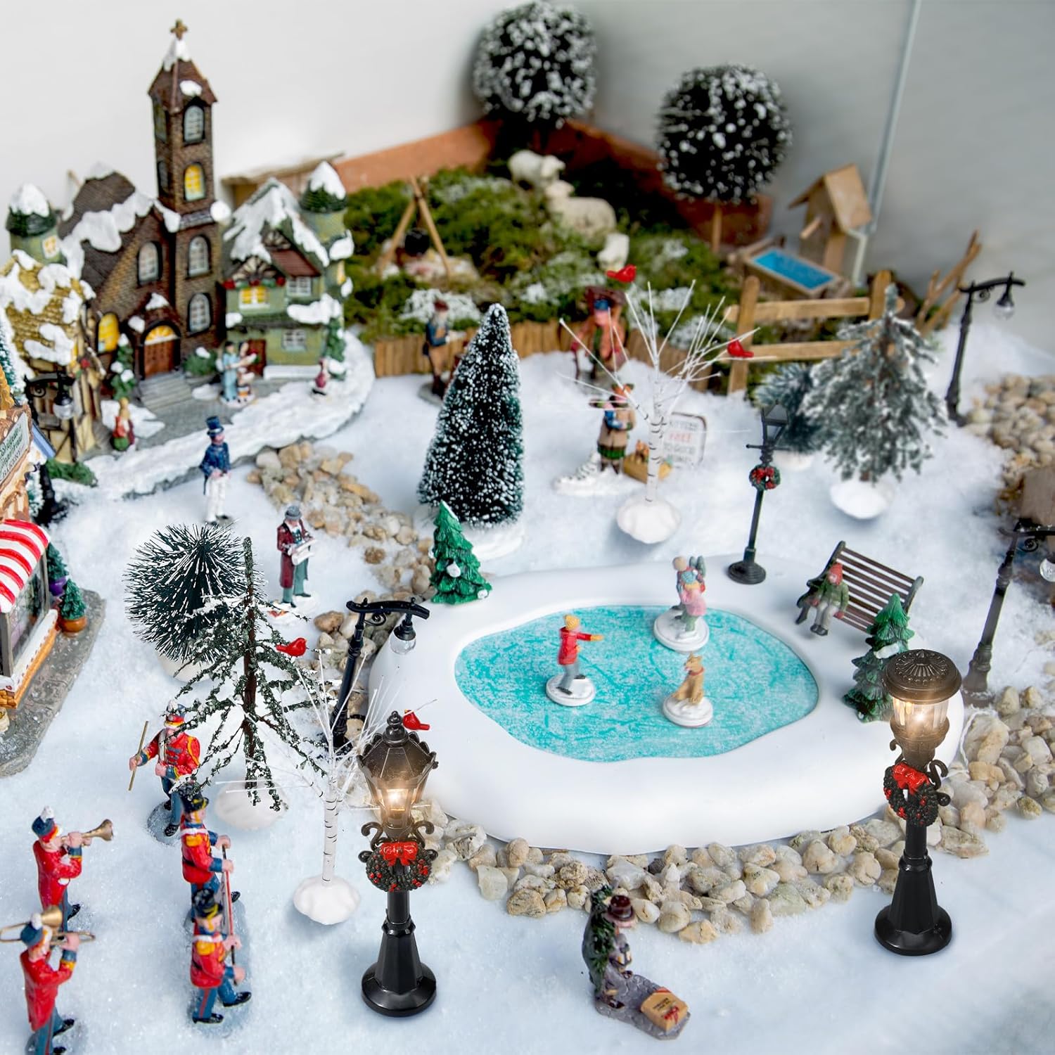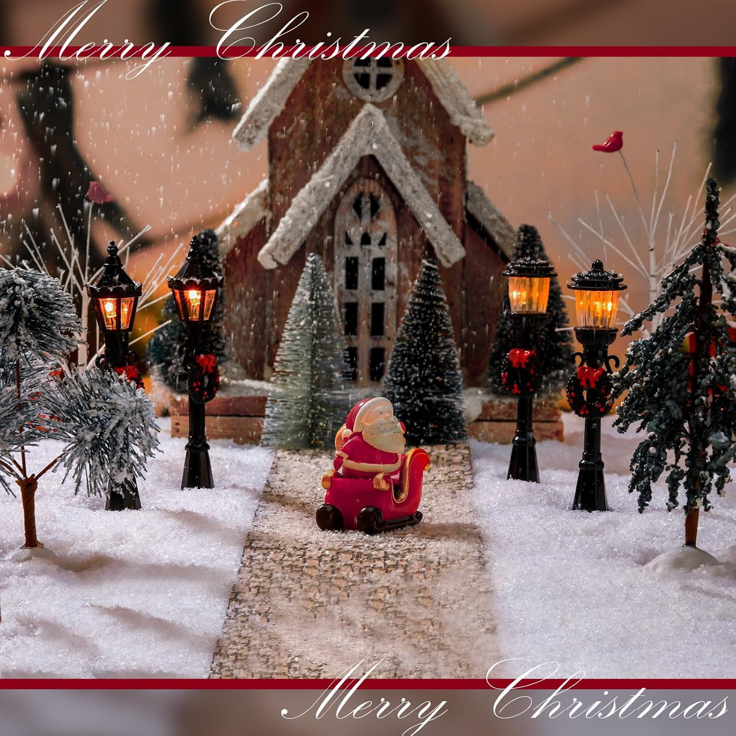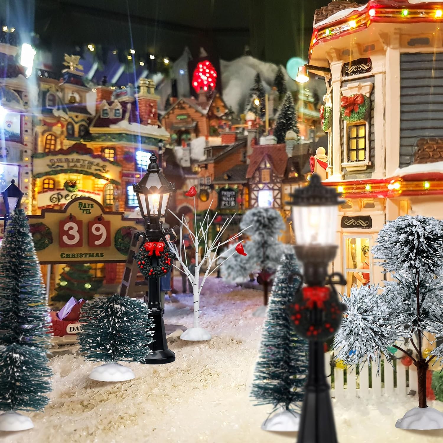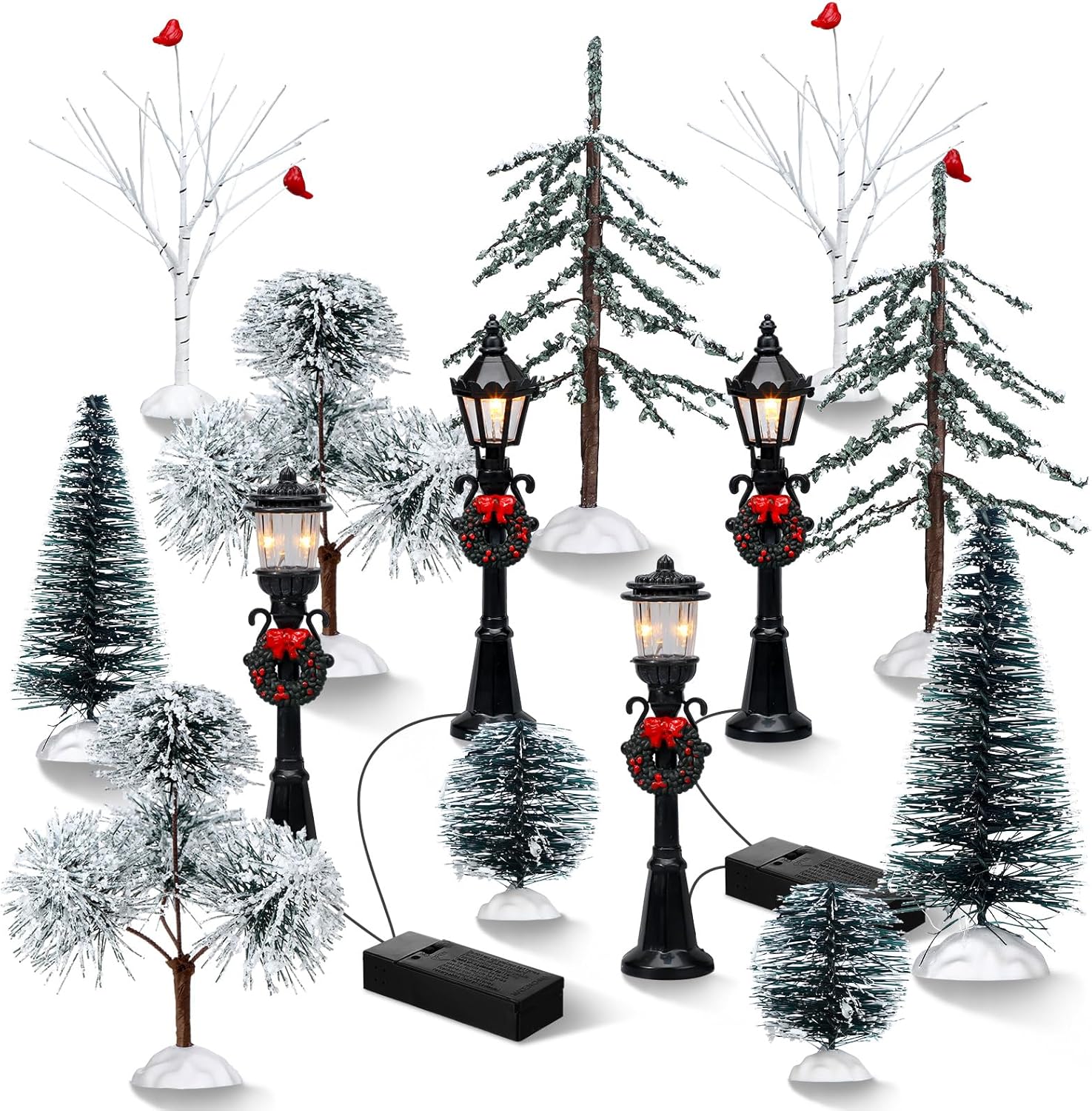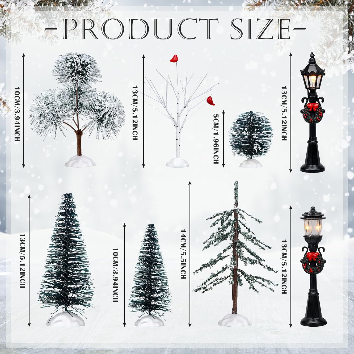 14 Pcs Christmas Accessories Village Figurine Miniature Pine Trees Snow Artificial Christmas Trees Bare Branch Trees Street Lights Lamps for Xmas DIY Crafts Winter Room Landscape (Exquisite Style)