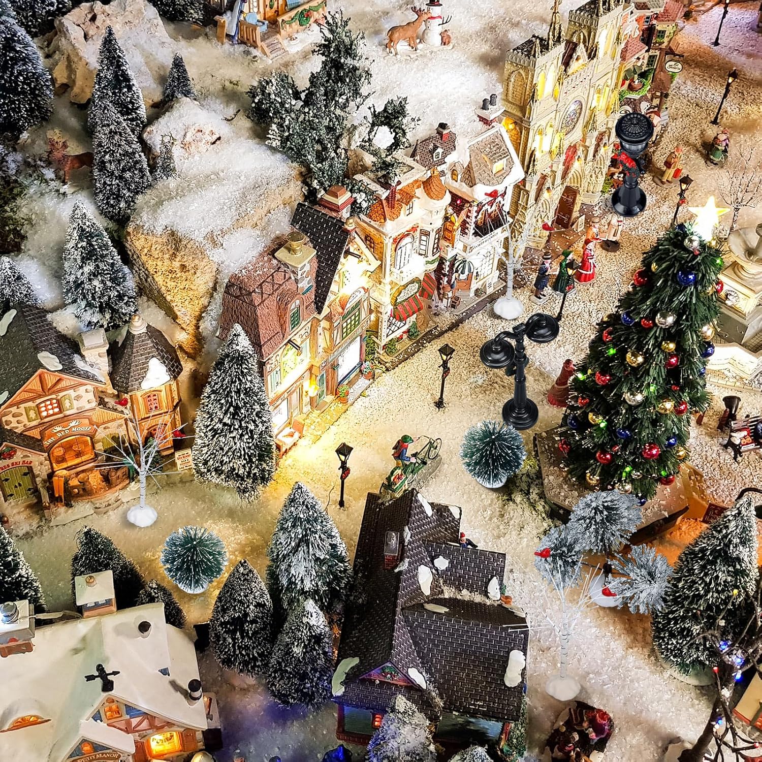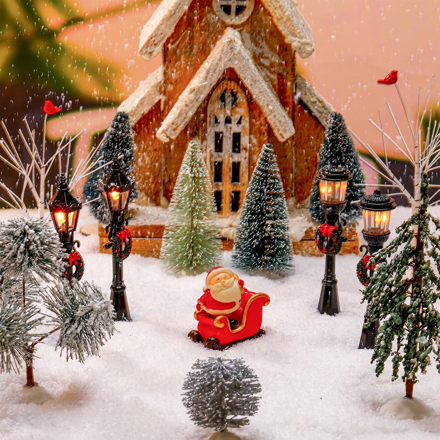 14 Pcs Christmas Accessories Village Figurine Miniature Pine Trees Snow Artificial Christmas Trees Bare Branch Trees Street Lights Lamps for Xmas DIY Crafts Winter Room Landscape (Vibrant Style)