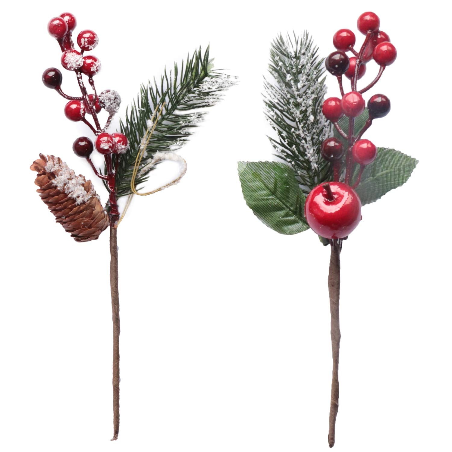 14PCS Artificial Berry Picks, Christmas Pine Picks with Red & White Berries Pine Cones for Christmas Decorations DIY Crafts Wrapping Flower Arrangements Wreaths Holiday Floral Snowy Picks (14)