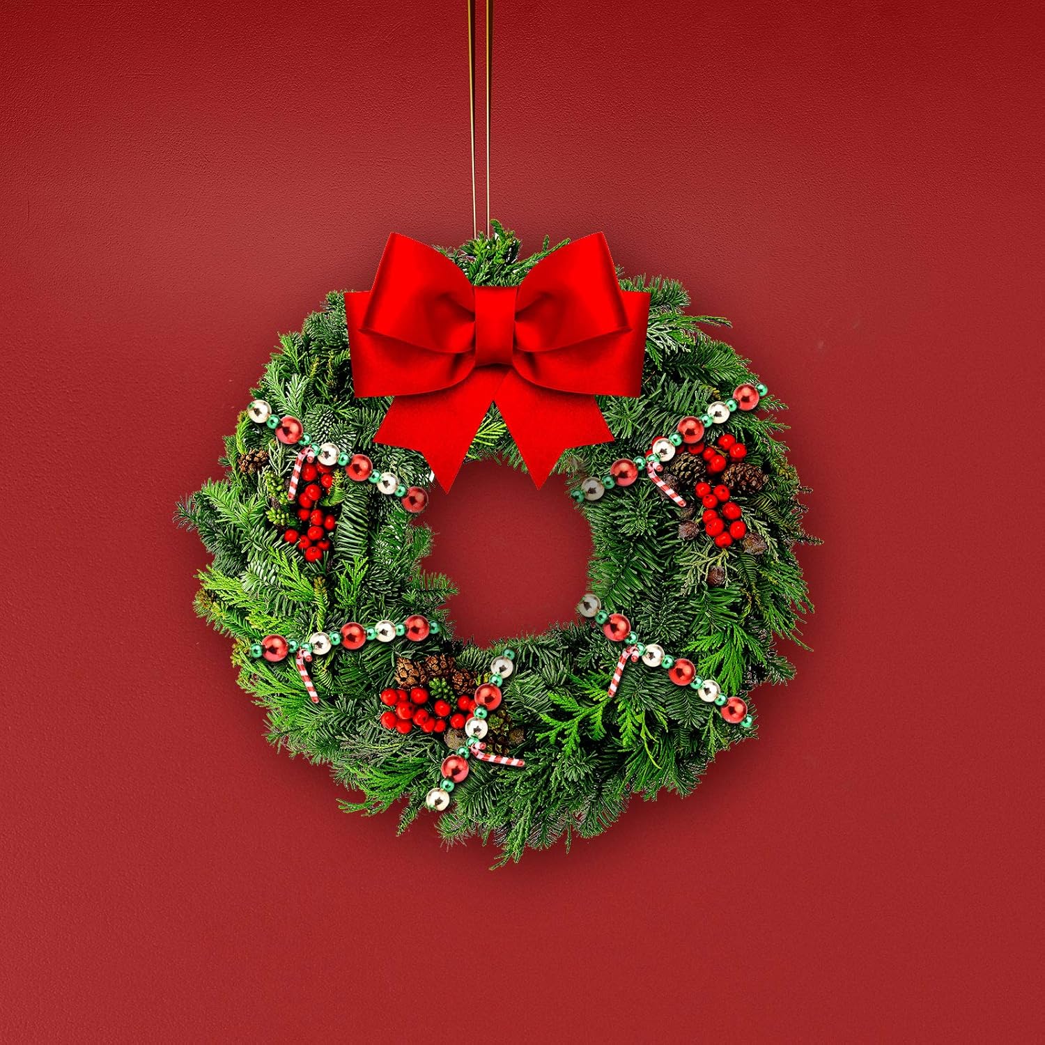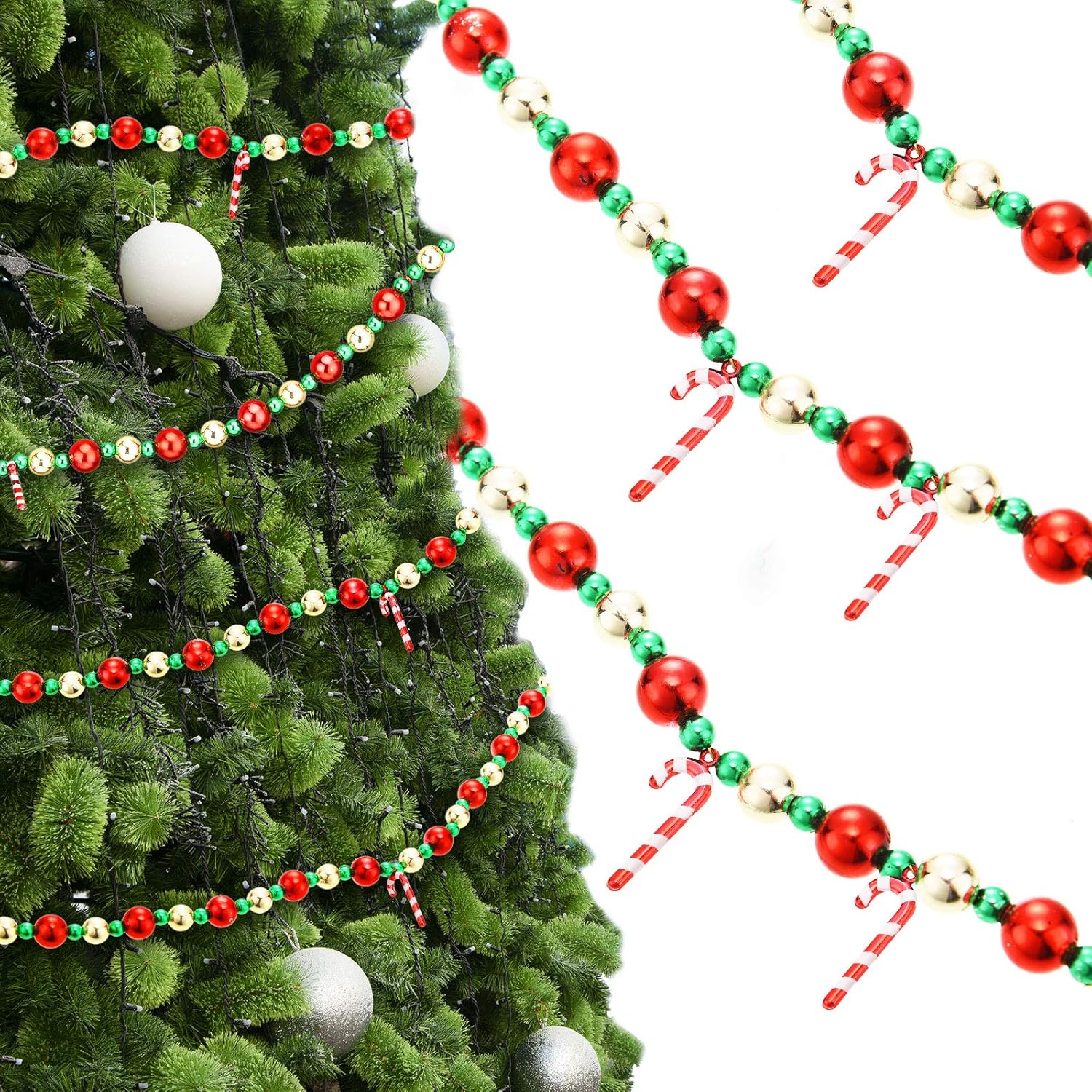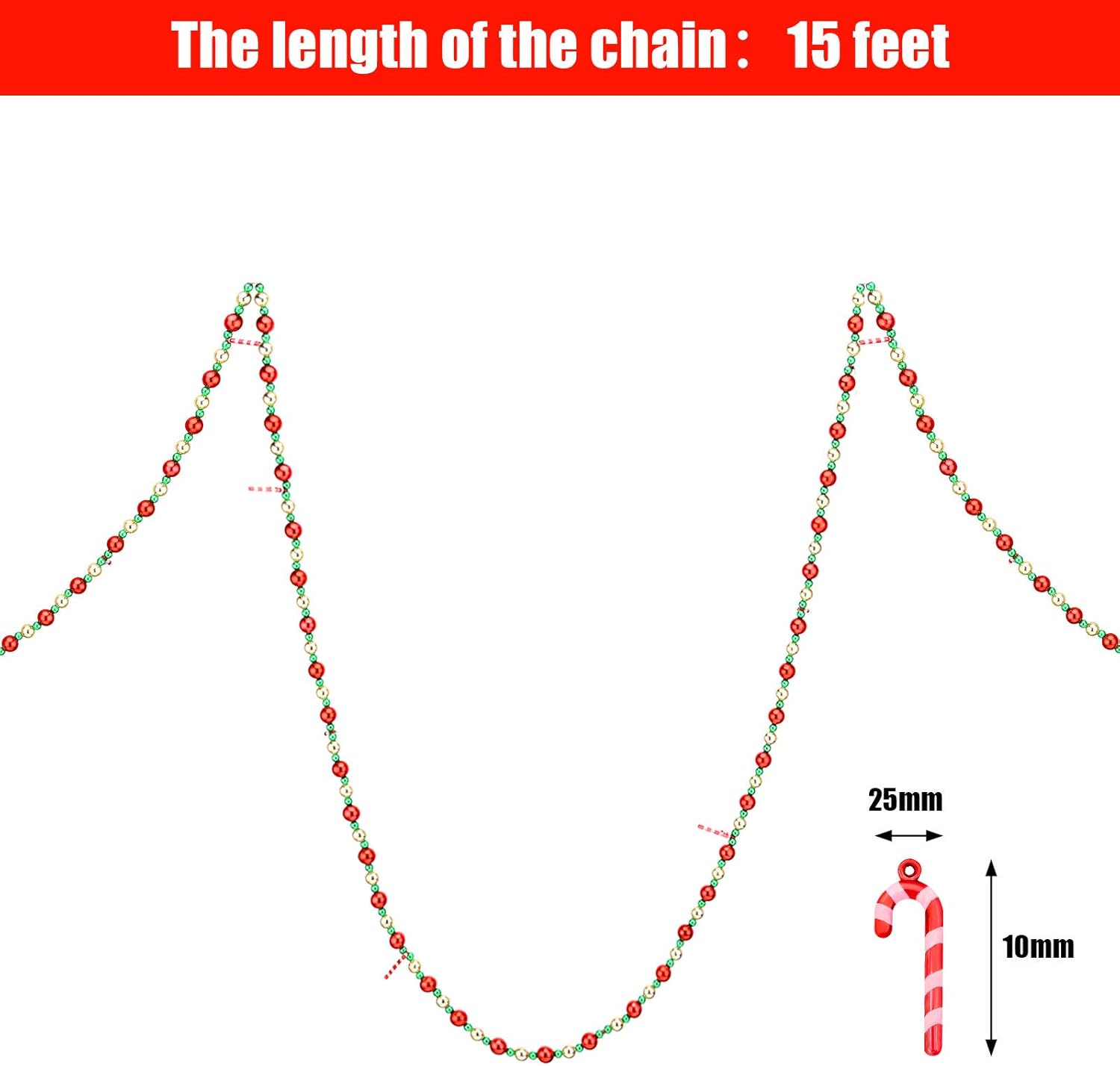 15 Feet Christmas Candy Bead Garland Red Green Gold Beaded Garland Red Balls and Stripe Candy Christmas Garland for Christmas Tree Ornament Candy Cane