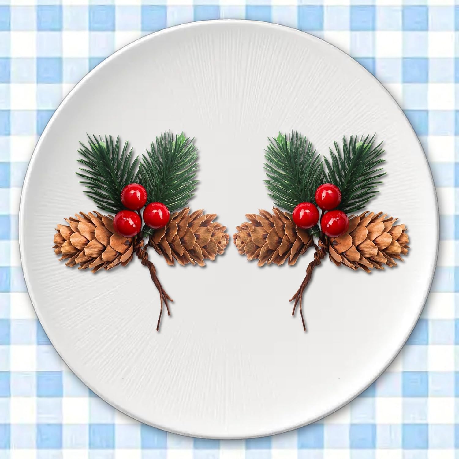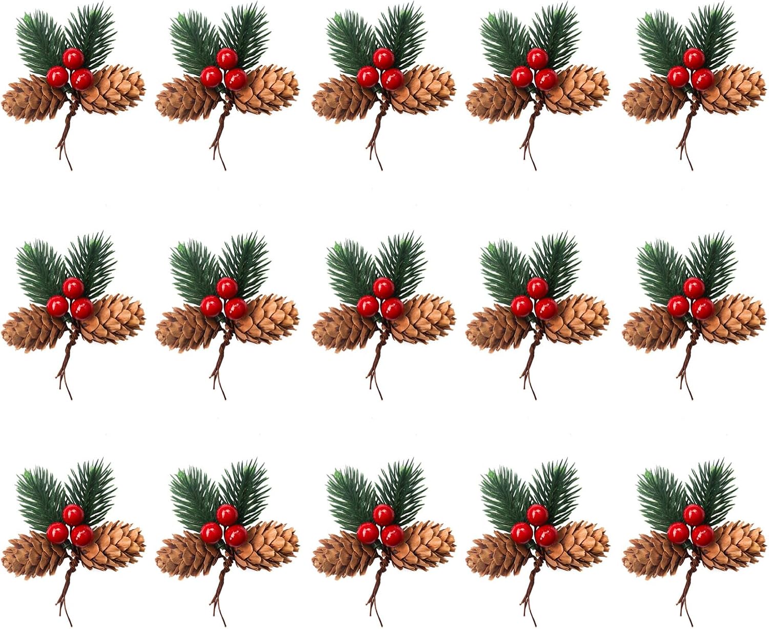 15 Pcs Artificial Pine Cone Picks and Red Berry,Mini Artificial Pine Tree for Christmas Party Flower Wreaths and Holiday Decorations