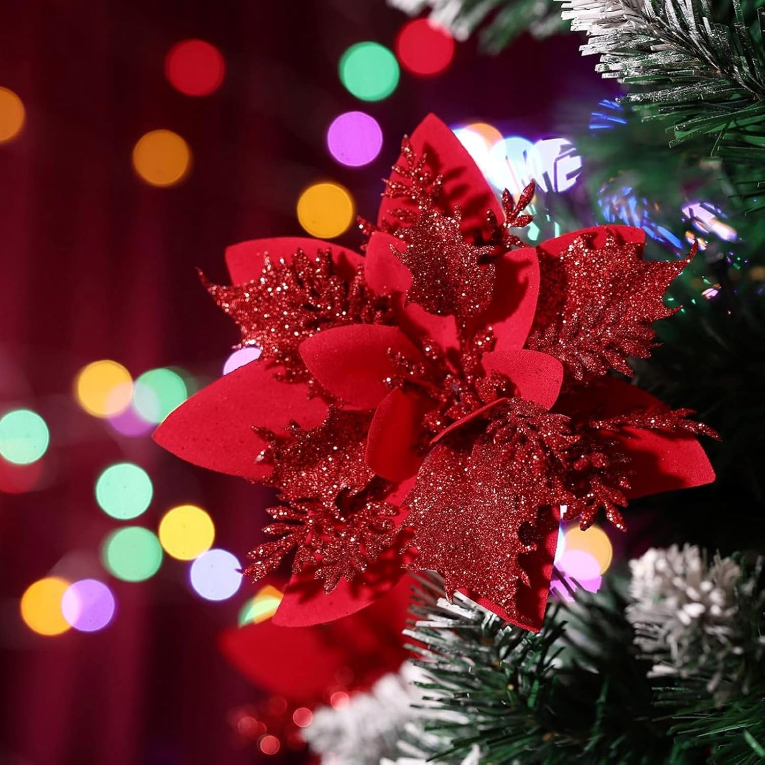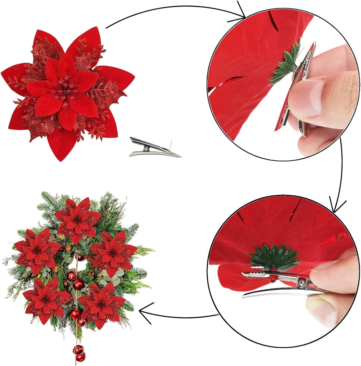 15 PCS Poinsettia Flowers Artificial Poinsettia,Christmas Decorations Poinsettias Artificial Christmas Flowers,Christmas Tree Flower Decorations with Stems DIY Xmas Wreath Year Party Ornament