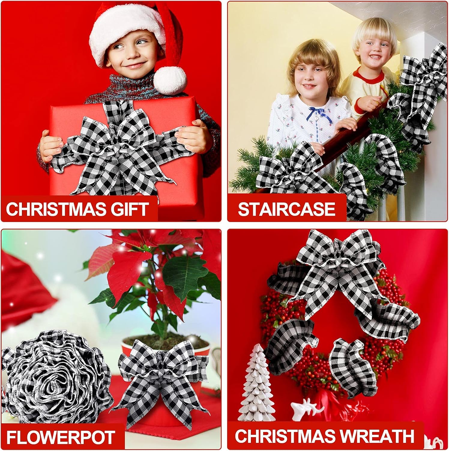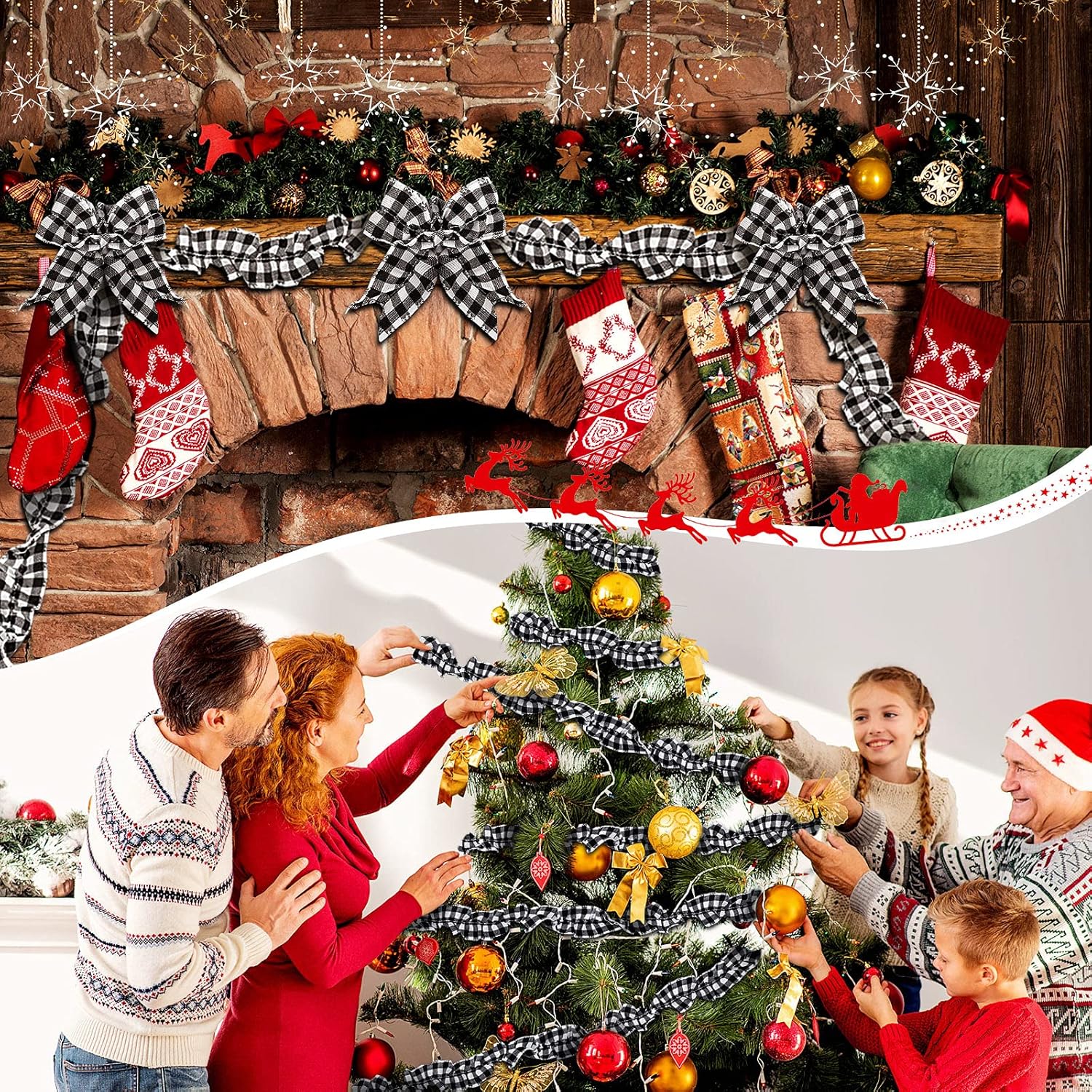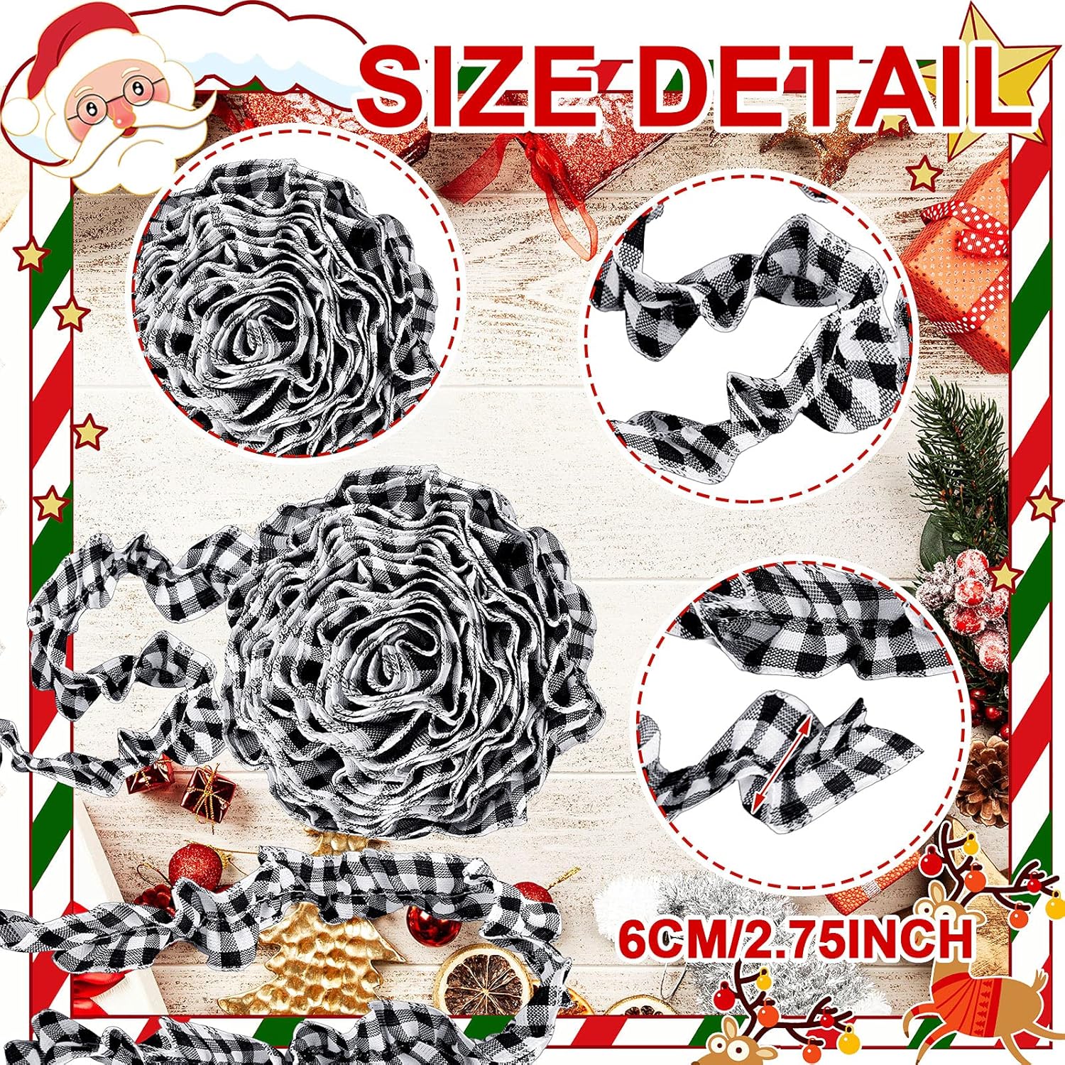 15 Yards Plaid Christmas Tree Garland Christmas Buffalo Plaid Ribbon Ruffled Homespun Fabric Garland Christmas Tree Ribbon Decorations for Christmas Home Wreath Staircase Tree Decor (White and Black)