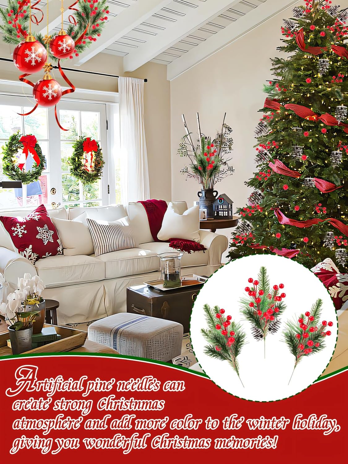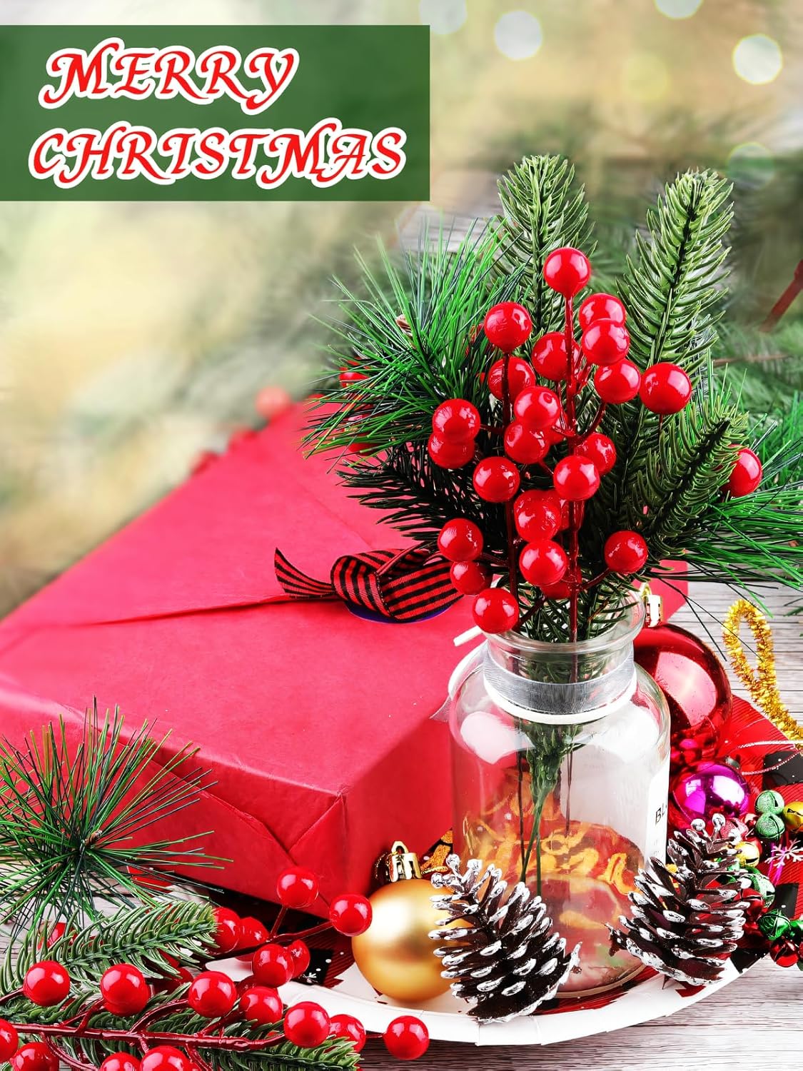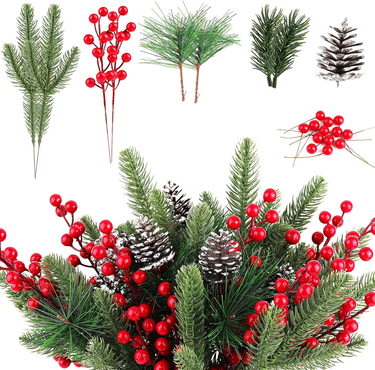 • 🎄 Great Christmas Decoration: The artificial pine cones bring a lush winter vibe. The kit comes with various designs of pine needles, red berries, and pine cones. This Christmas, you can arrange these beautiful pine branches alone or mix them with red berry bouquets to decorate the arrangement. It creates a festive atmosphere and adds more color to this winter holiday, giving you wonderful Christmas memories