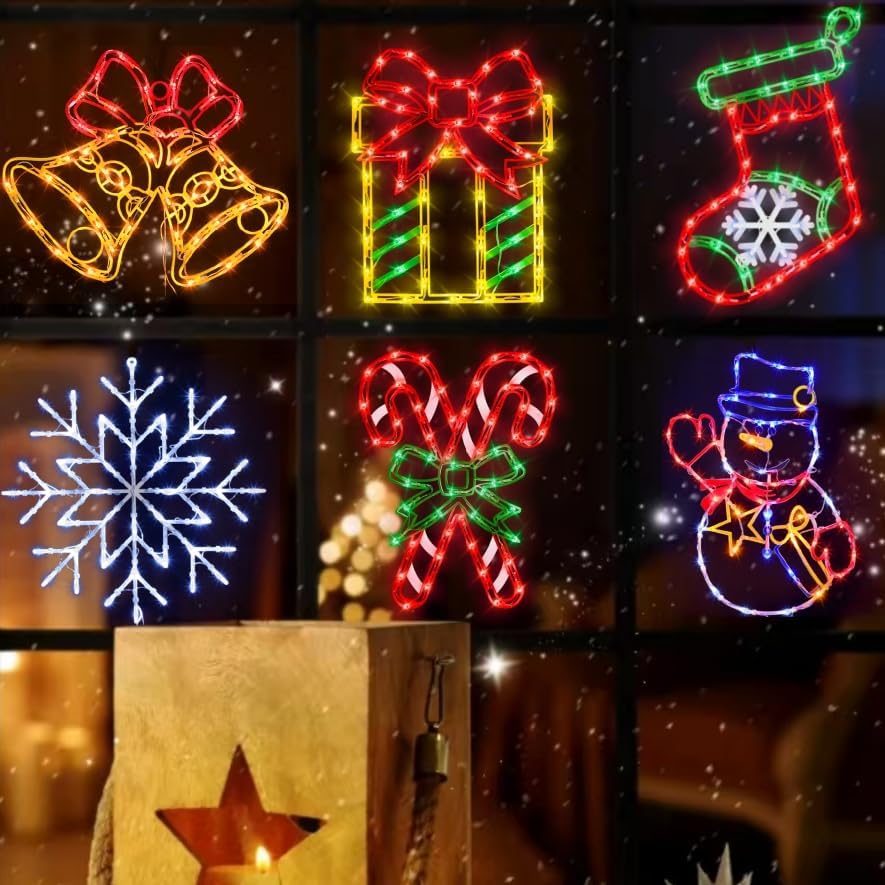 • EASY INSTALLATION- These lights use the characteristic ink-jet effect, which is more beautiful and intoxicating during the day as well as at night. These different themes of Candy Cane & Snowman & Christmas Stocking & Bell & Box & Snowflake Claus window lights are perfect for decorating and illuminating the home to make your house more beautiful and lovely.
