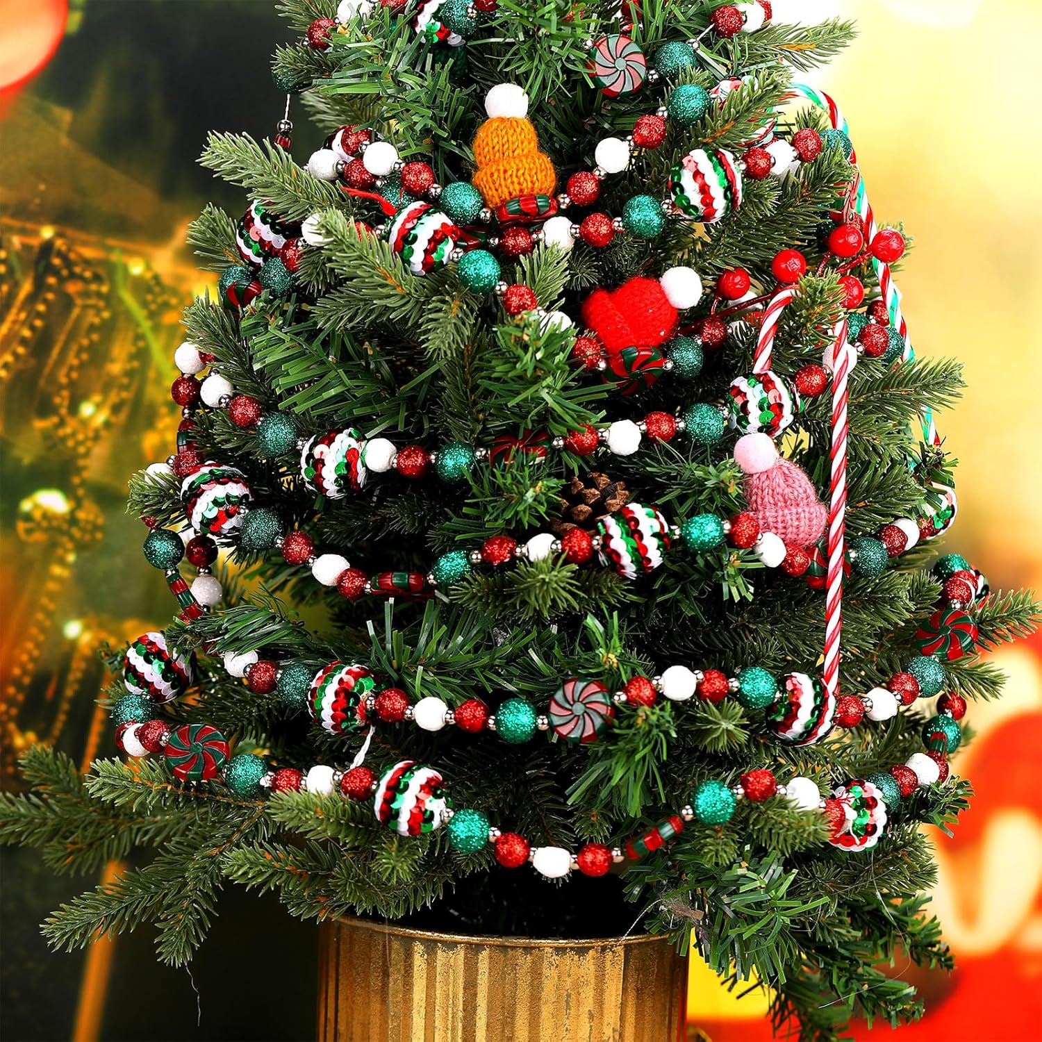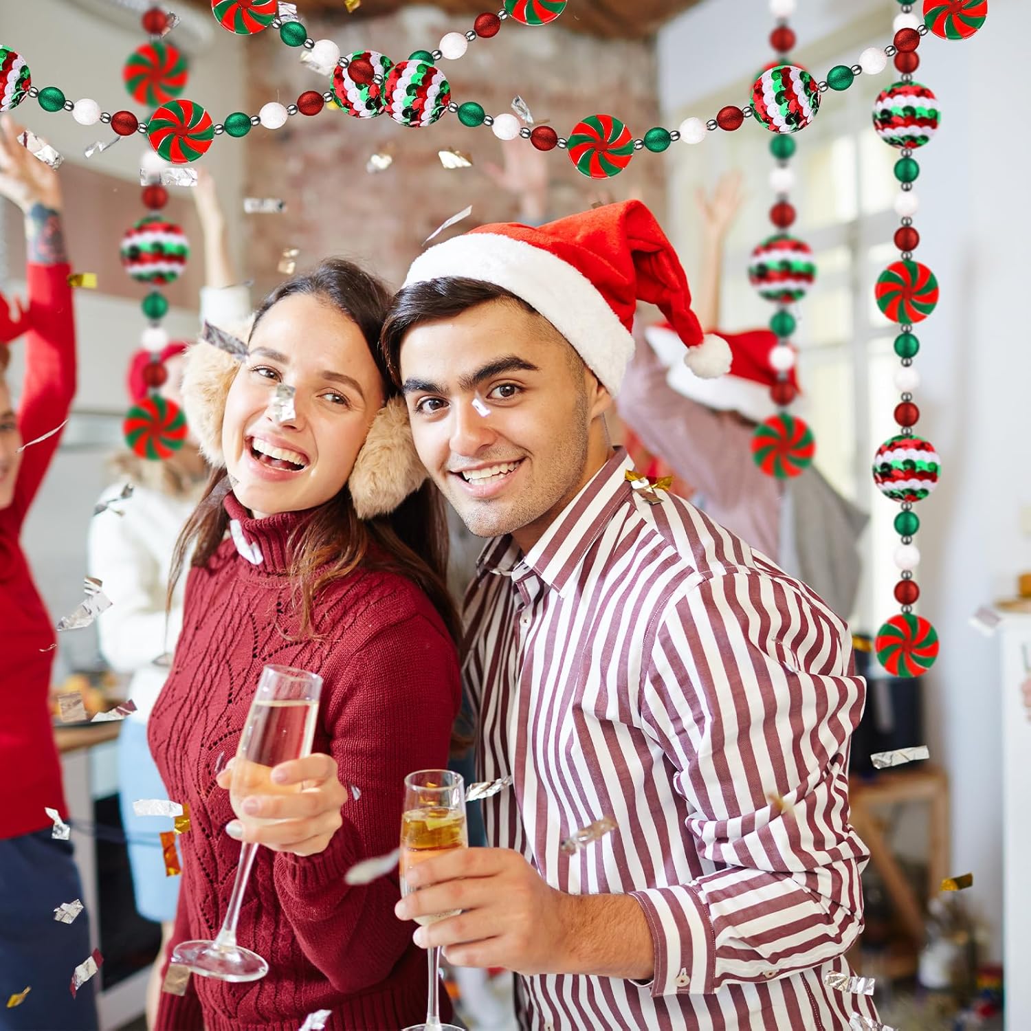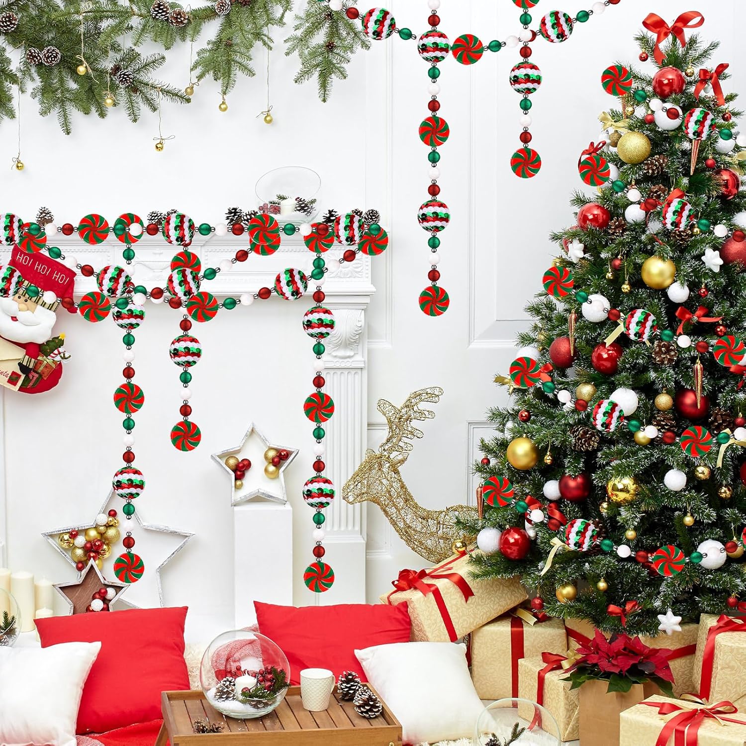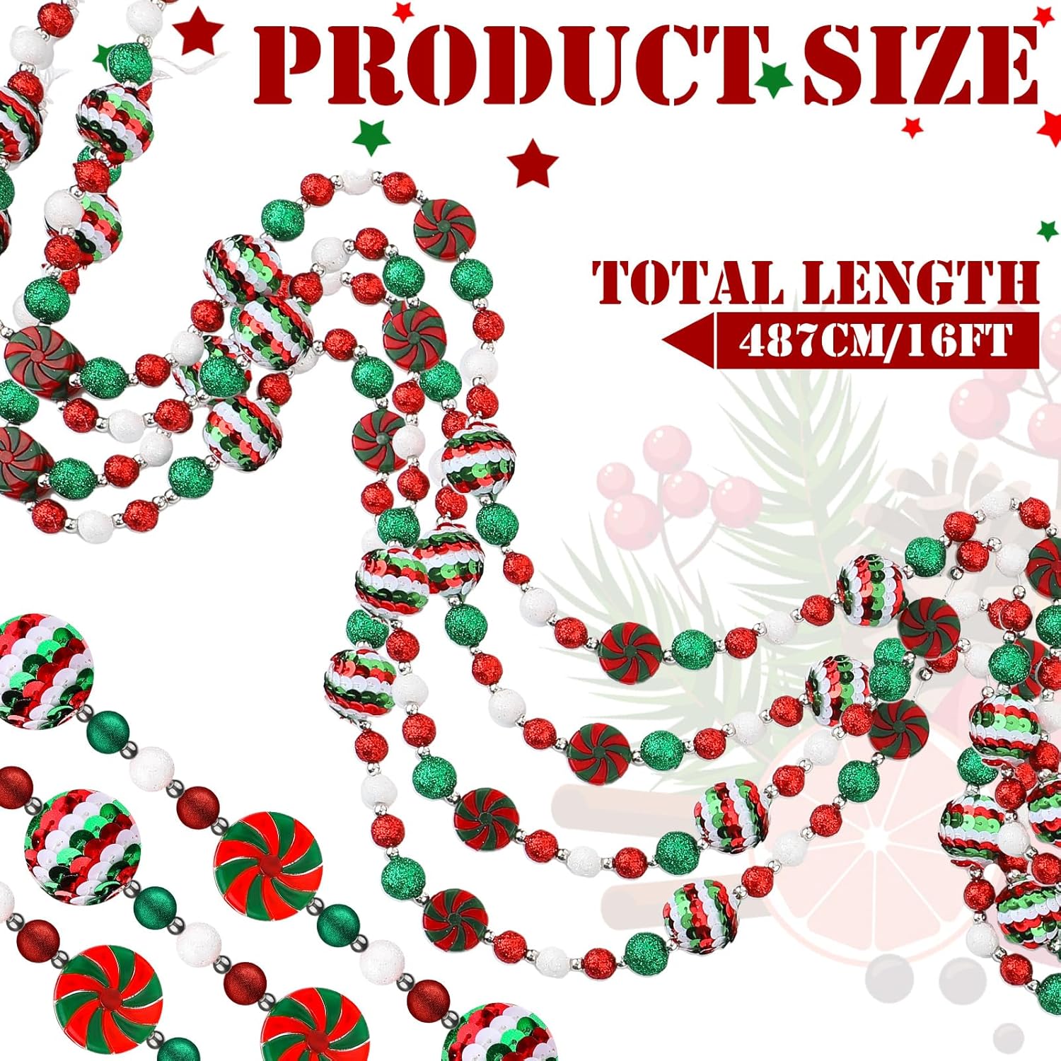 16 Feet Christmas Candy Cane Garland Christmas Tree Peppermint Ornaments Candy Garland Wreaths Christmas Ball Garland Xmas Bead Hanging Ornaments for Holiday Party Fireplace Home Decor (Sequin)
