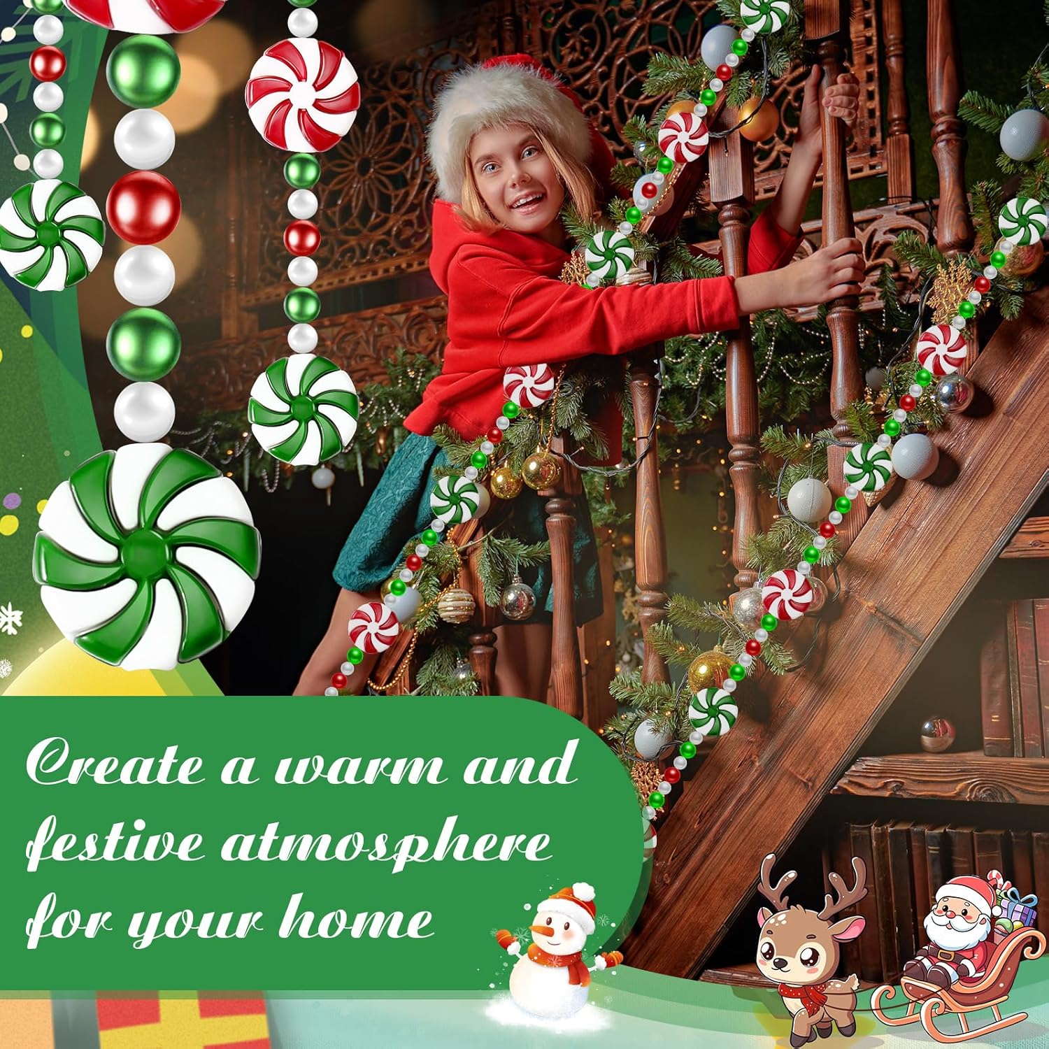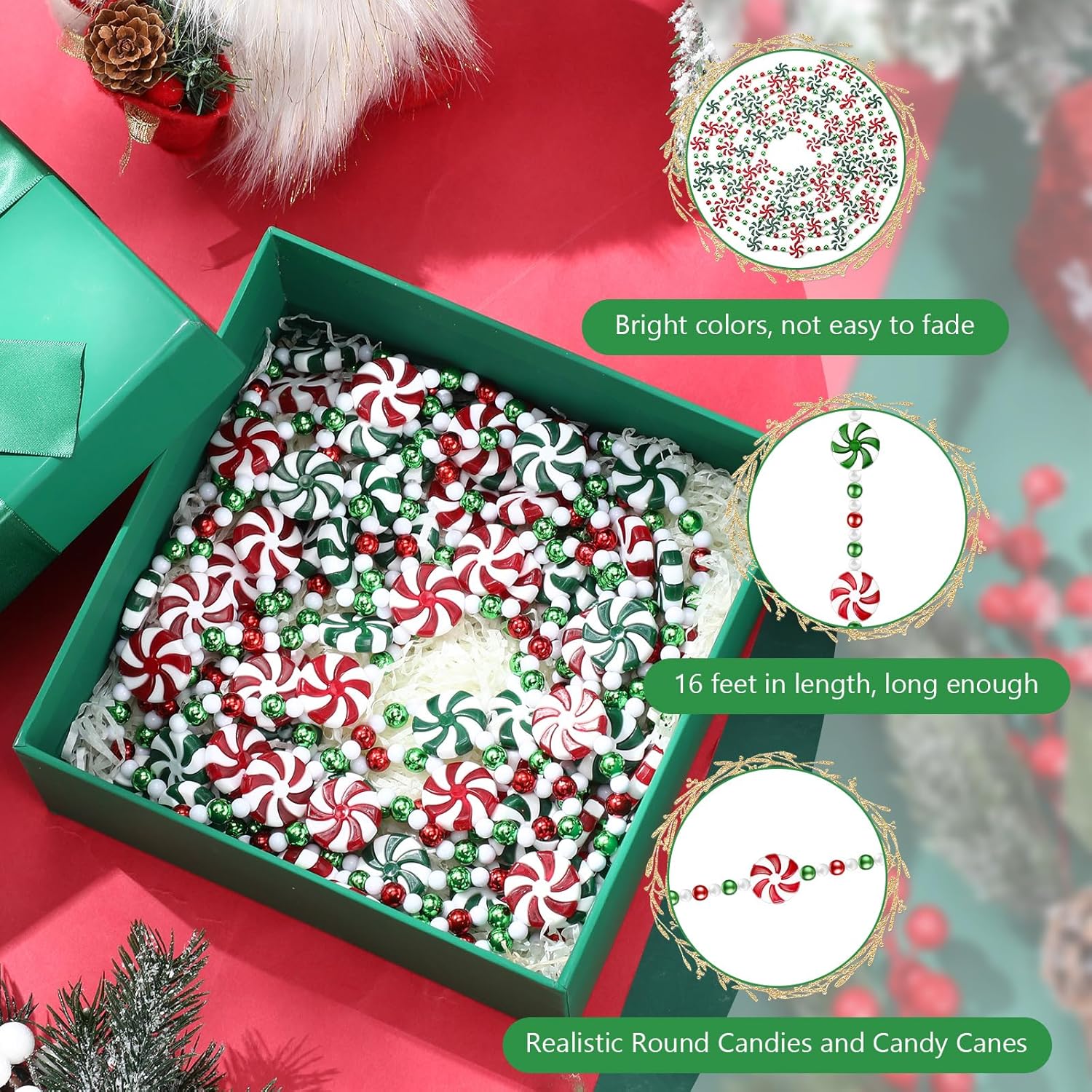 16 feet Christmas Candy Garland Acrylic Peppermint Candy Christmas Tree Garland for Christmas Party Decorations