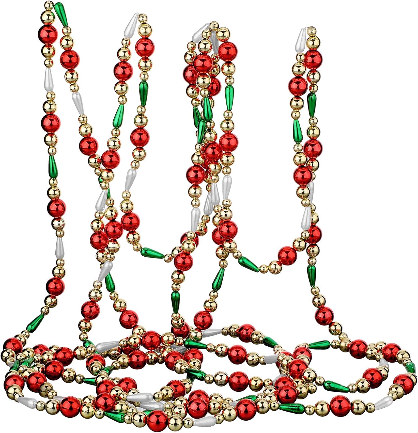 16 ft Christmas Garland Christmas Bead Garland Plastic Bead Christmas Tree Decor Beaded Garland for Xmas Party Supplies Holiday Favors Farmhouse Wall Staircase Fireplace Hanging Ornaments