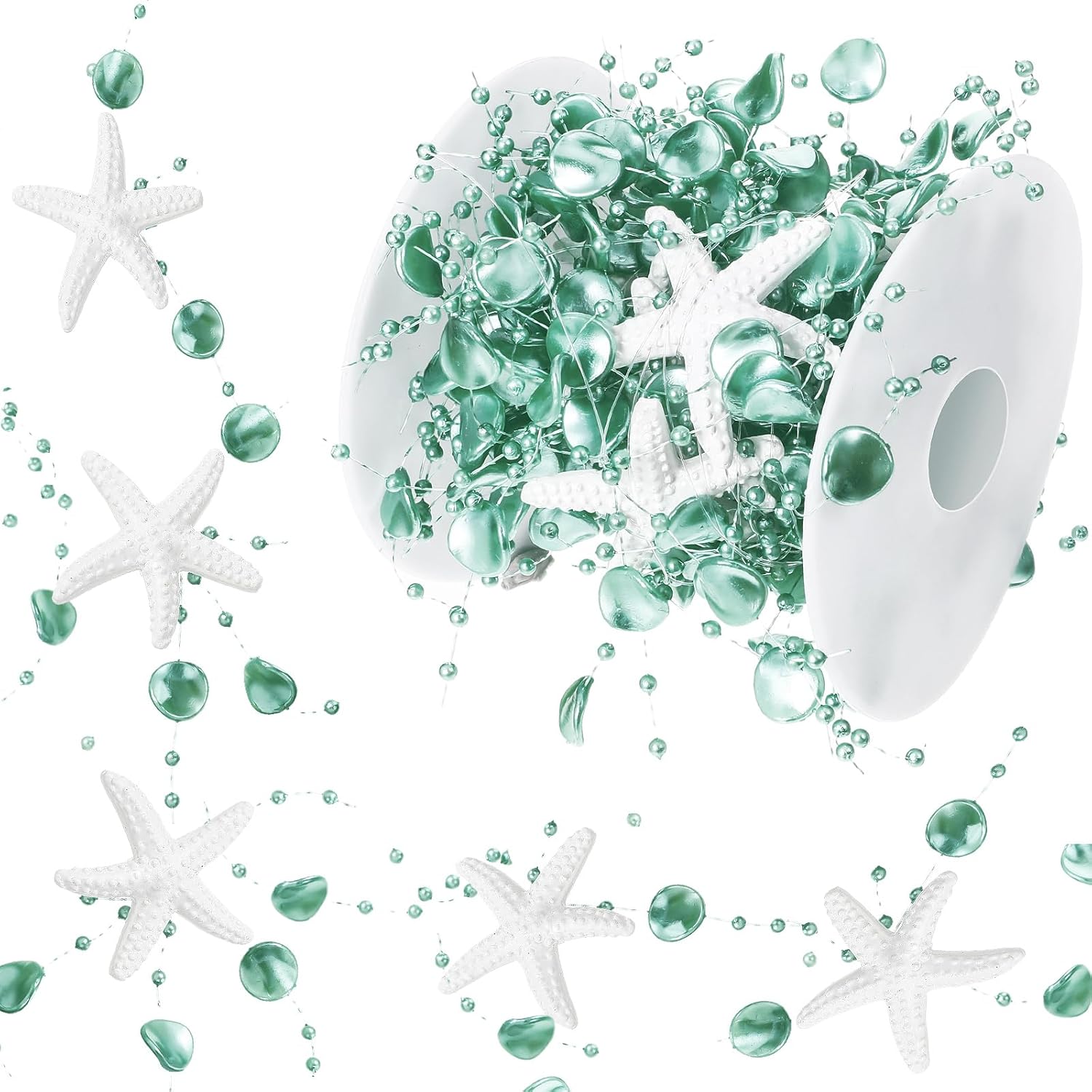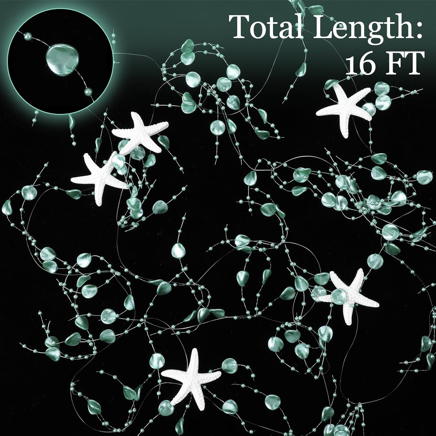 16 ft Christmas Ocean Themed Garland Ocean Beaded Starfish Shell Garland Christmas Coastal Beaded Garland Decor Beach Garland for Christmas Tree Fireplace Wedding Home Decor Supply (Green)