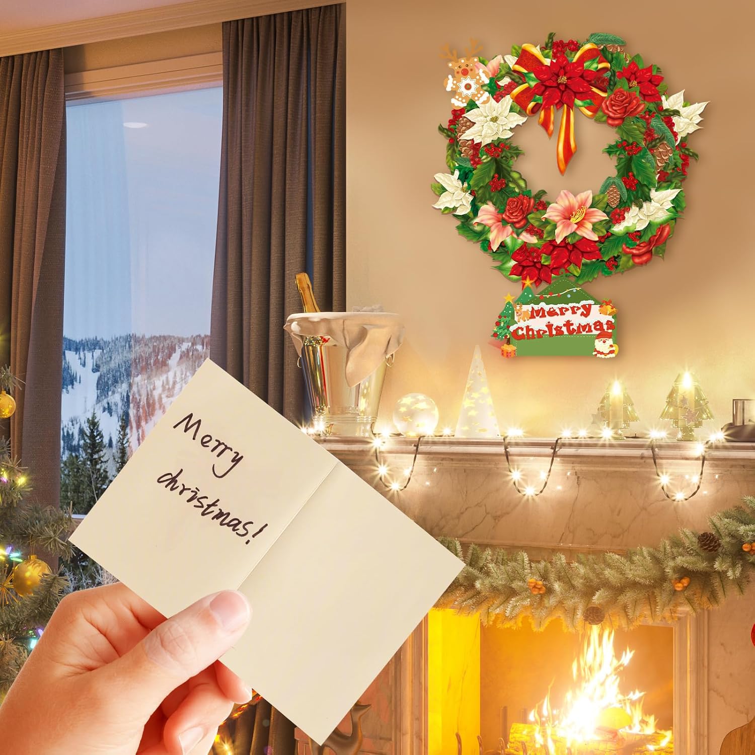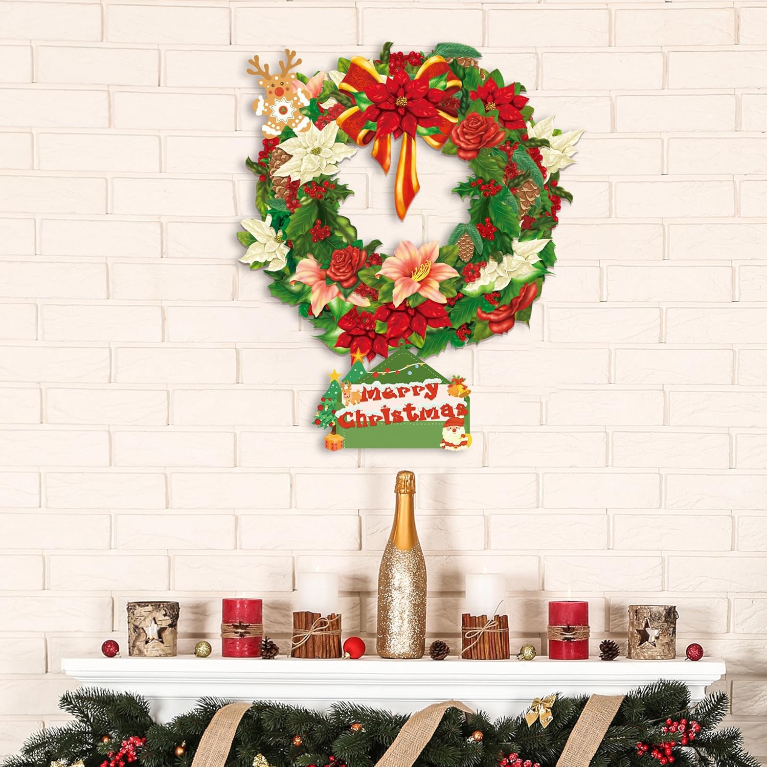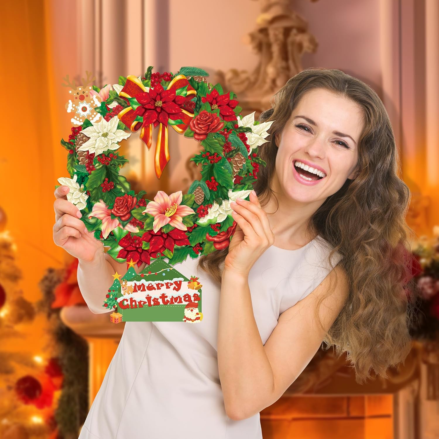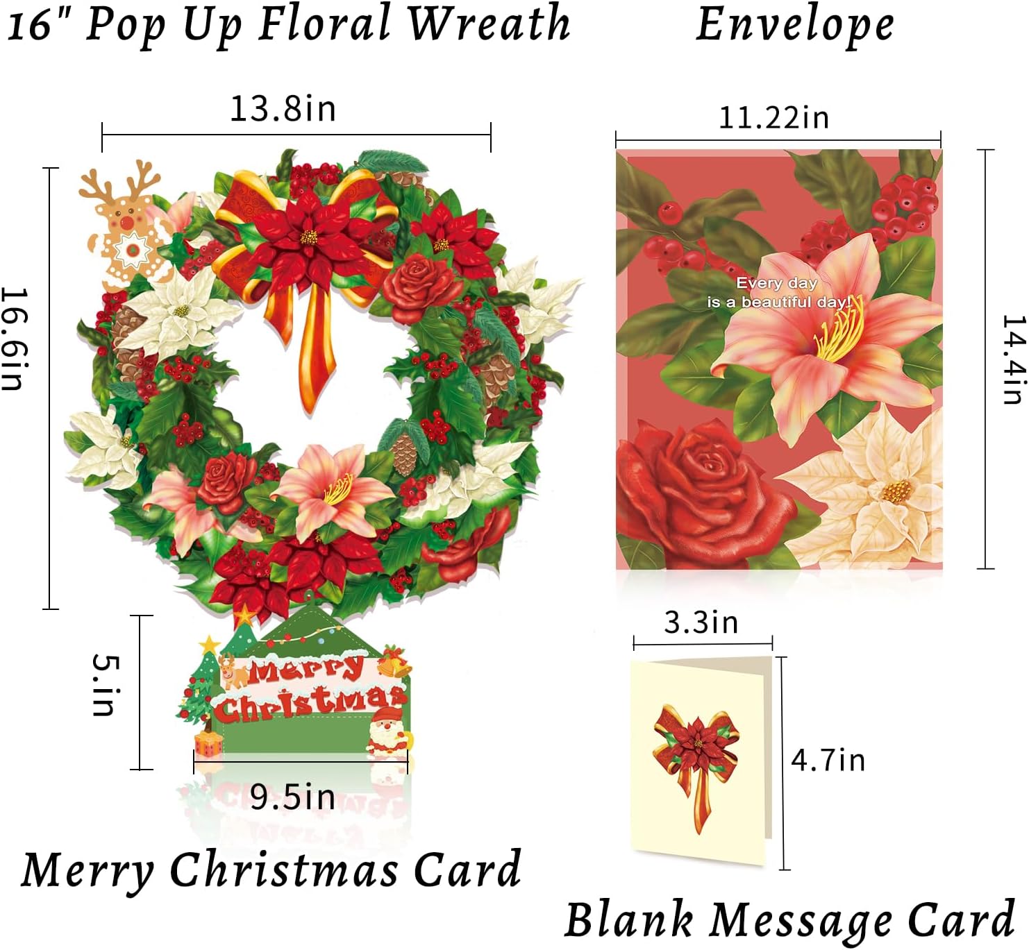 16 inch Airpark Paper Pop Up Christmas Wreath, Cards, Greeting Cards, Flower Cards, 3D Winter Joy Floral Wreath, Life Sized Reusable Christmas Decoration for Xmas Party & Home Decor