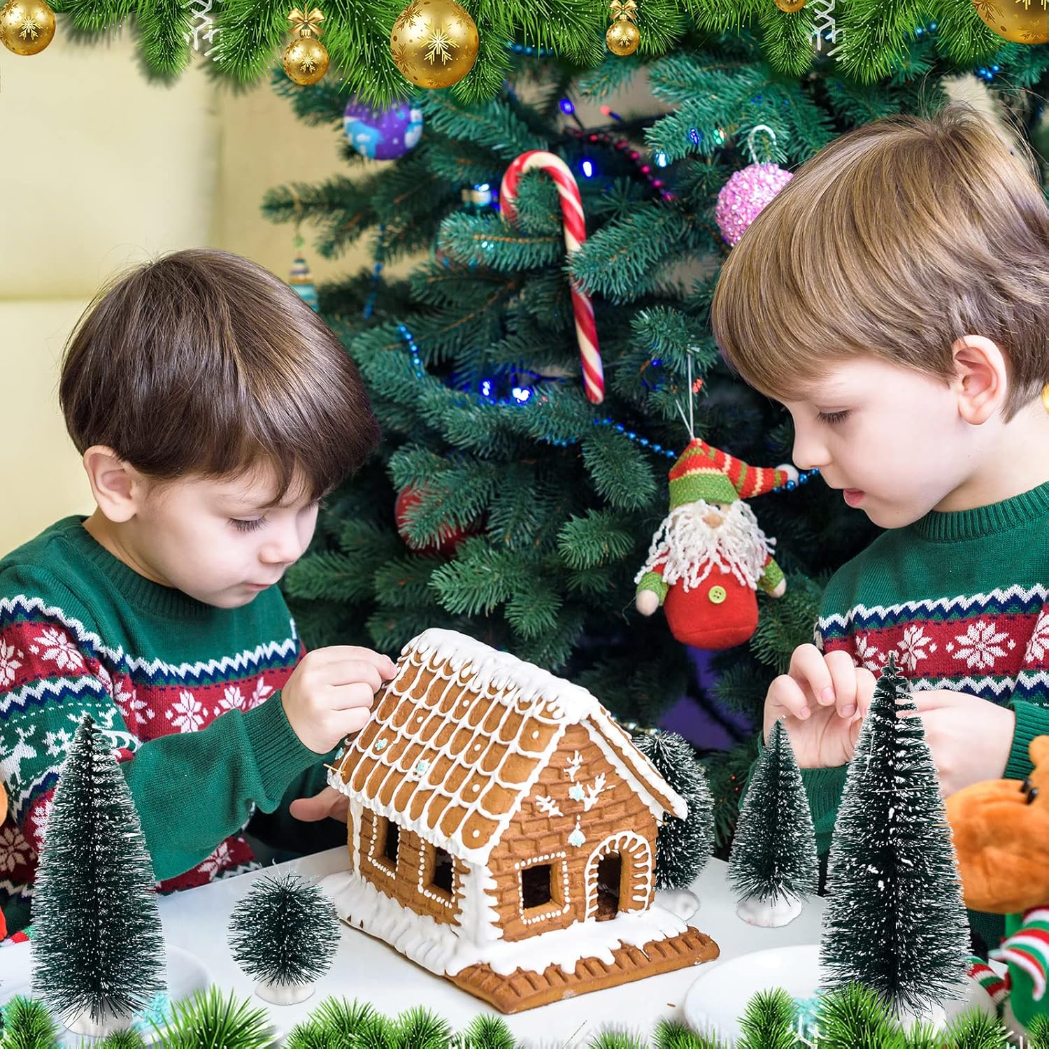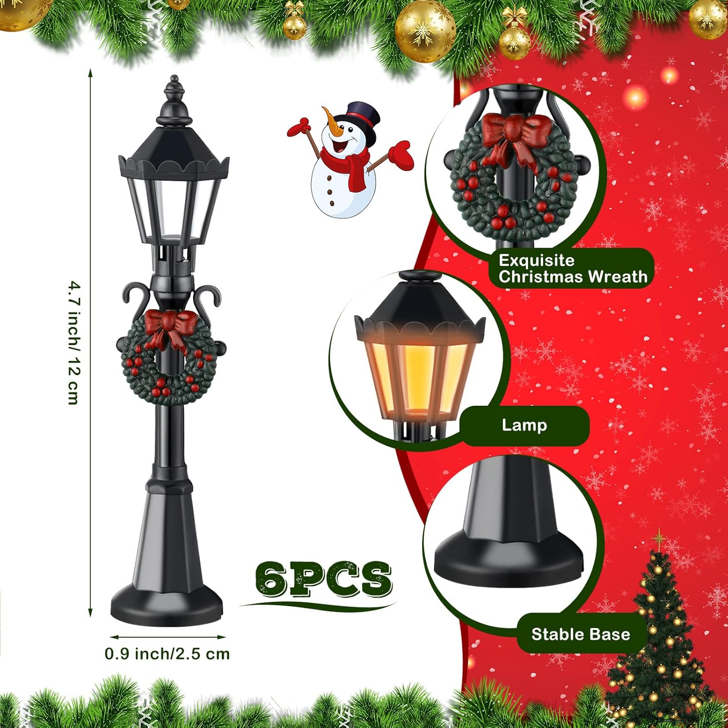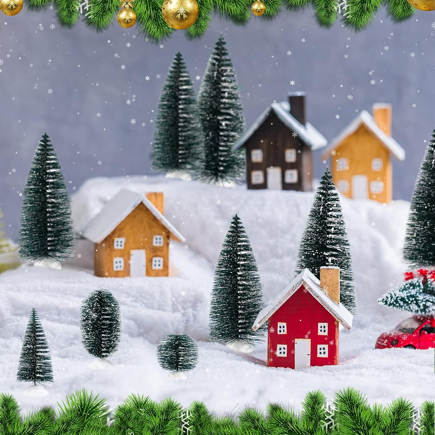 16 Pieces Christmas Village Accessories Set Frosted Christmas Pine Trees and Mini Street Lamp Post Bottle Brush Trees Miniature Village Trees for DIY Crafts Xmas Winter Holiday Decorations