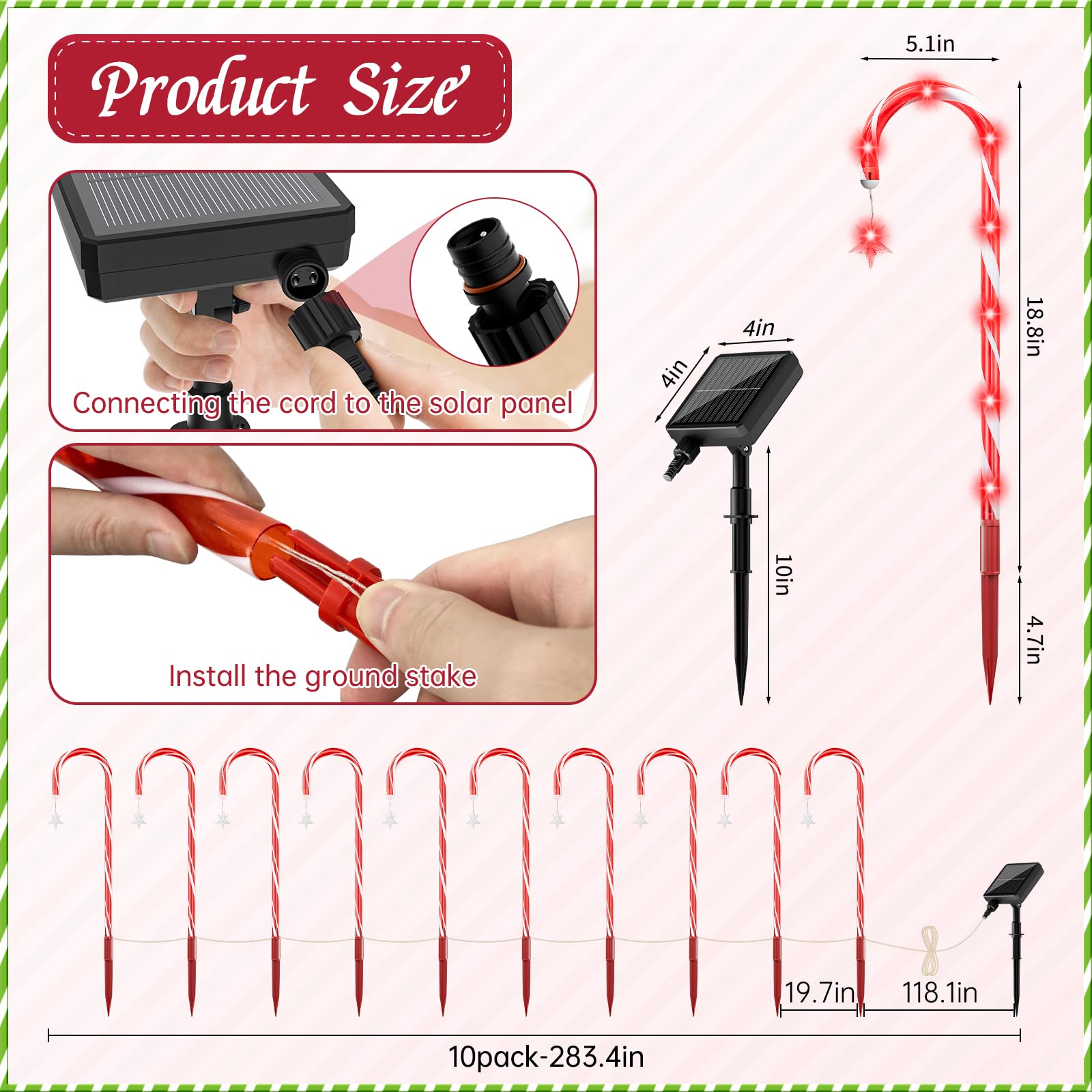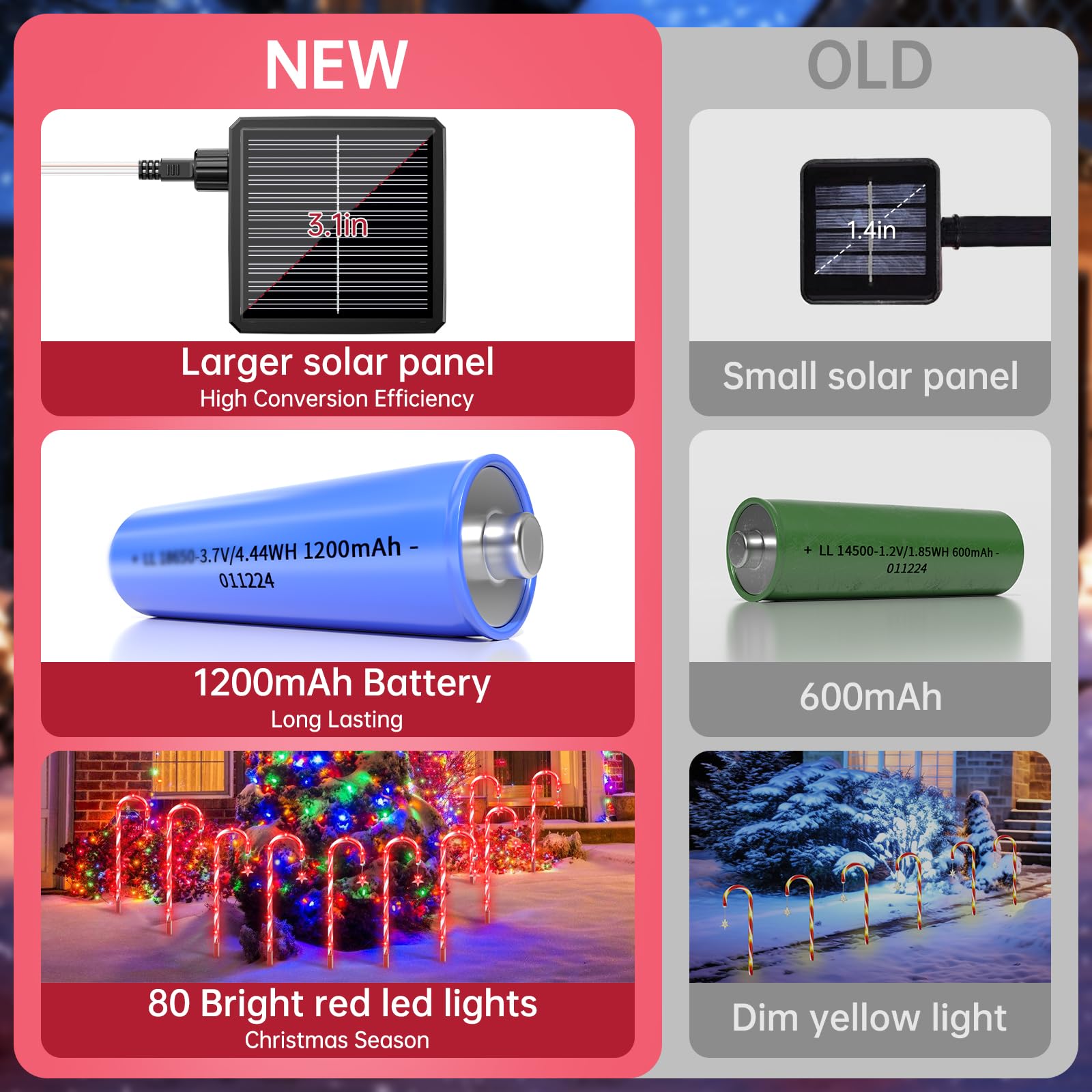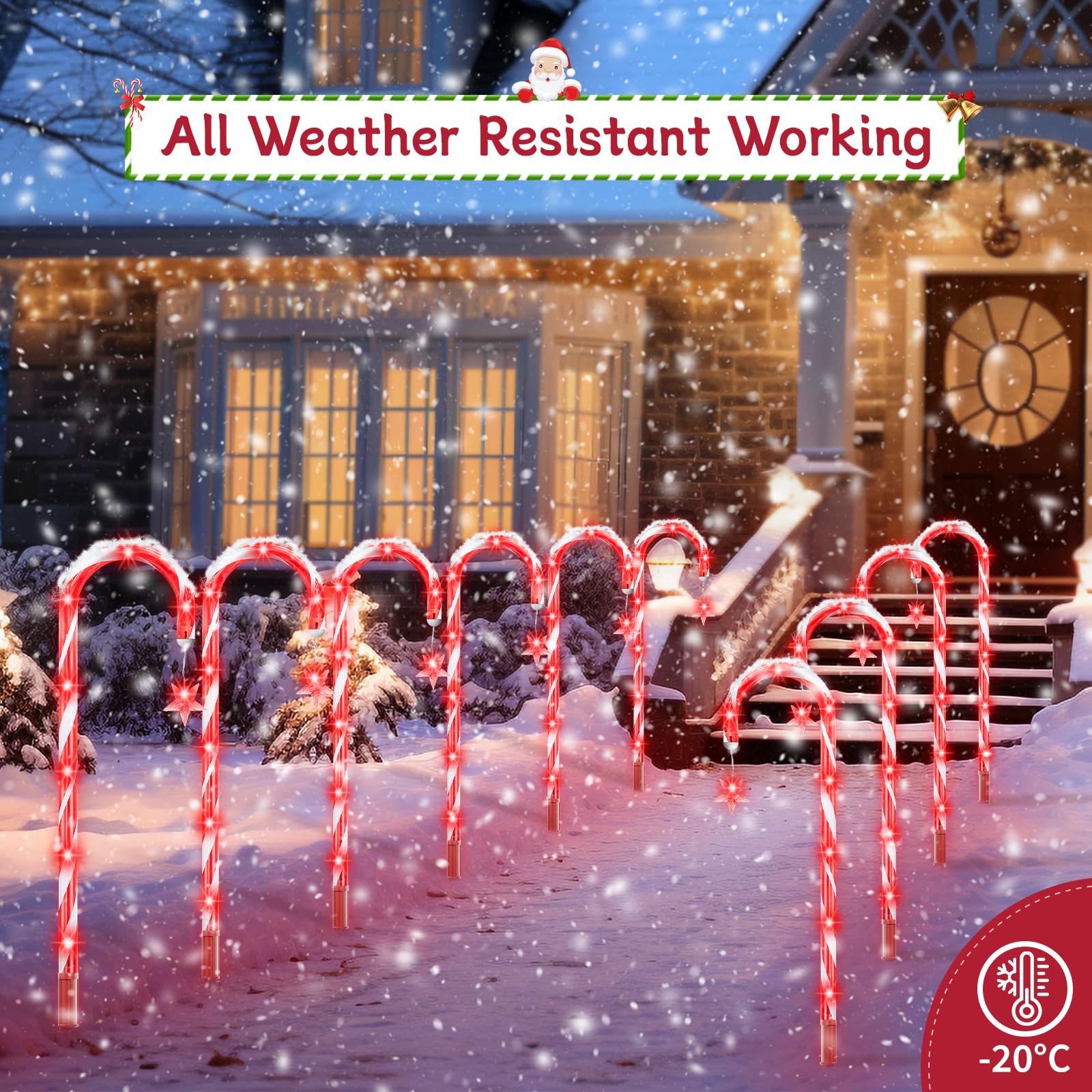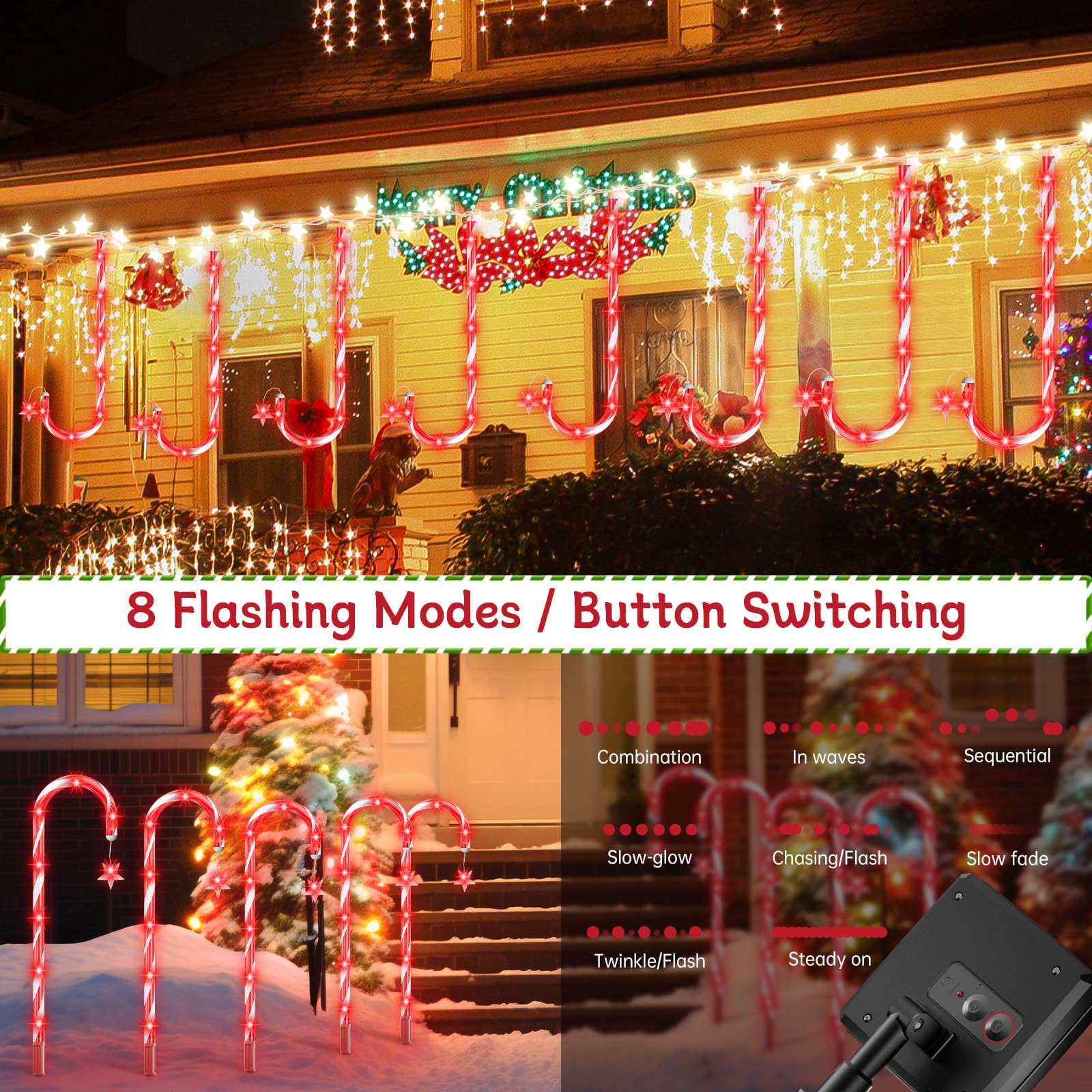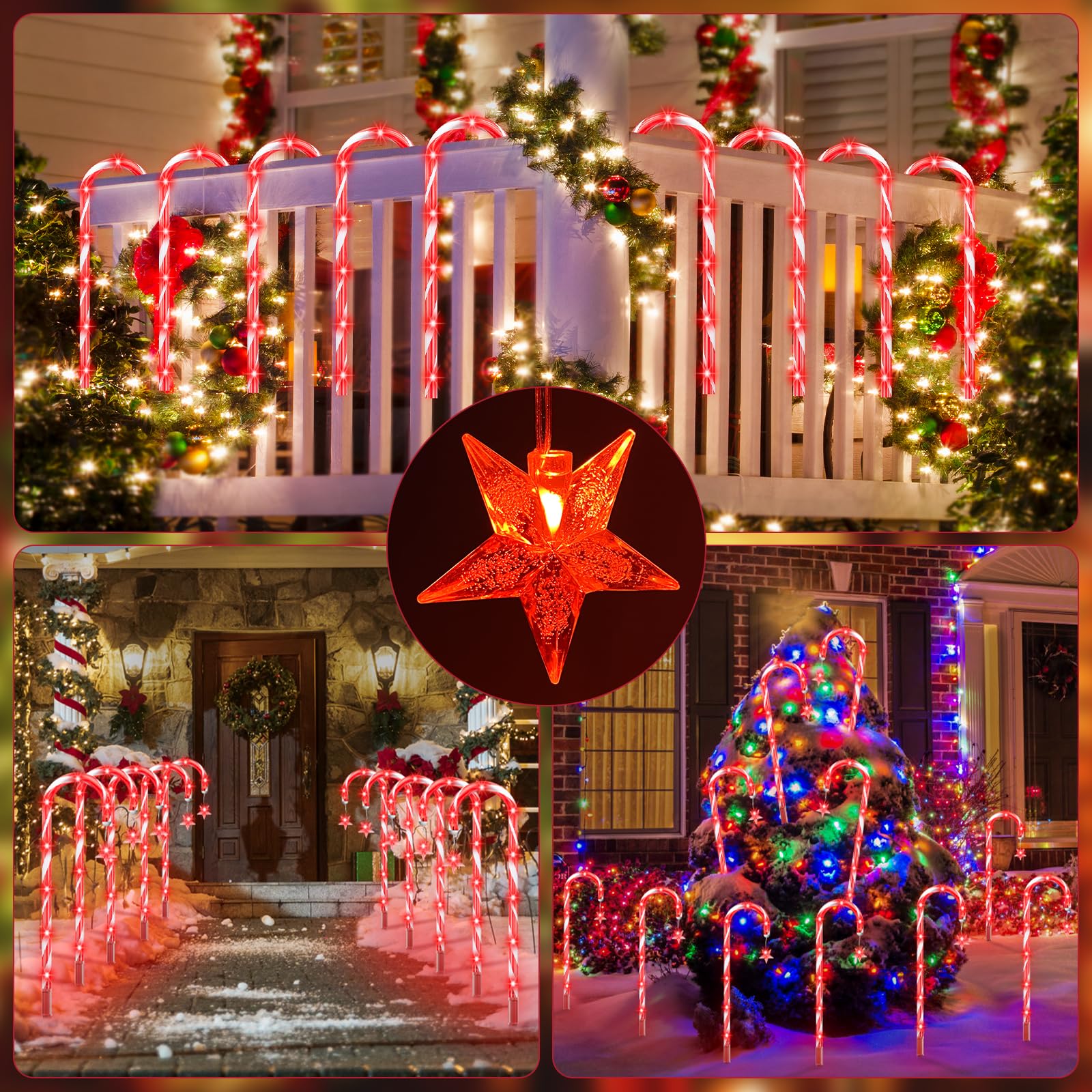160 Red LED d Solar Candy Cane Lights,20 Pack Christmas Decorations Outdoor, Solar Powered Pathway Lights Outside,8 Modes Landscape Lights Walkway Markers with Stakes for Garden Yard Patio Xmas
