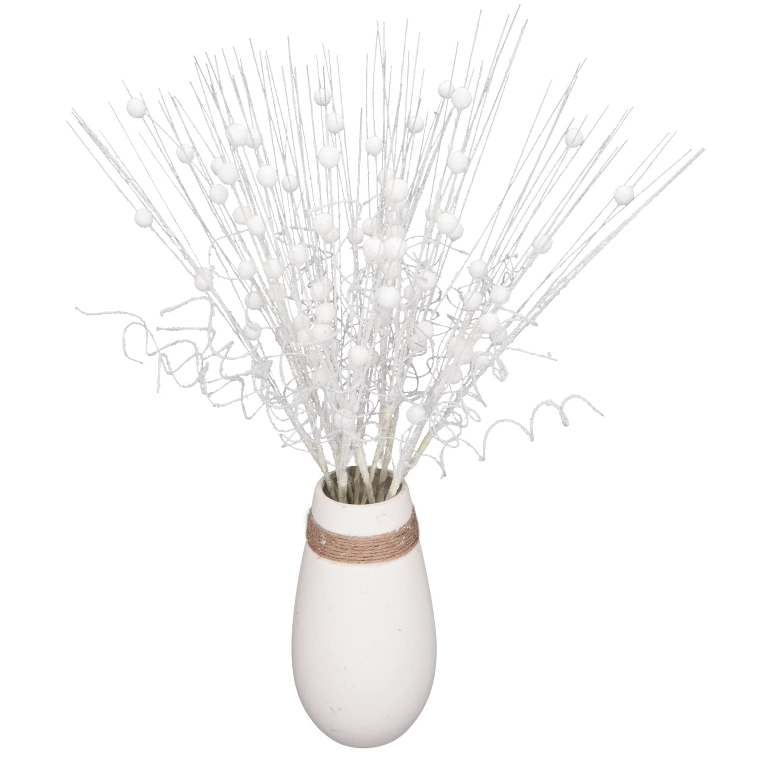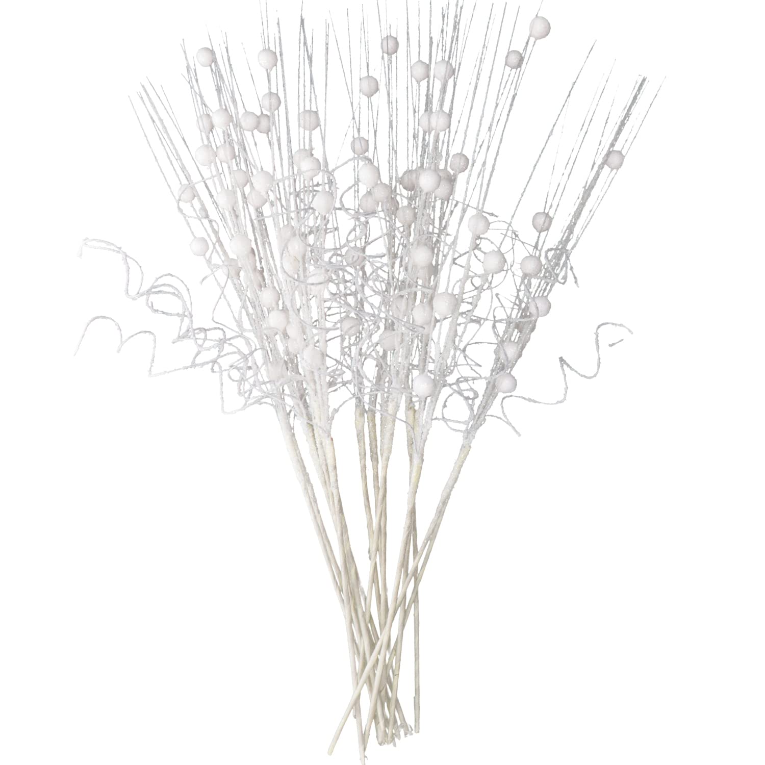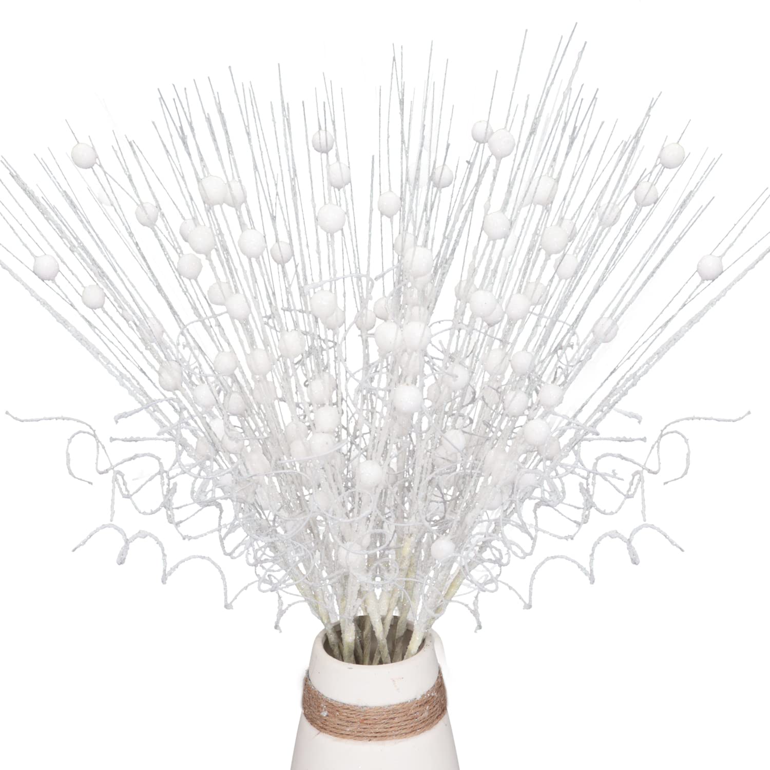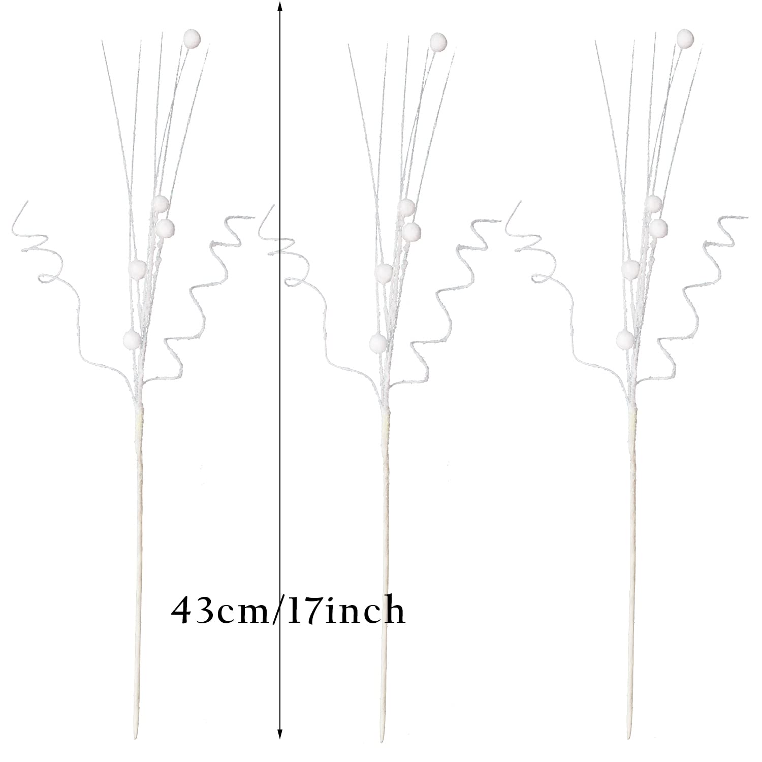 16Pcs Glitter Christmas Tree Picks Curly Sprays Sparkle Artificial Berry Stems Twigs 17" Ting Branches Vase Fillers Decorative Sticks for Xmas Tree Decorations Winter Wreath DIY Crafts (16, White)