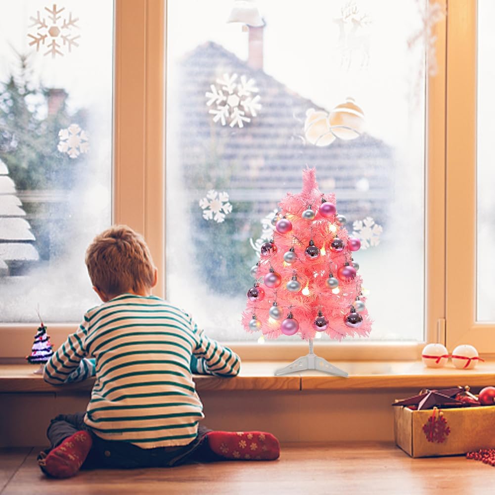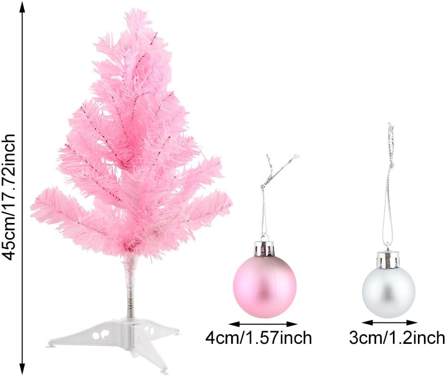 17inch Mini Small Pink Christmas Tree with 28pcs Christmas Ball Accessories, Artifical Desktop Simulation Tabletop Xmas Tree and Ornaments for Christmas Decoration Supplies(Pink)