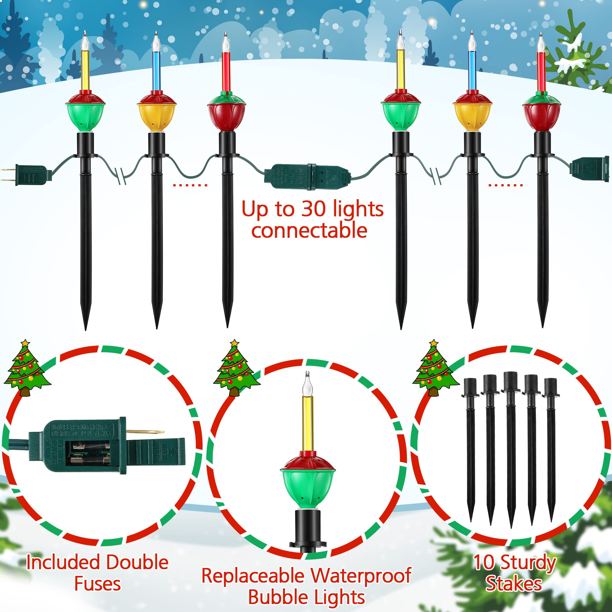 18 Feet Christmas Pathway Lights, 10 Bubble Lights Bulbs Plug in Walkway Lights, Connectable Waterproof Path Lights for Outdoor Yard Holiday Sidewalk Driveway Xmas Decoration