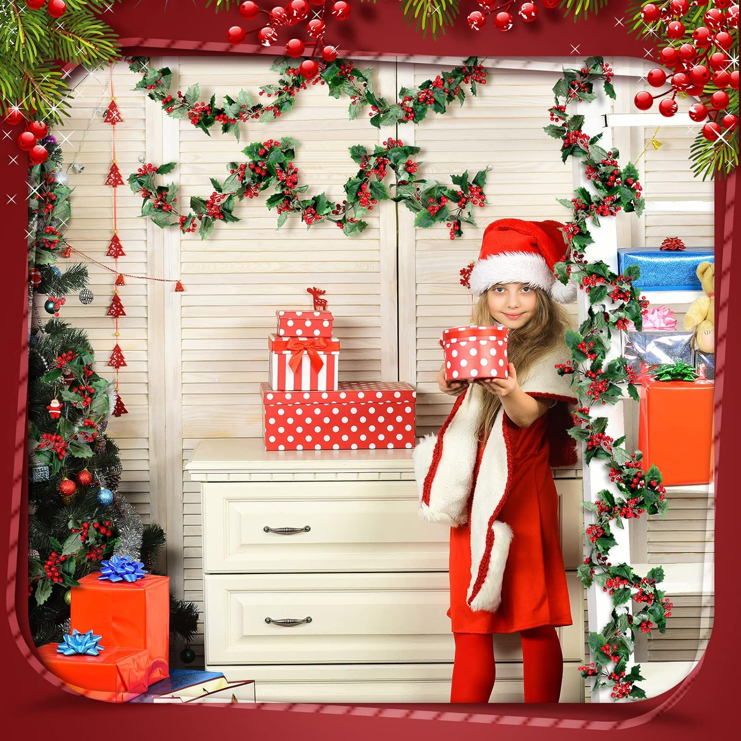 18 ft Red Berry Christmas Garland Artificial Berry Garland Xmas Decorations Indoor Outdoor Farmhouse Pine Leaves Winter Garland for Home Christmas Holiday Year Decor (Unlighted)
