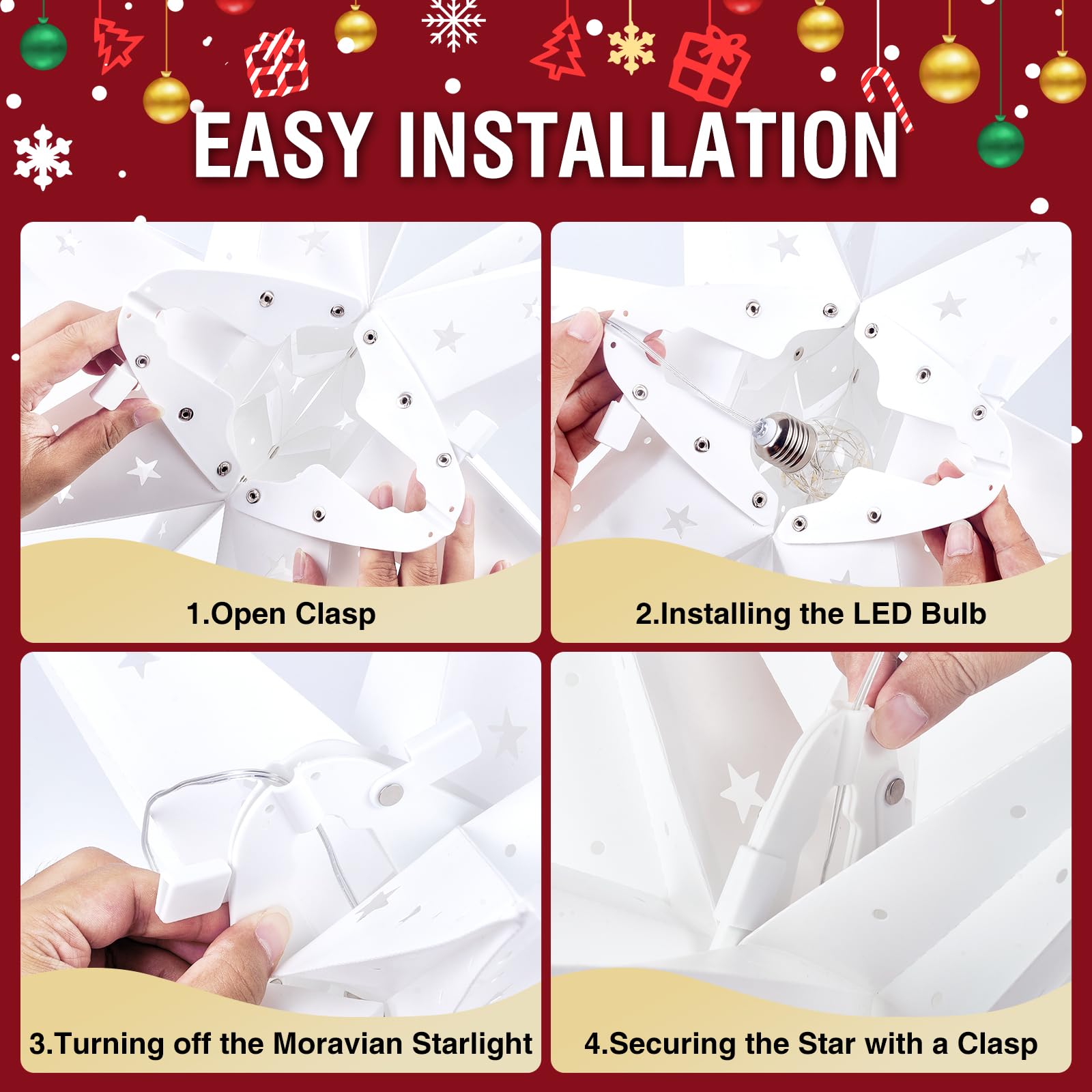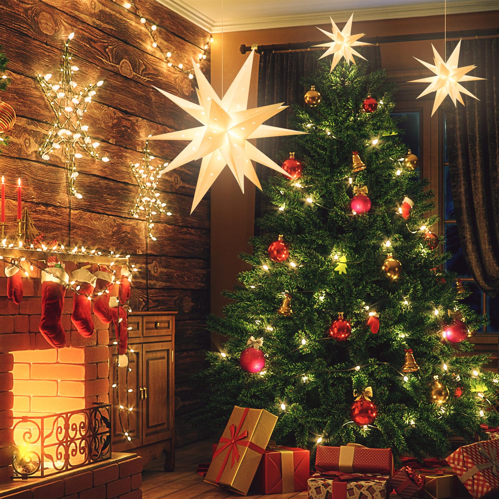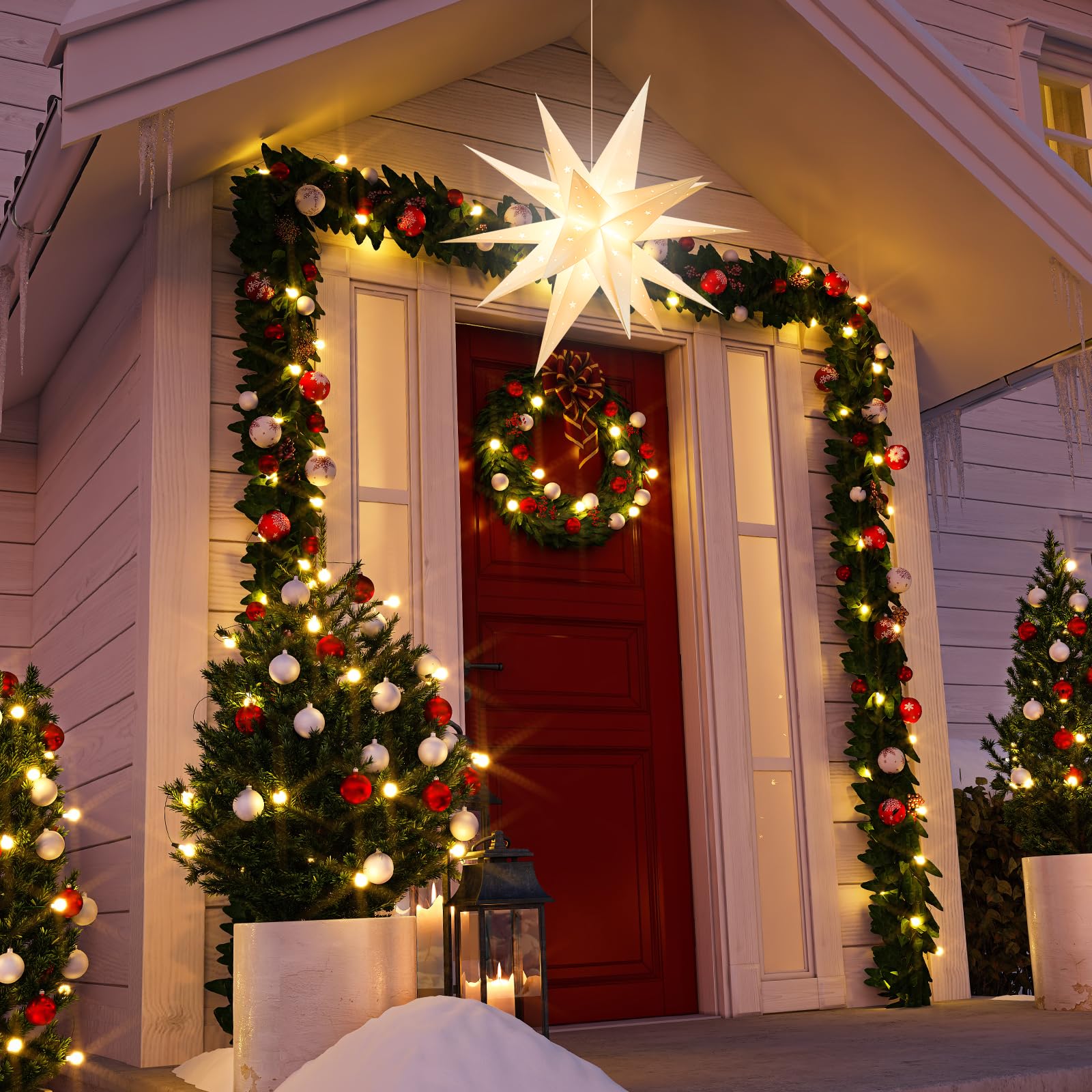18" Moravian Star Outdoor Light - 18 Point White Christmas Star Indoor, 3D White PVC, Waterproof IP44, Battery Operated with Timer for Ballroom Porch Wedding Christmas Holiday Decoration