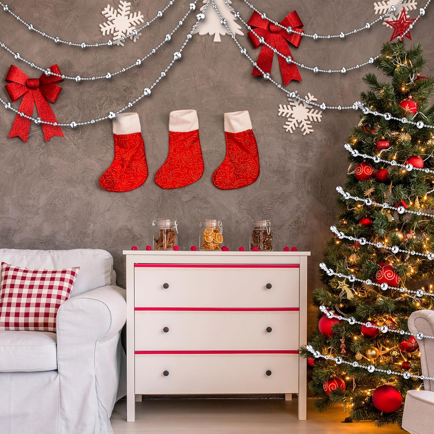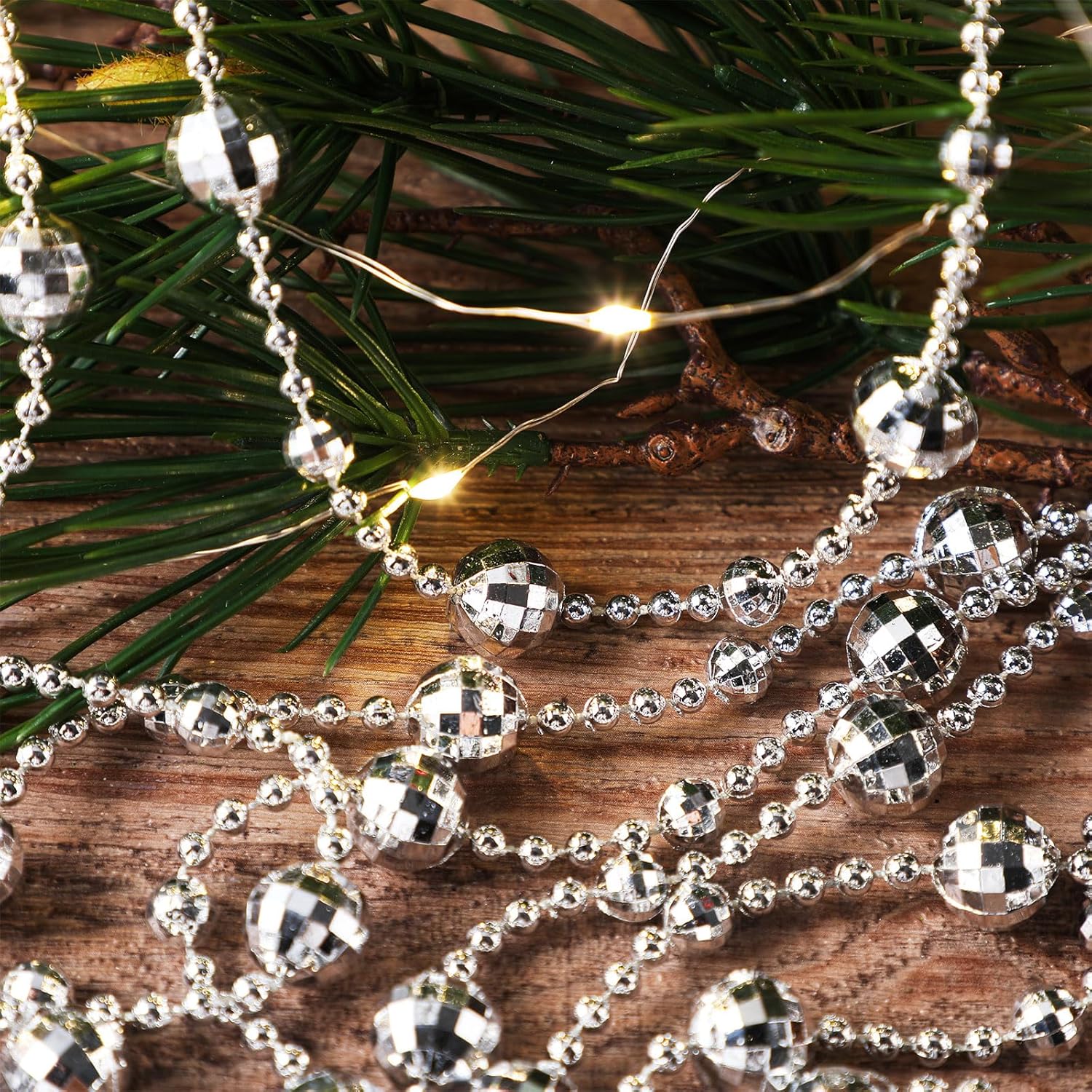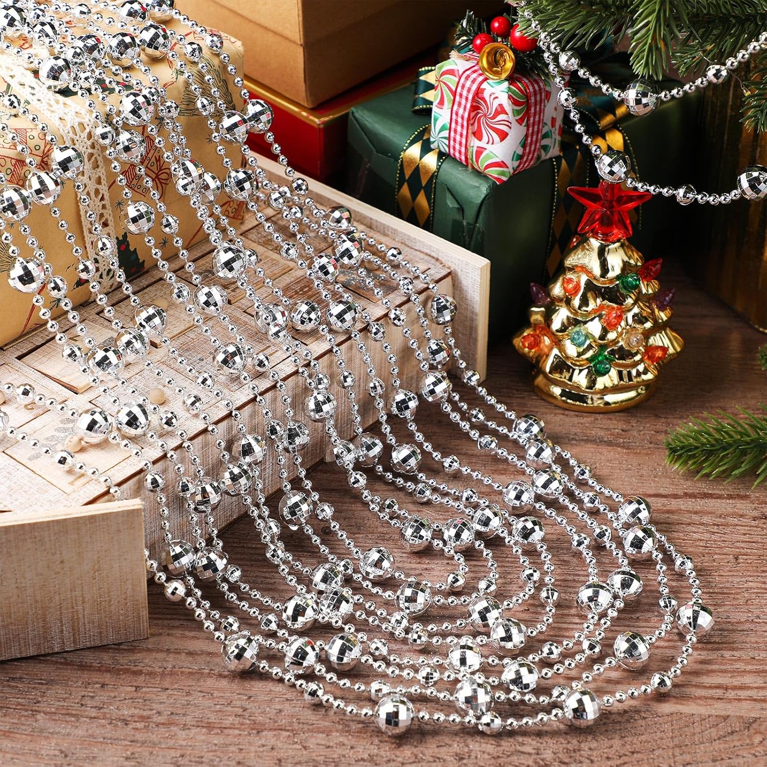 180 ft Christmas Beaded Garland Shiny Beads Strand for Christmas Tree Beaded Christmas Tree Garland Silver String Beads for Xmas Decorations DIY Ornaments Fireplace Wedding Party