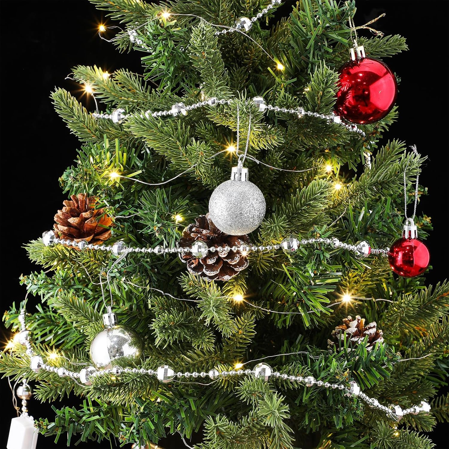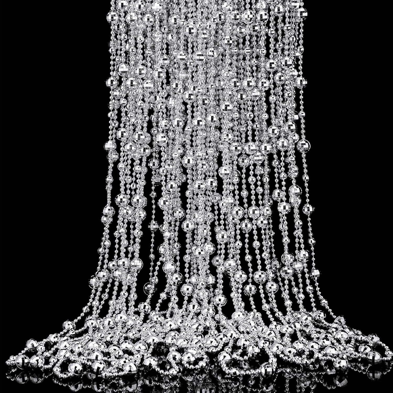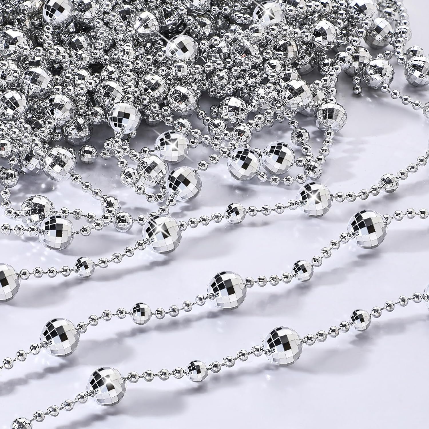 180 ft Christmas Beaded Garland Shiny Beads Strand for Christmas Tree Beaded Christmas Tree Garland Silver String Beads for Xmas Decorations DIY Ornaments Fireplace Wedding Party